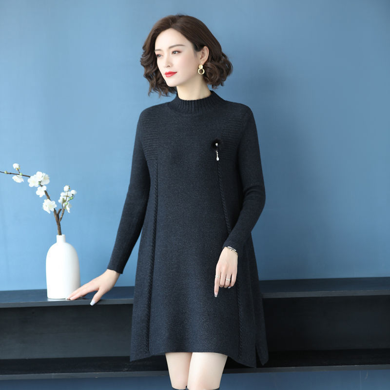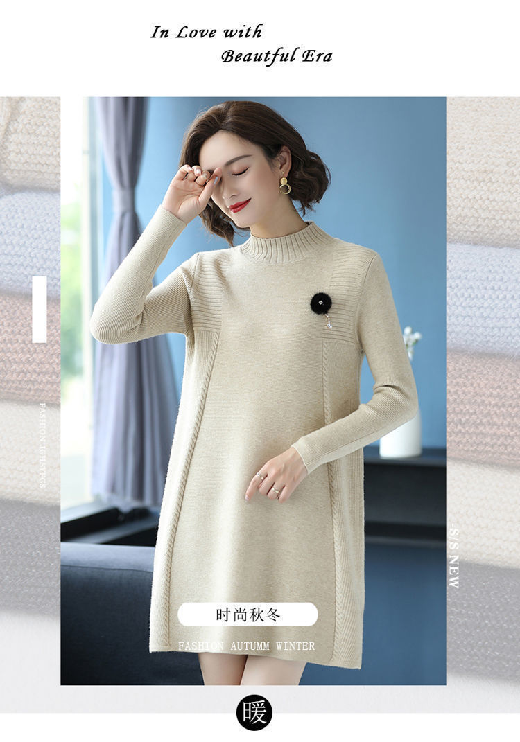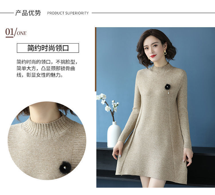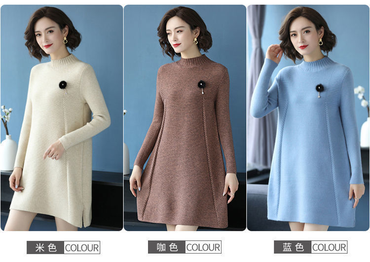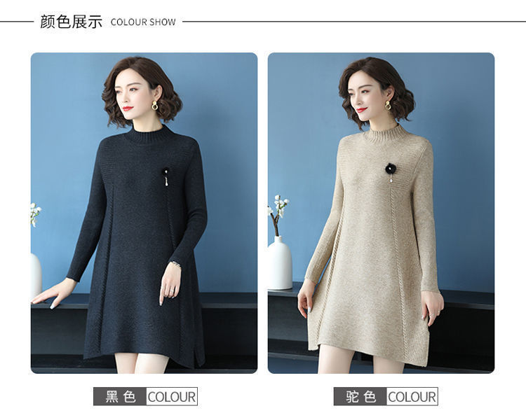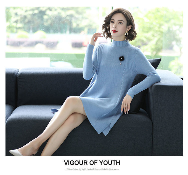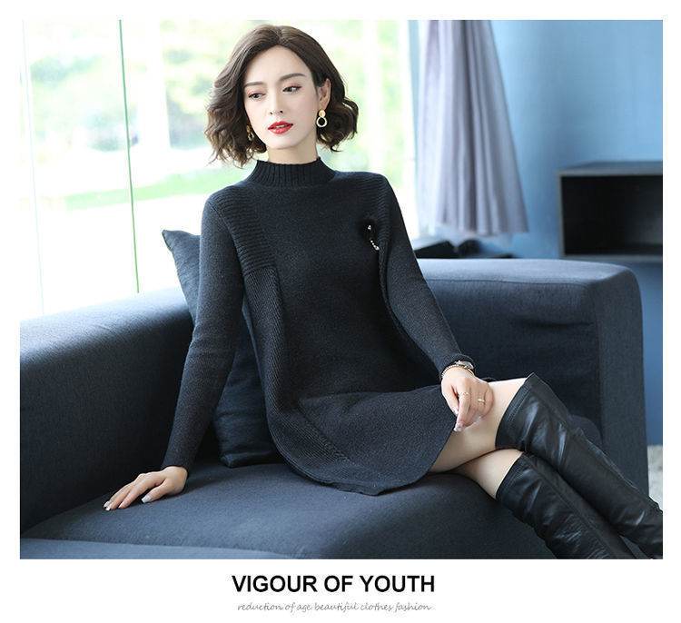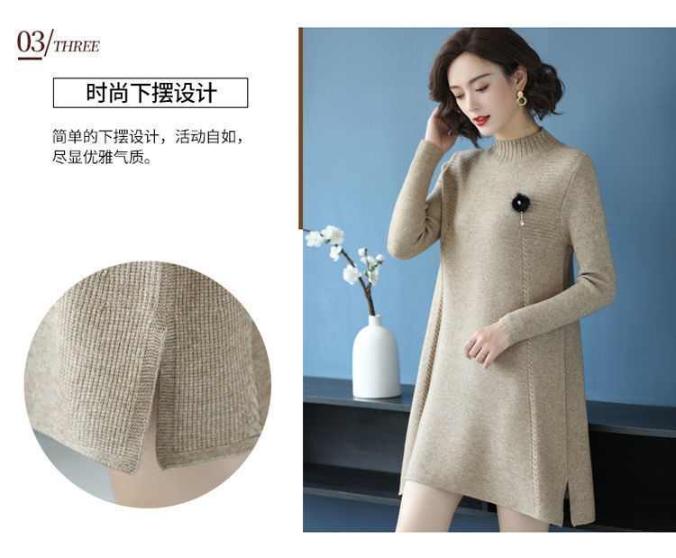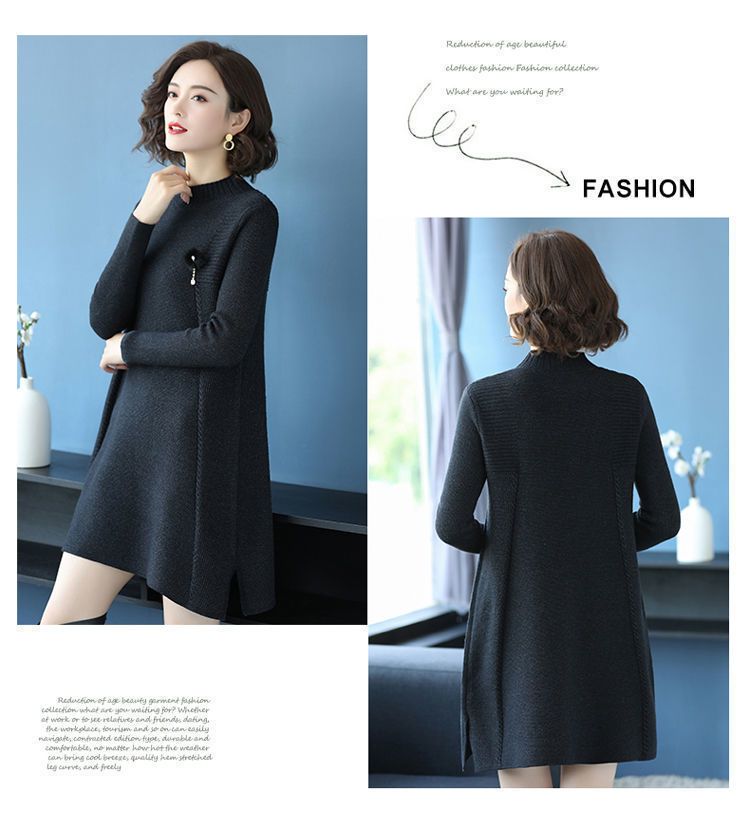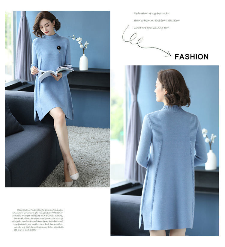 가을과 겨울 여성의 새로운 스웨터 여성 풀오버 미디 플러스 사이즈 스웨터 니트 스웨터 스커트베이스 셔츠스토어 가기