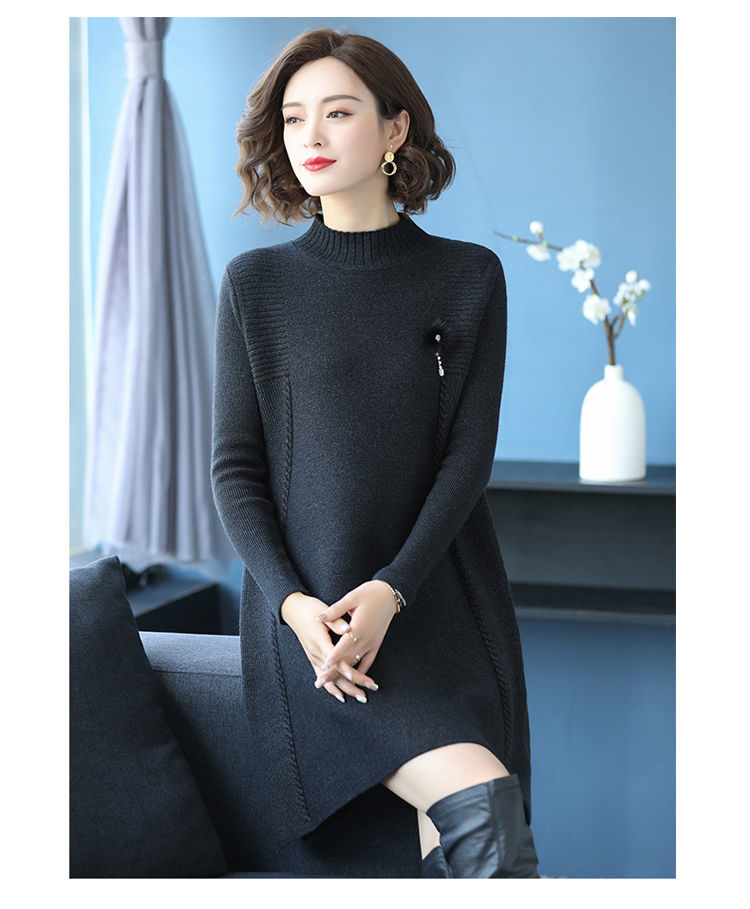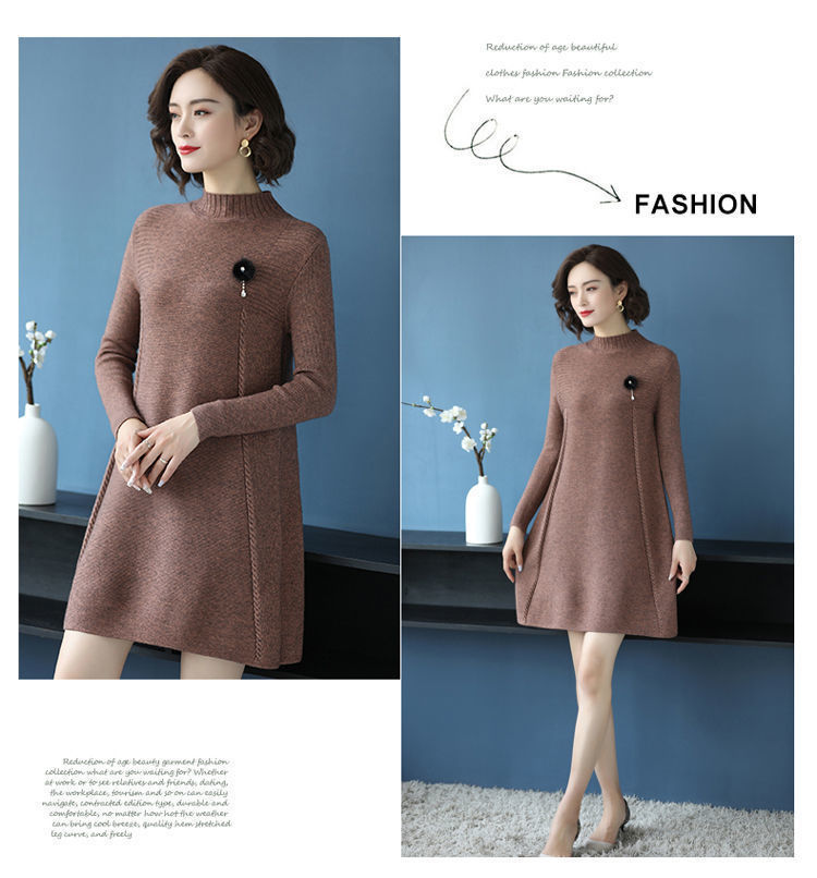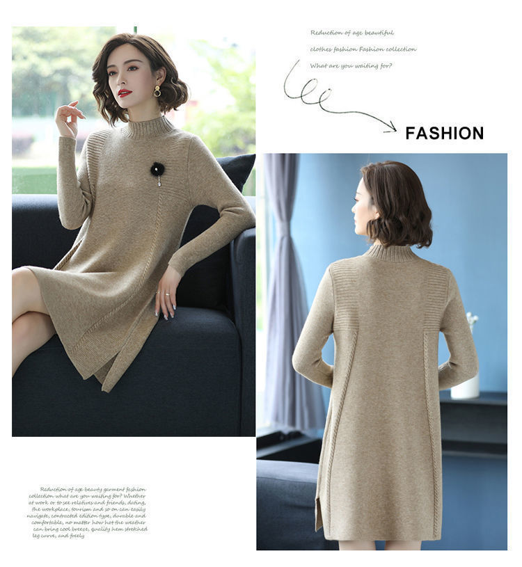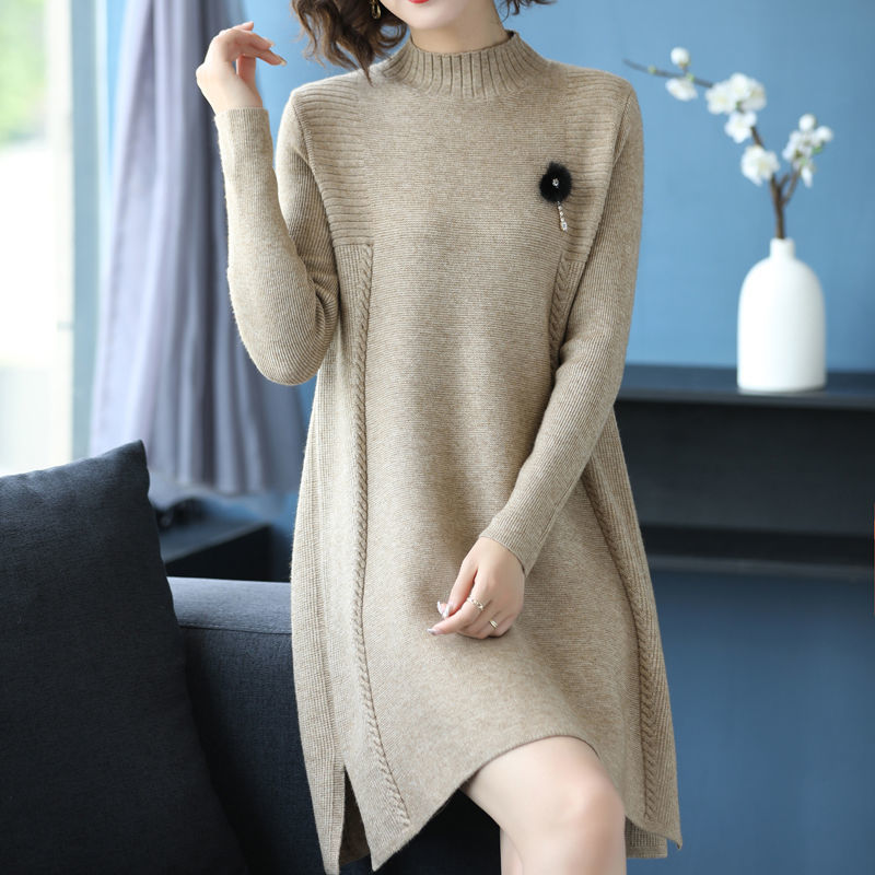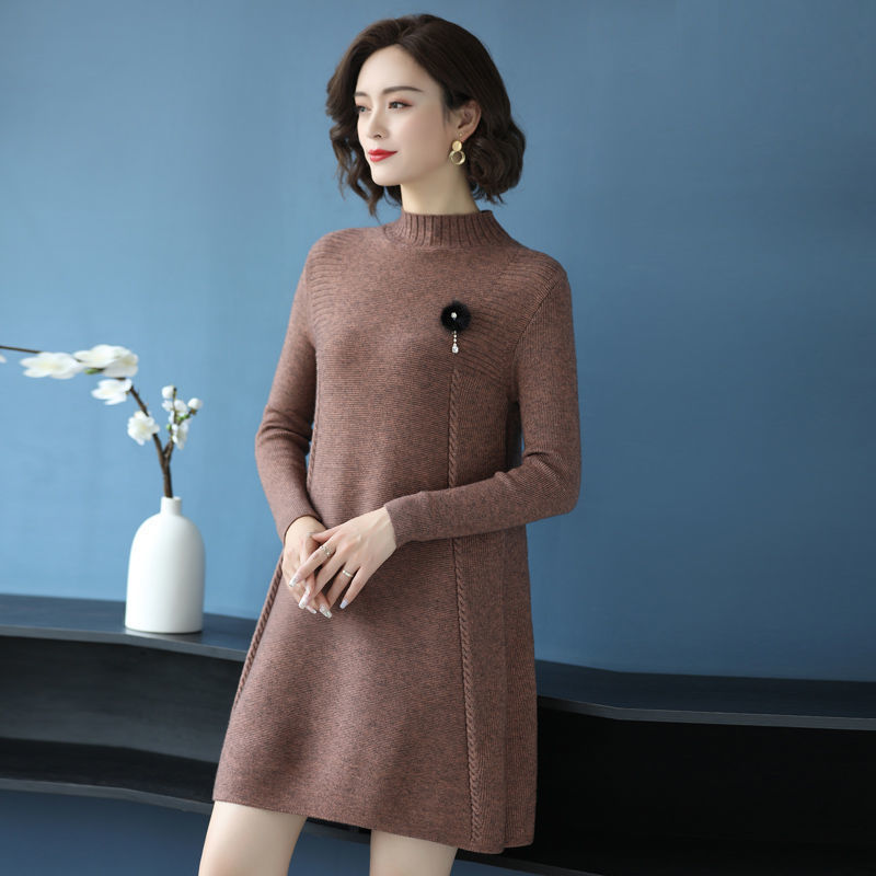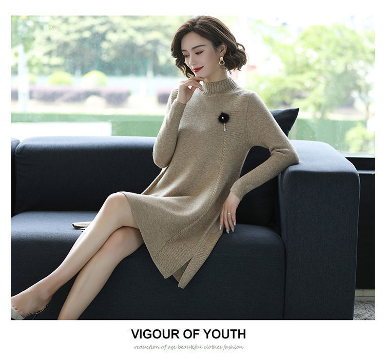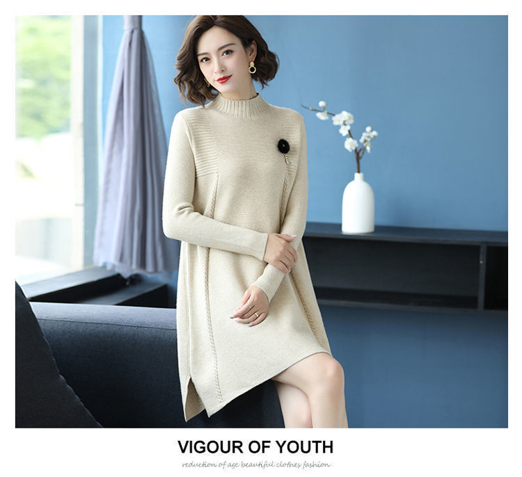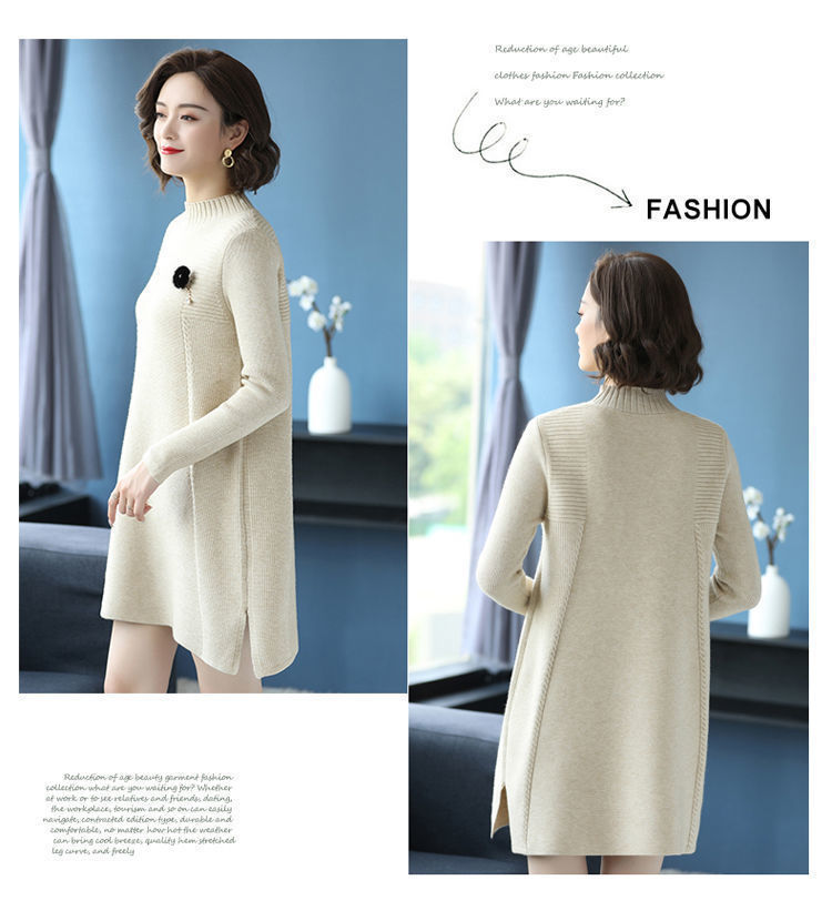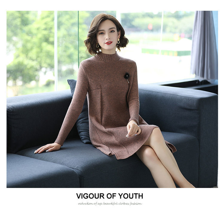 가을과 겨울 여성의 새로운 스웨터 여성 풀오버 미디 플러스 사이즈 스웨터 니트 스웨터 스커트베이스 셔츠스토어 가기