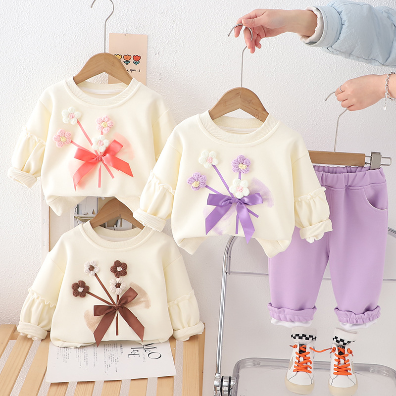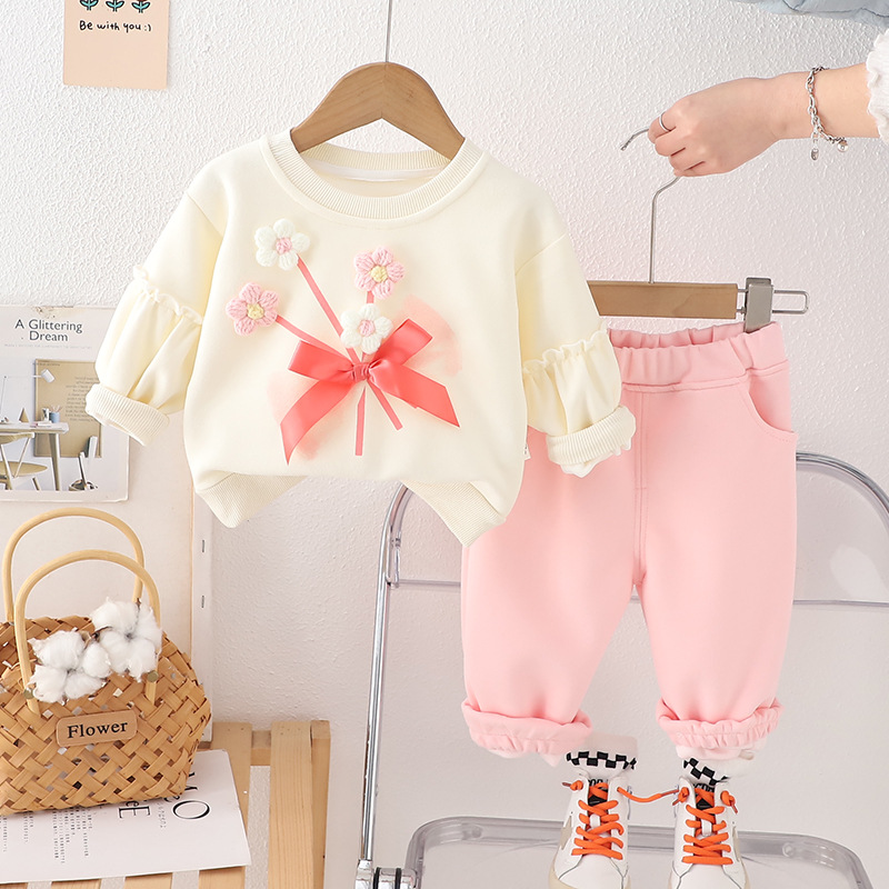 3258 소녀의 봄과 가을 캐주얼 땀 투피스 세트 어린이 긴팔 바지 세트 귀여운 아기 소녀 어린이 의류 봄스토어 가기