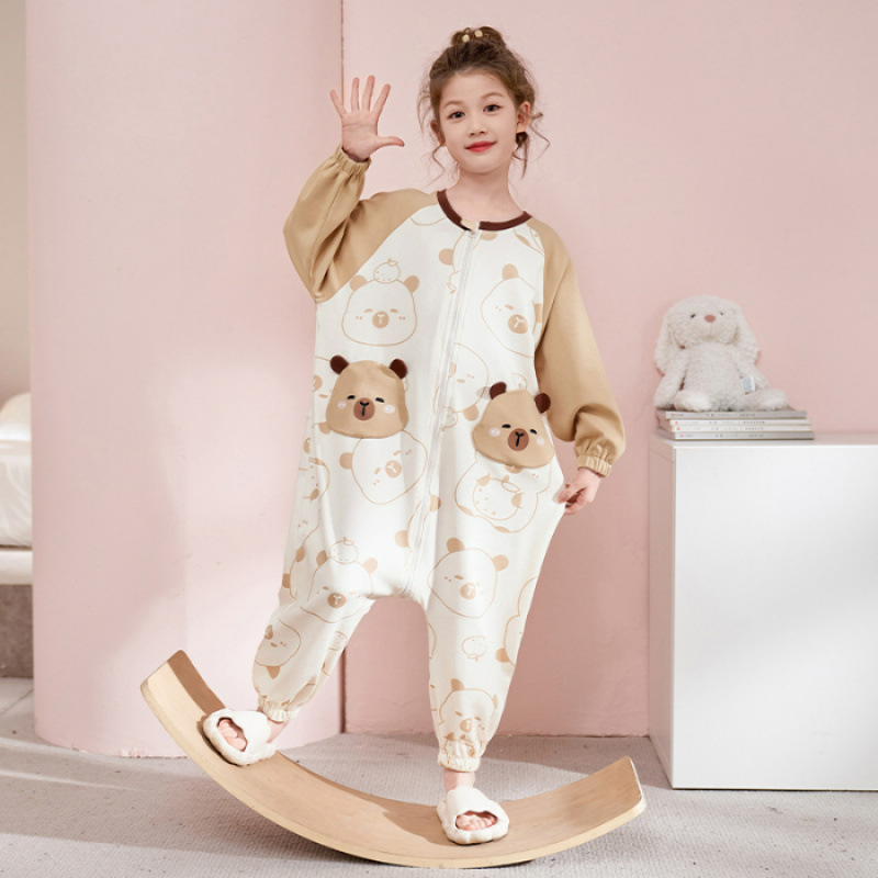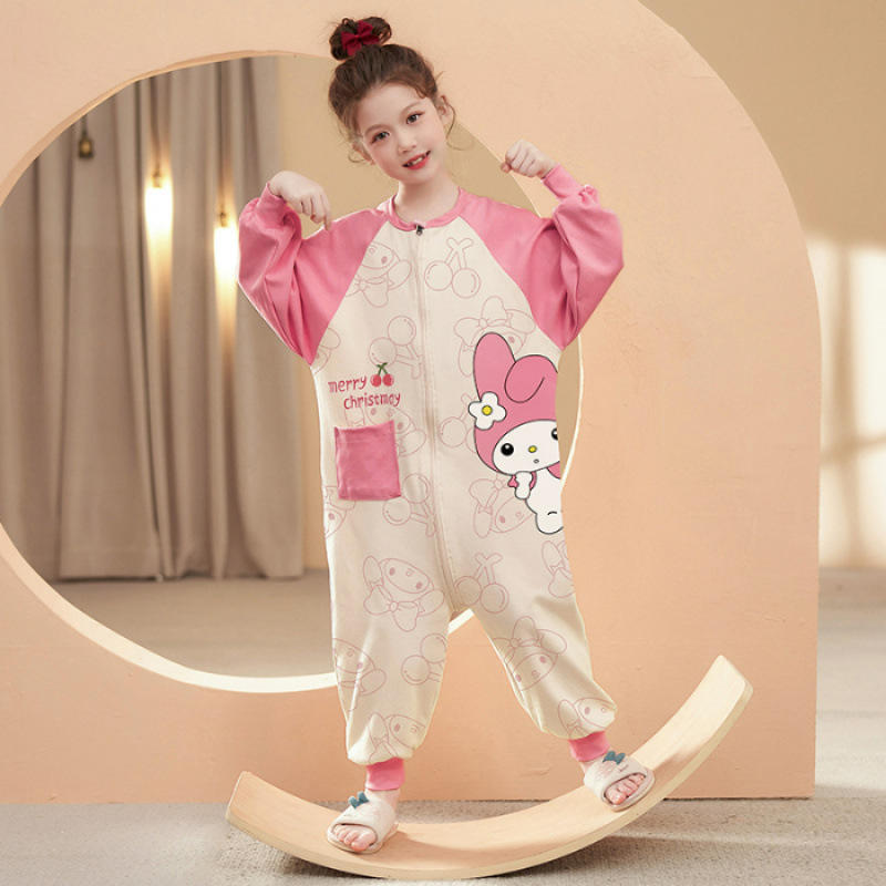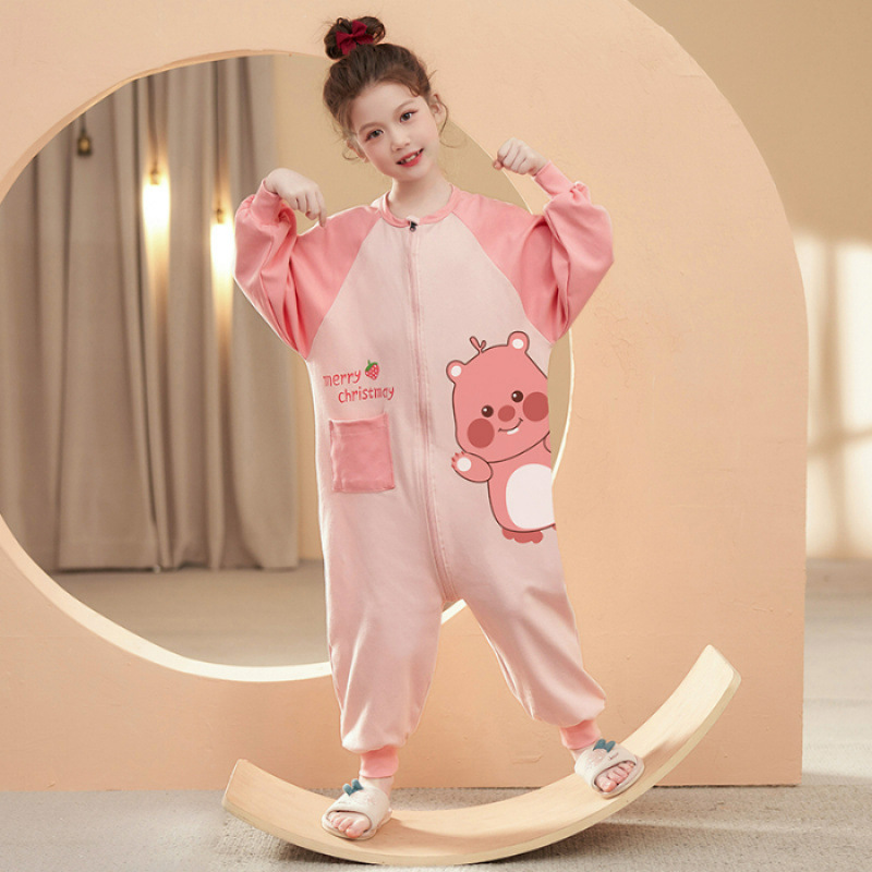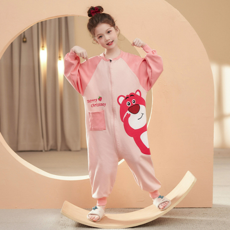 여아용 원피스 잠옷 순면 일체형 수면복 아동용 긴팔 홈웨어 만화 캐릭터 외출복스토어 가기