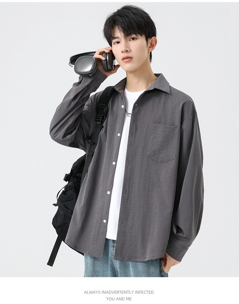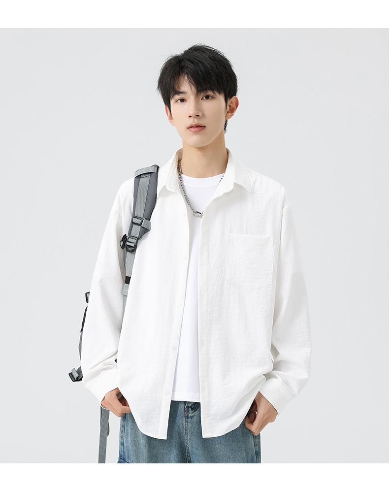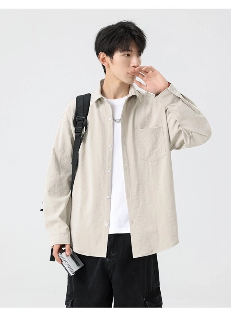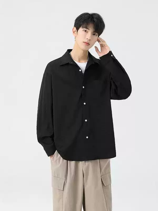 신상 가을 남성용 신축성 긴팔 셔츠 루즈핏 주름 방지 통기성 출퇴근용 다용도 캐주얼 셔츠 다림질 필요 없음