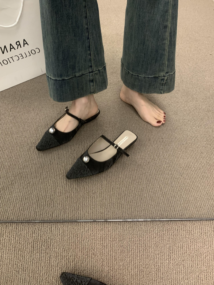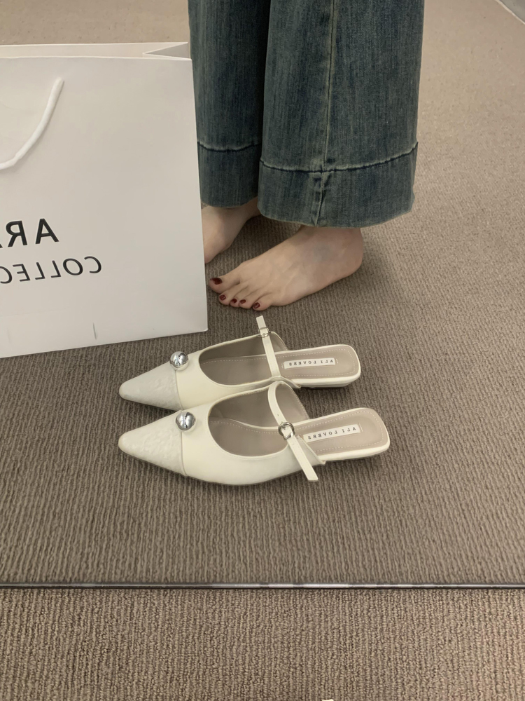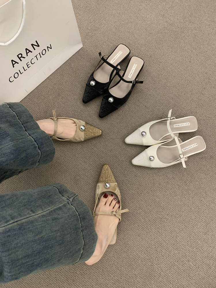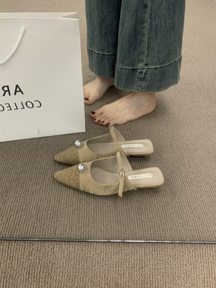 프랑스 스타일 플랫 작은 샤넬 스타일 바오 터우 반 슬리퍼 여성용 이브닝 슈즈 아웃웨어 게으른 스타일 슬립 온 우아한 포인팅 뮬러 슈즈스토어 가기