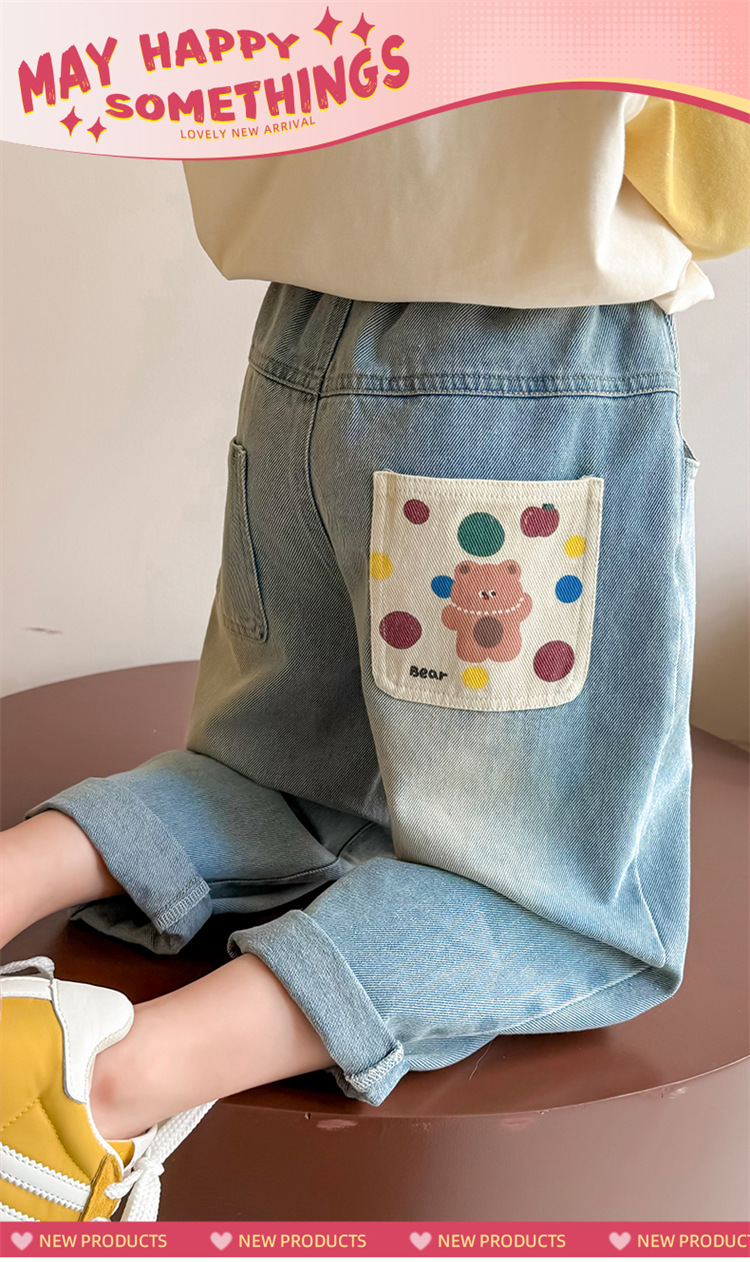 2025년 가을 신상 아동용 컬러풀 도트무늬 데님 팬츠, 한국 스타일 여아 캠퍼스 아빠바지, 아동복 도매 유행상품스토어 가기