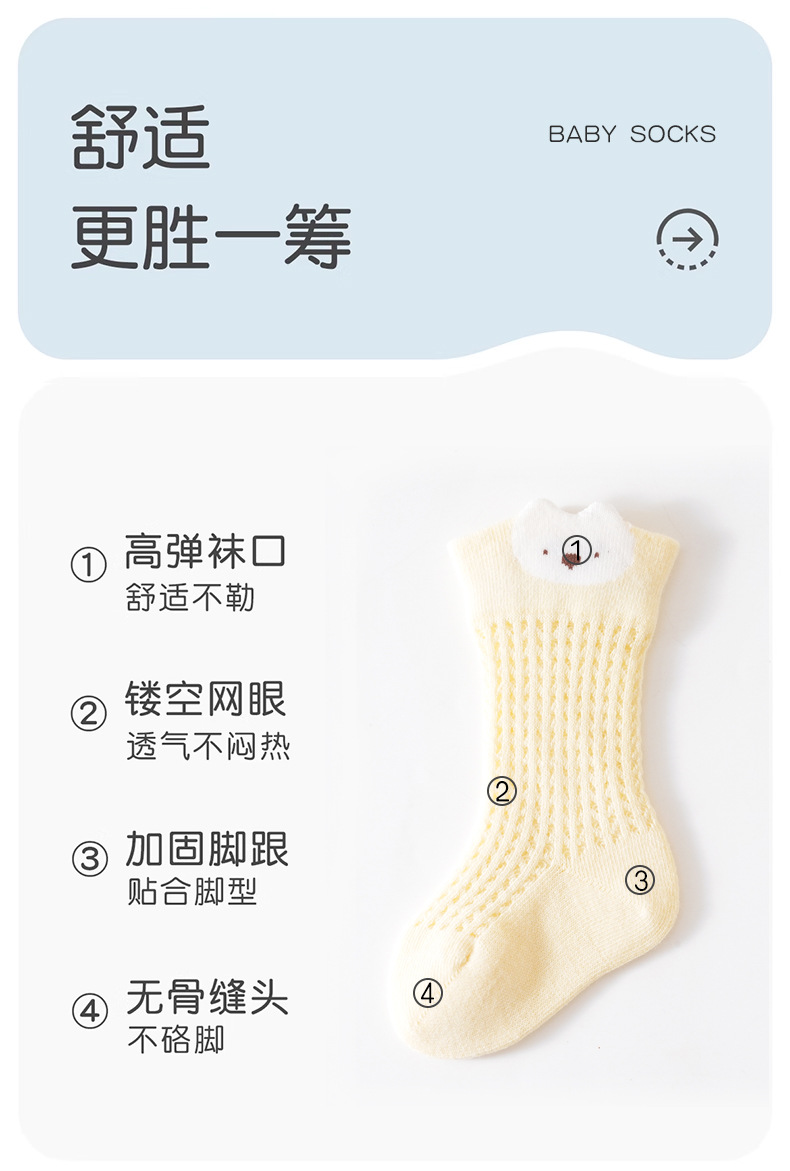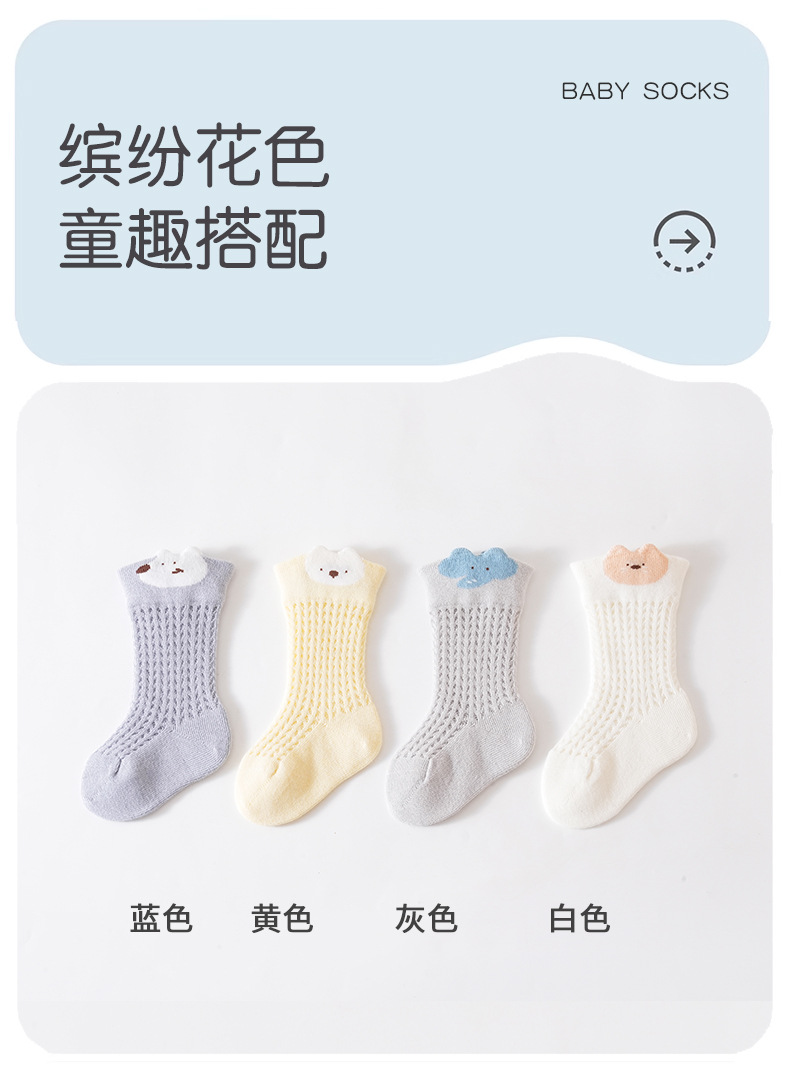 새로운 대형 메쉬 아기 양말 봄과 여름 얇은 만화 아기 양말 면화 통기성 뼈없는 어린이 양말스토어 가기