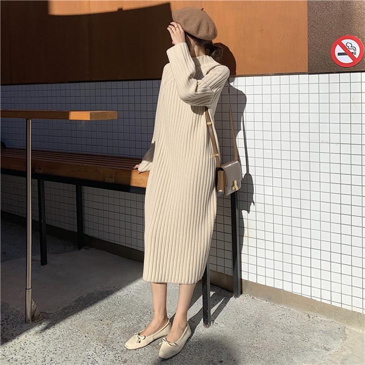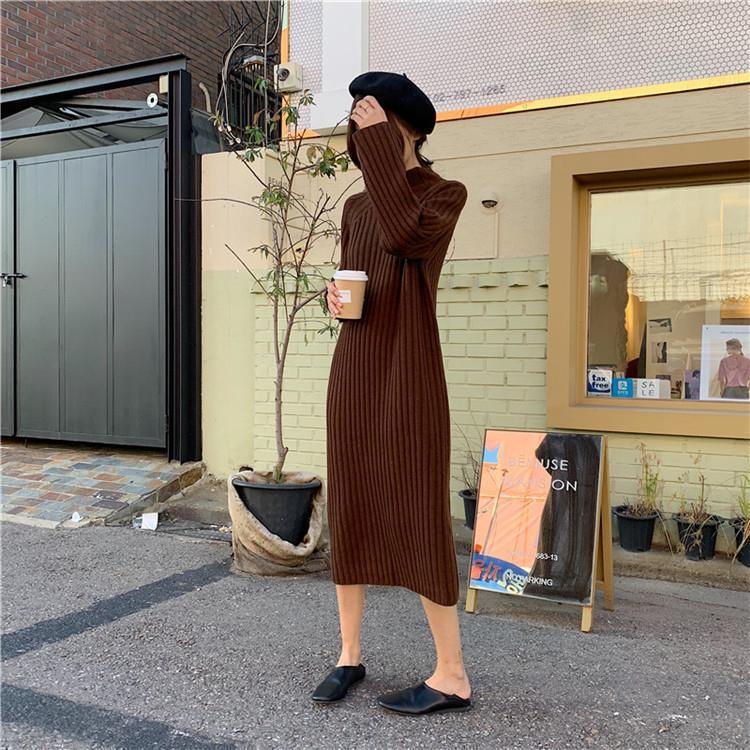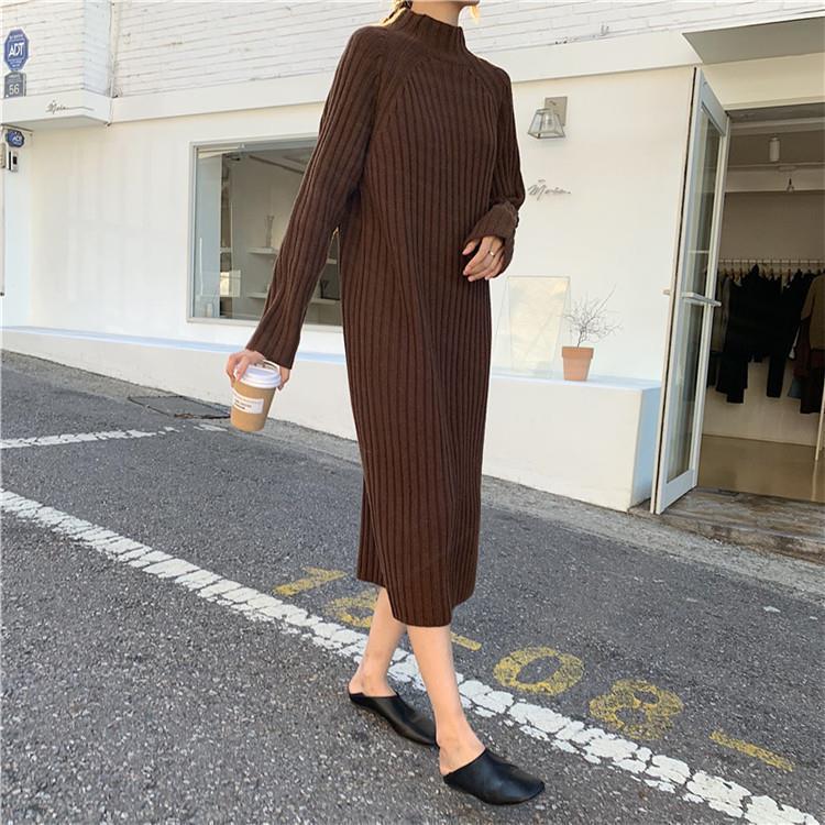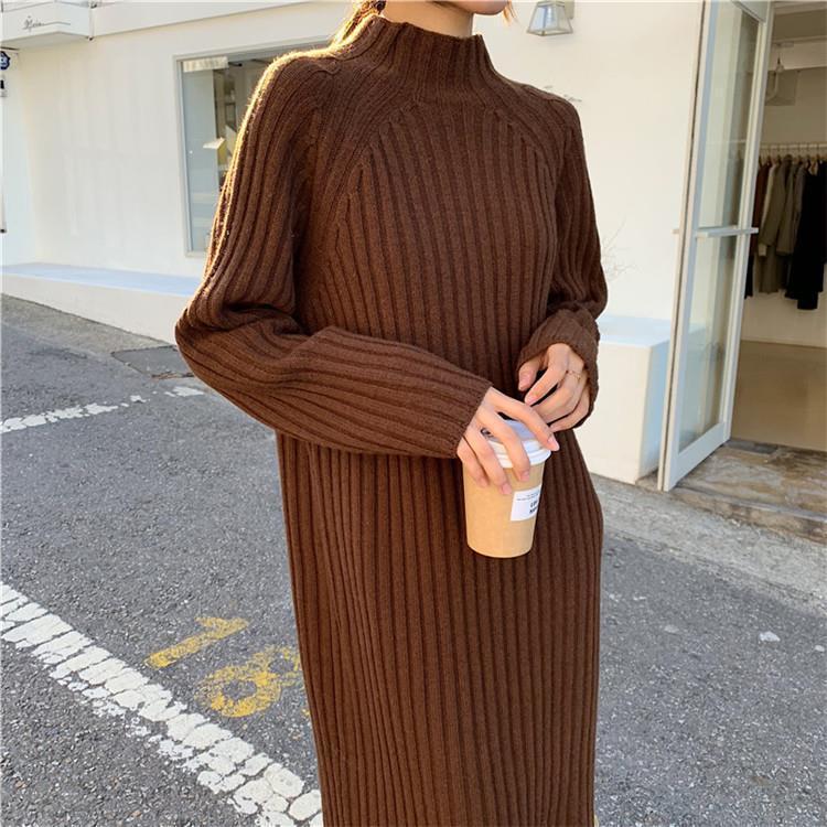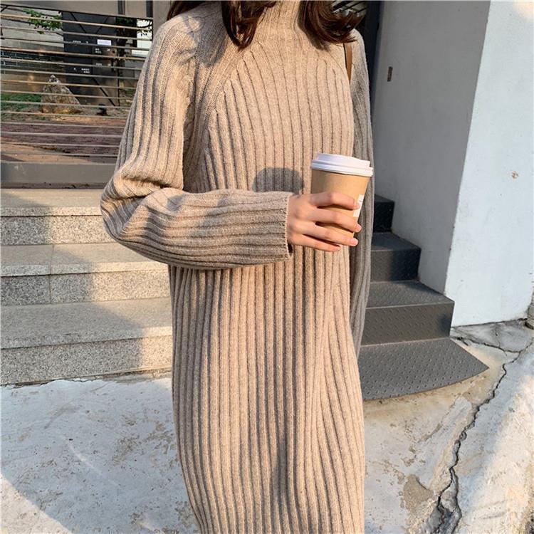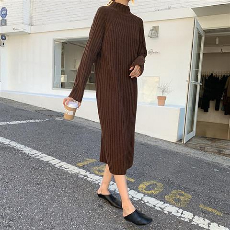 2024 봄과 가을 플러스 사이즈 중형 및 긴 니트 셔츠 여성 뚱뚱한 자매 슬림 세미 터틀넥베이스 스웨터 원피스 착용스토어 가기