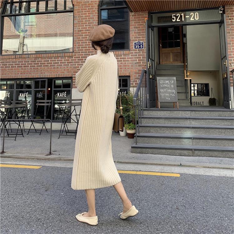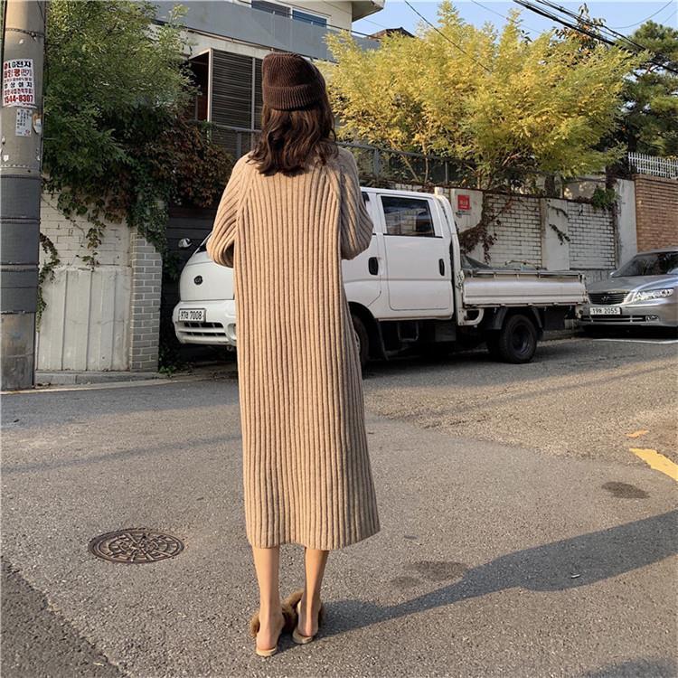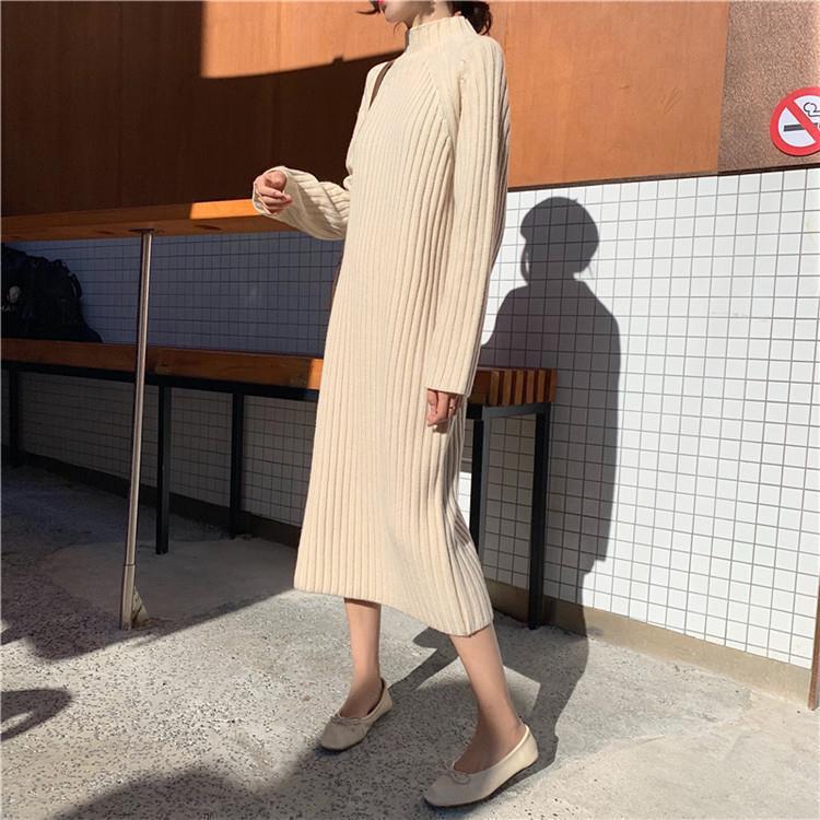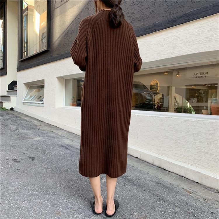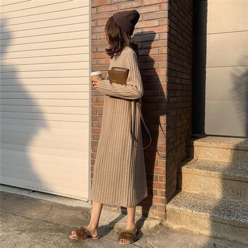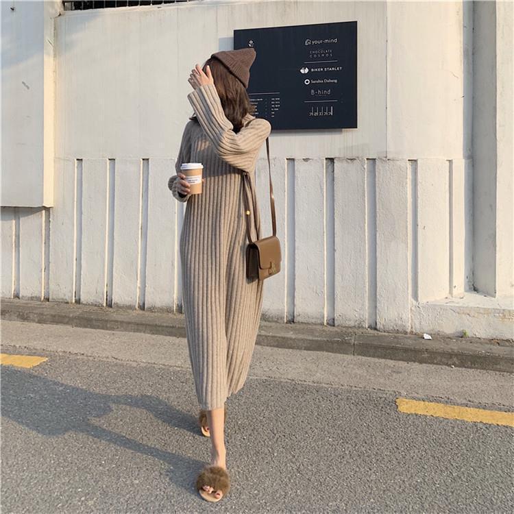 2024 봄과 가을 플러스 사이즈 중형 및 긴 니트 셔츠 여성 뚱뚱한 자매 슬림 세미 터틀넥베이스 스웨터 원피스 착용스토어 가기