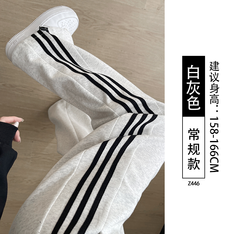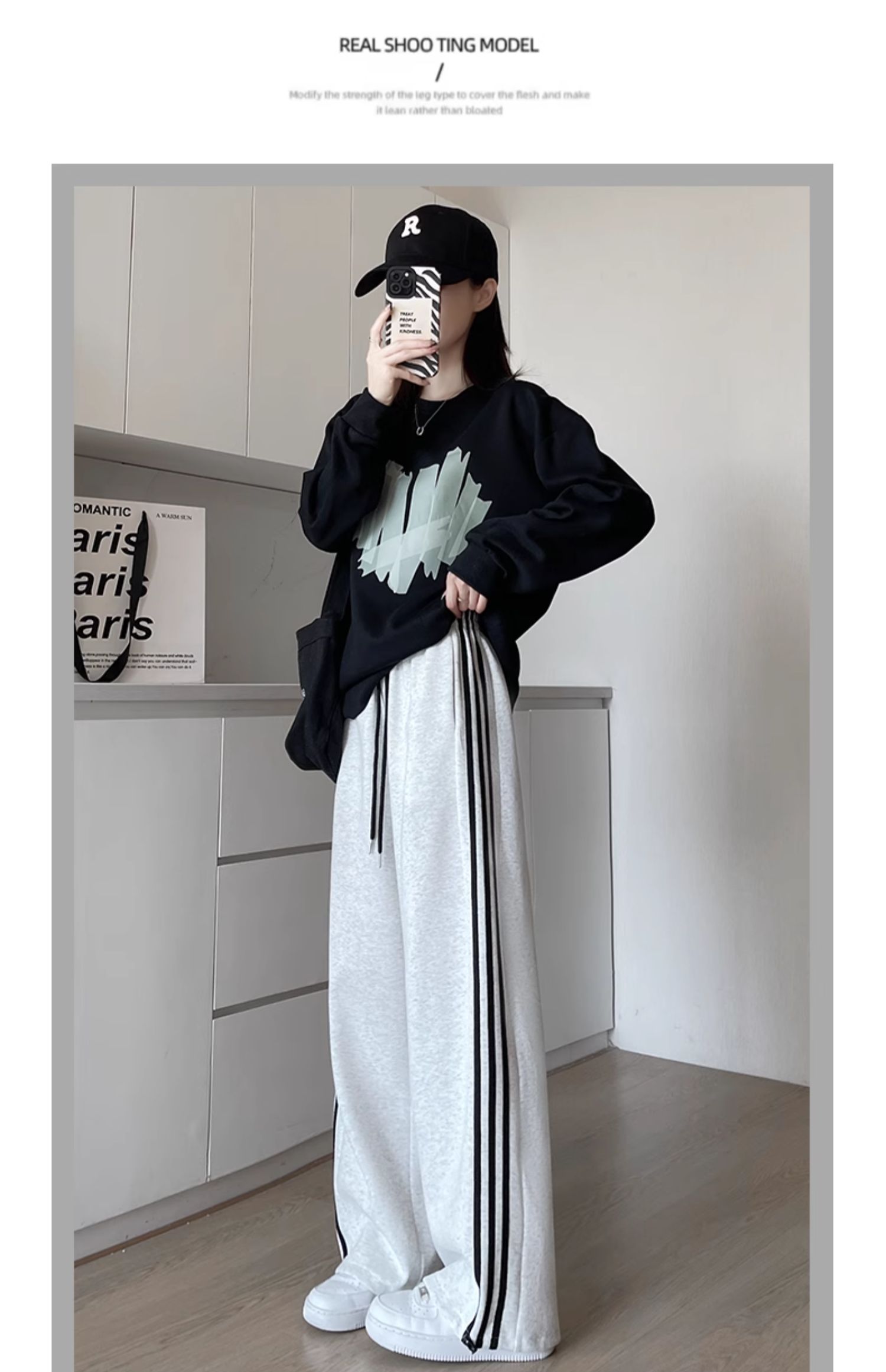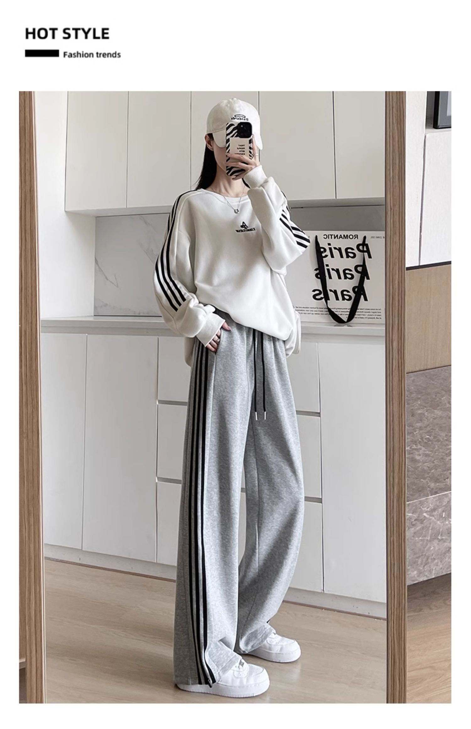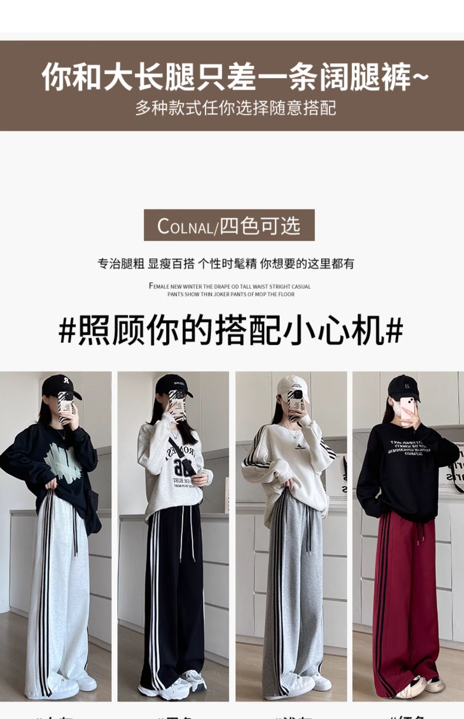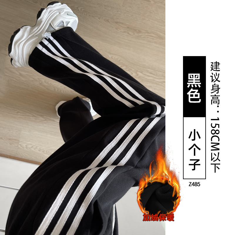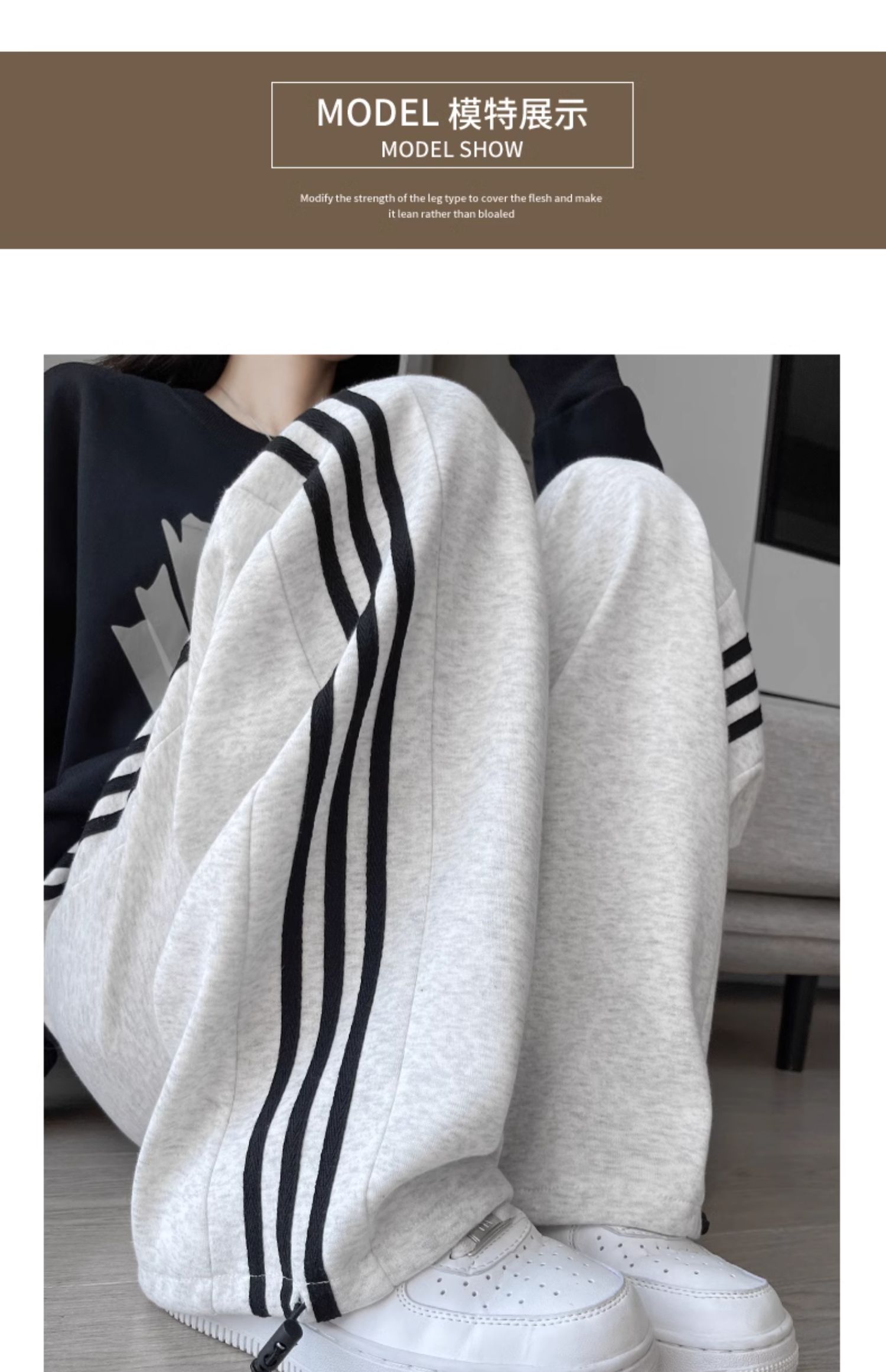 스트라이프 스포츠 바지 여자 가을과 겨울 기모 2025 새로운 넓은 다리 스트레이트 캐주얼 작은 느슨한 게으른 바지스토어 가기