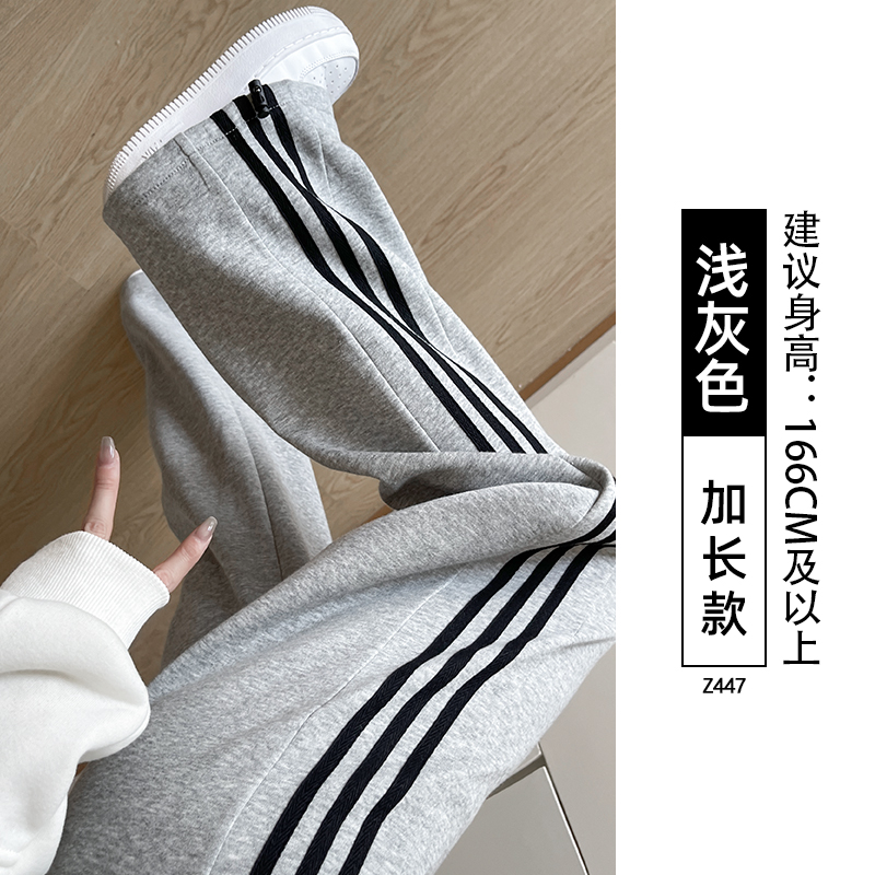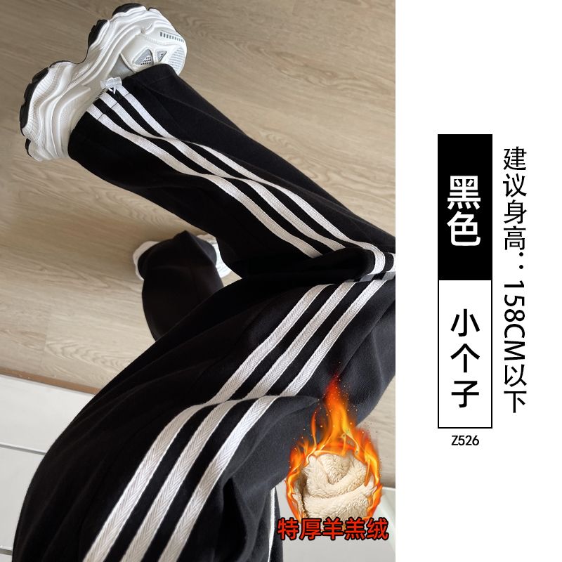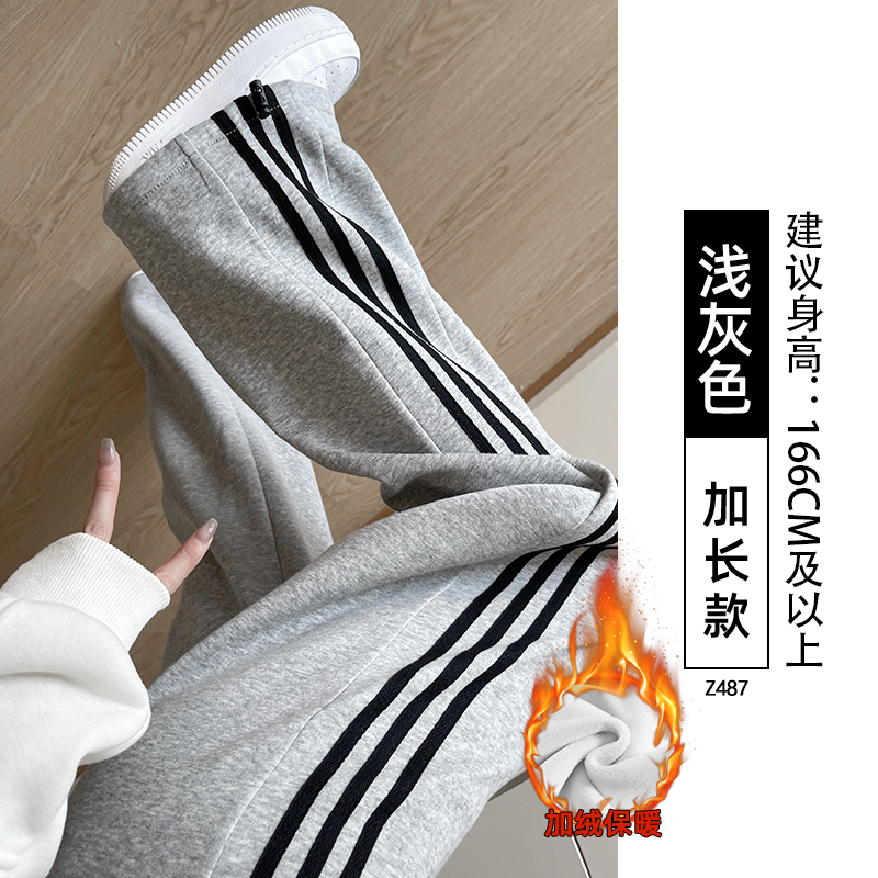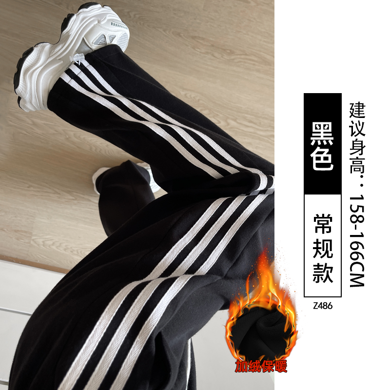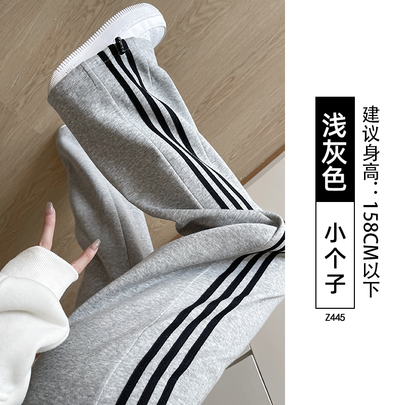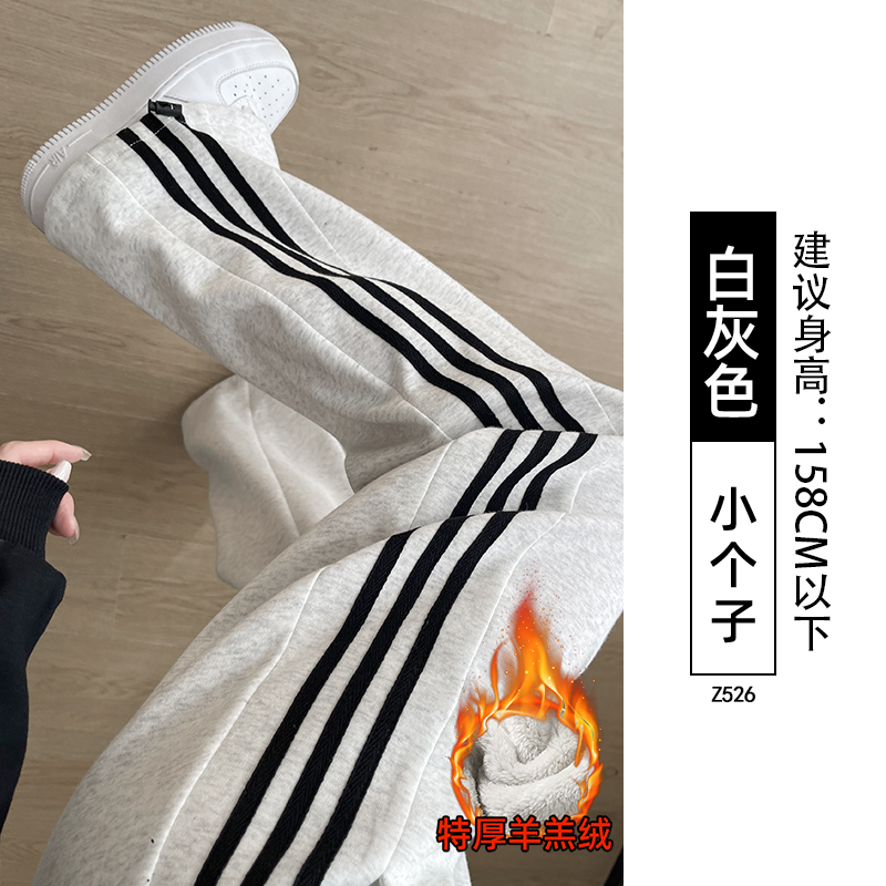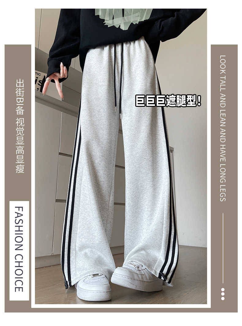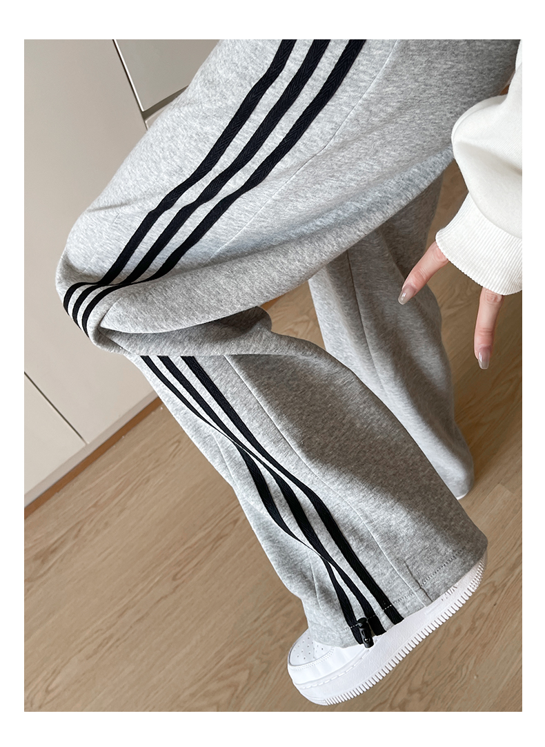 스트라이프 스포츠 바지 여자 가을과 겨울 기모 2025 새로운 넓은 다리 스트레이트 캐주얼 작은 느슨한 게으른 바지스토어 가기