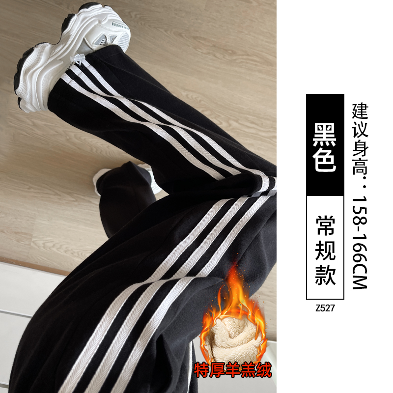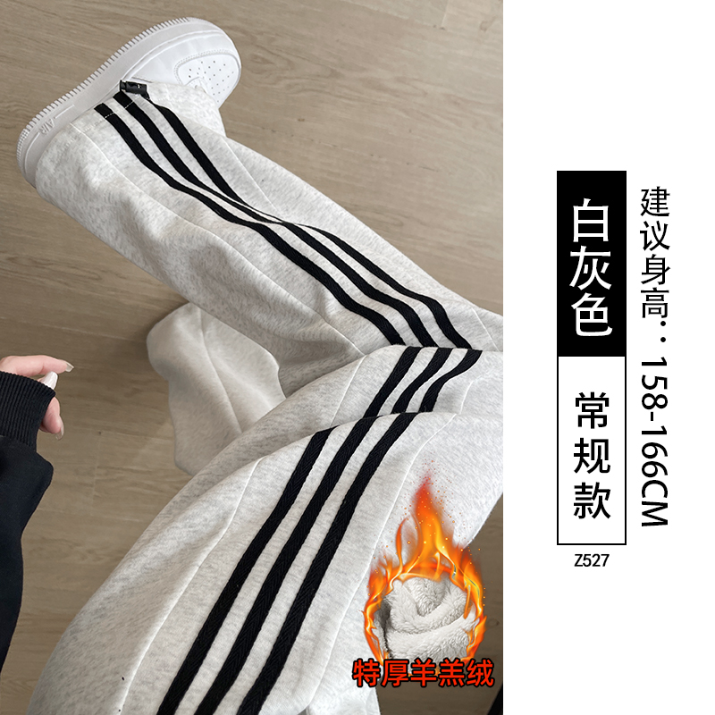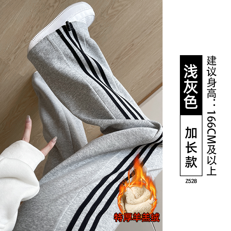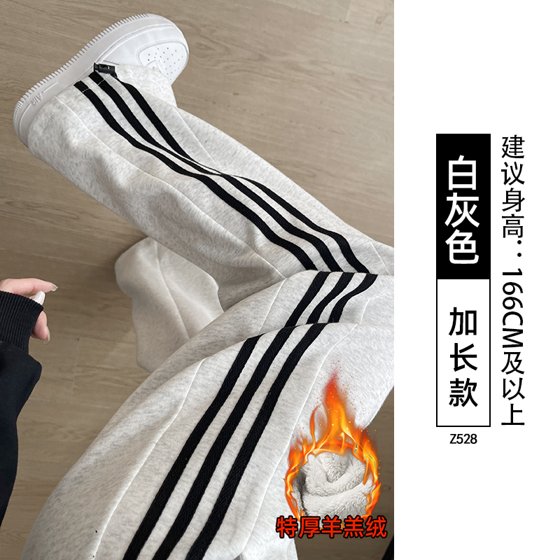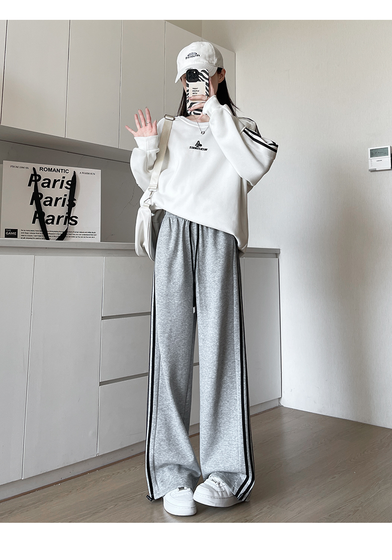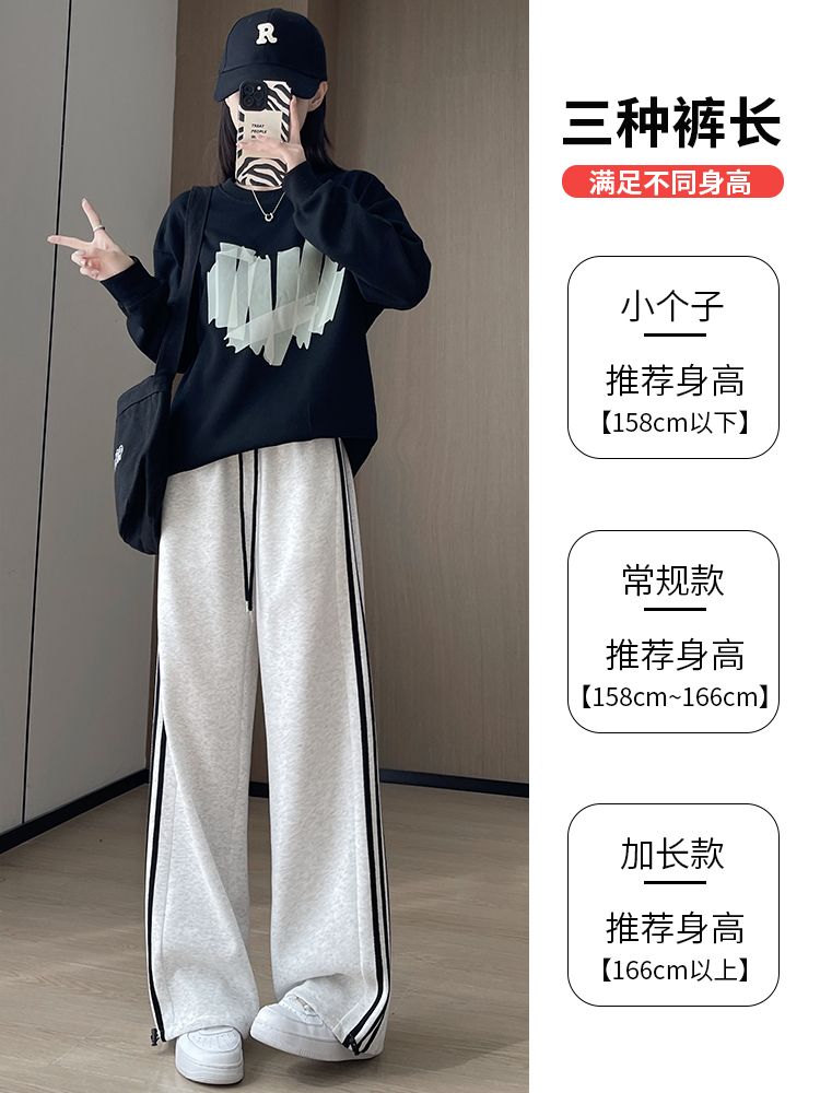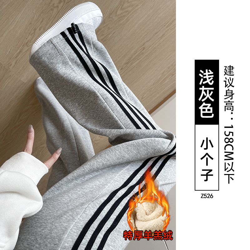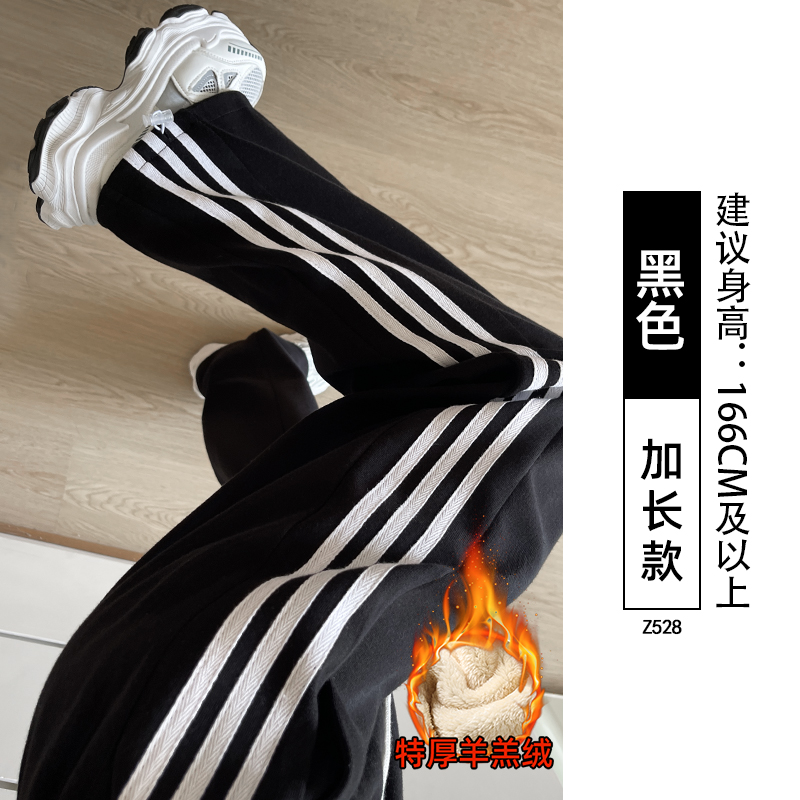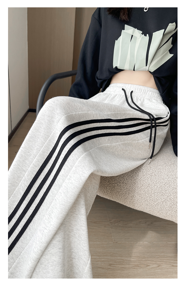 스트라이프 스포츠 바지 여자 가을과 겨울 기모 2025 새로운 넓은 다리 스트레이트 캐주얼 작은 느슨한 게으른 바지스토어 가기