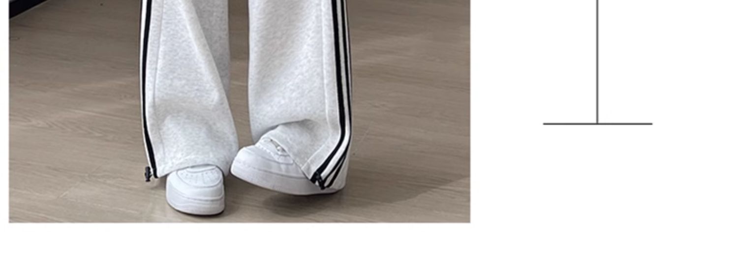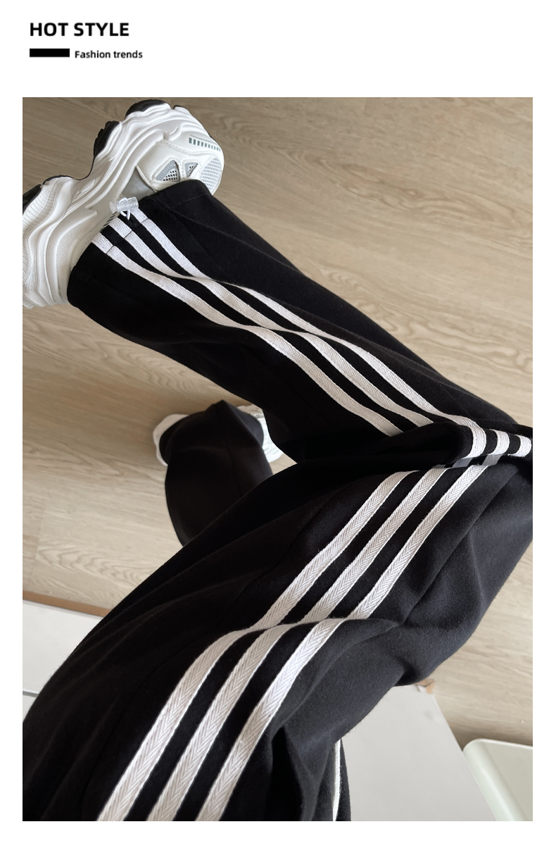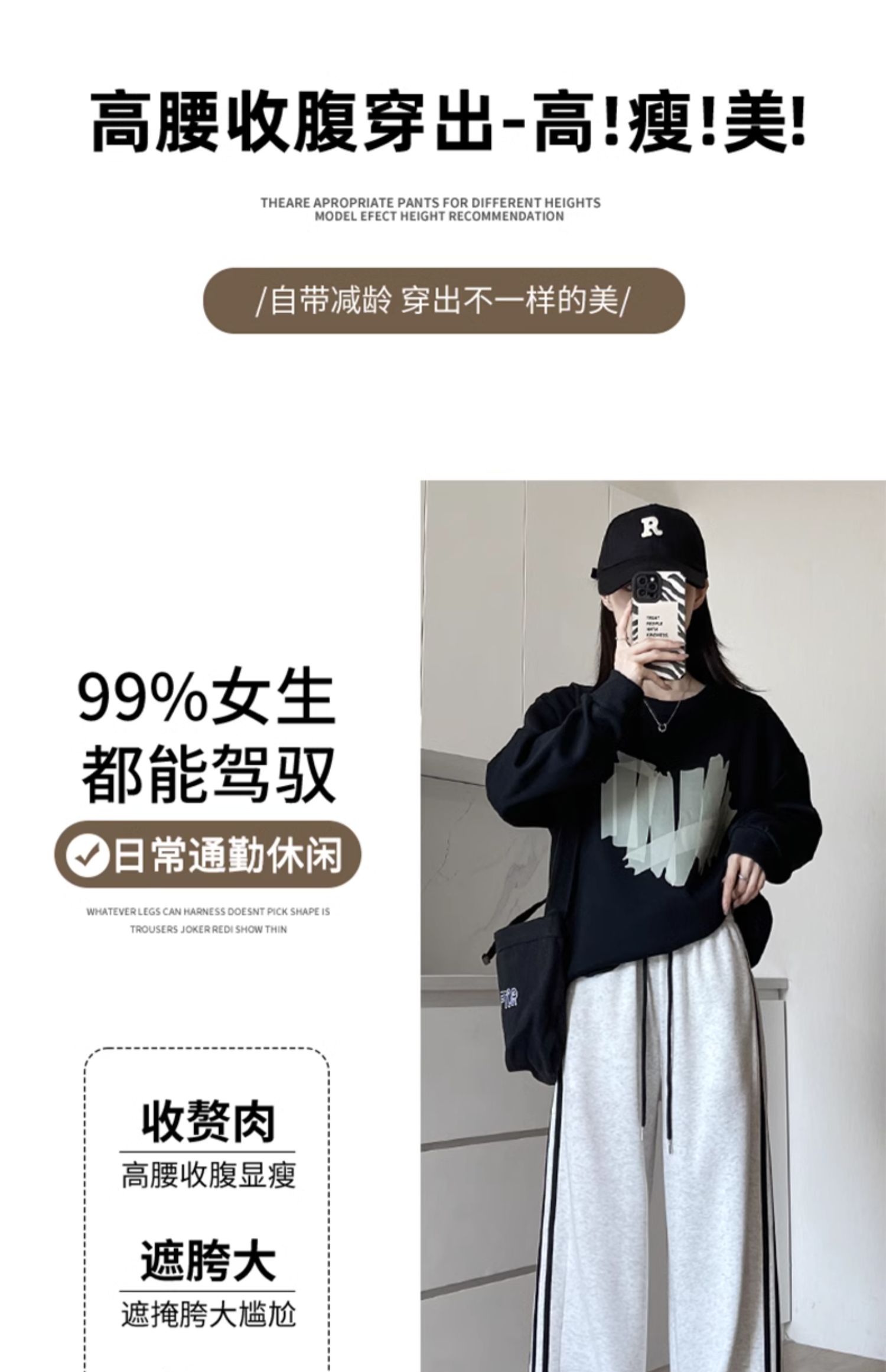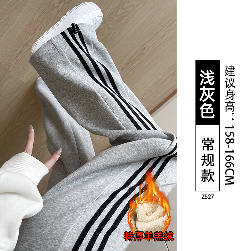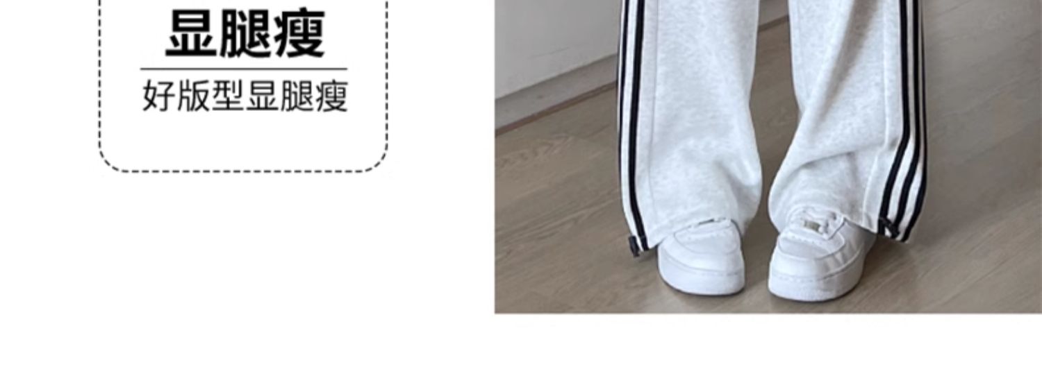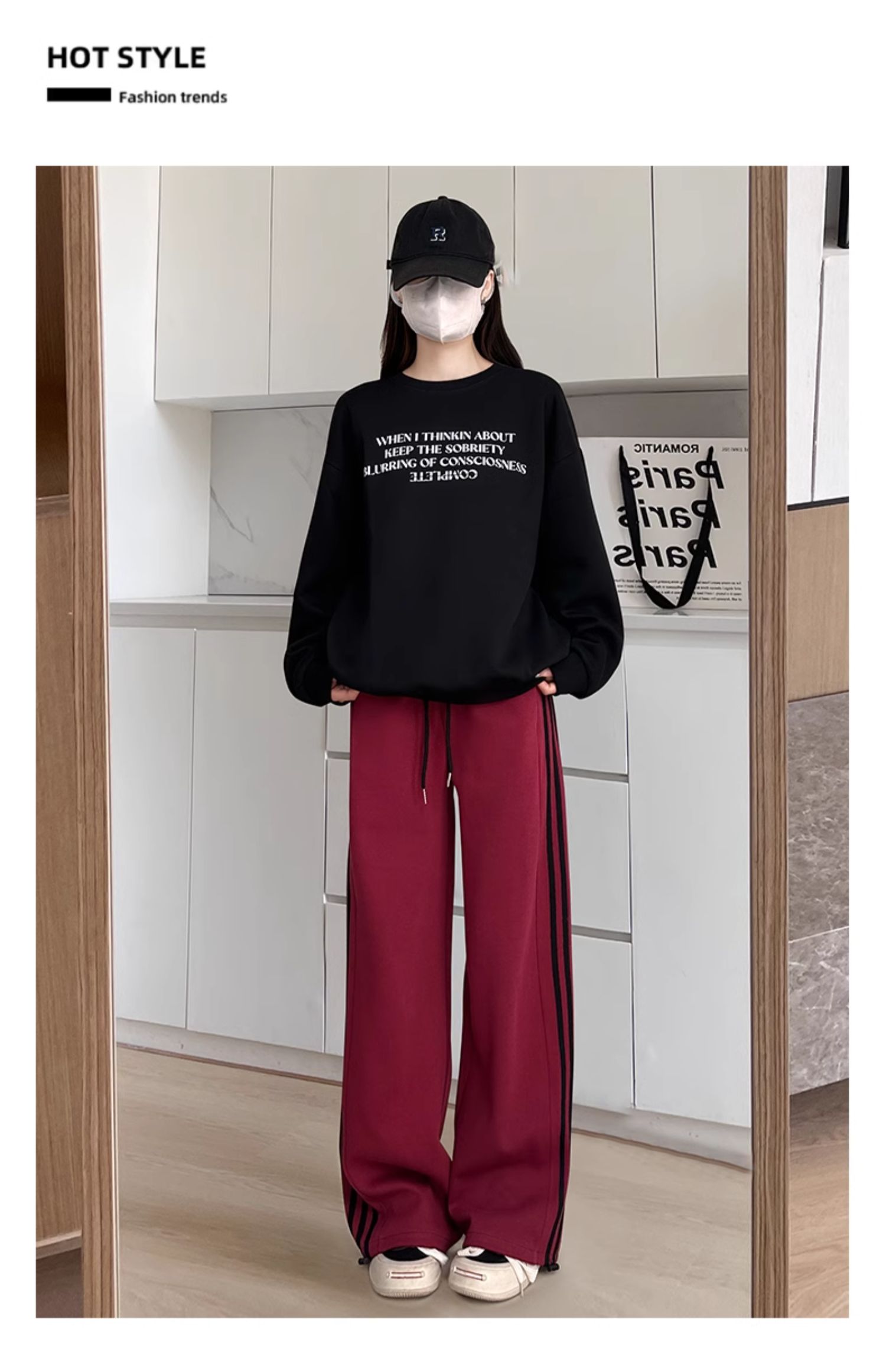 스트라이프 스포츠 바지 여자 가을과 겨울 기모 2025 새로운 넓은 다리 스트레이트 캐주얼 작은 느슨한 게으른 바지스토어 가기