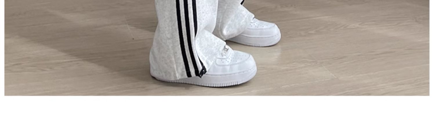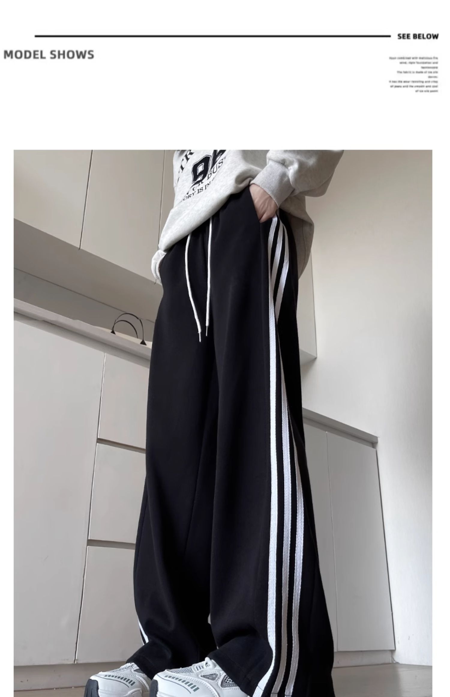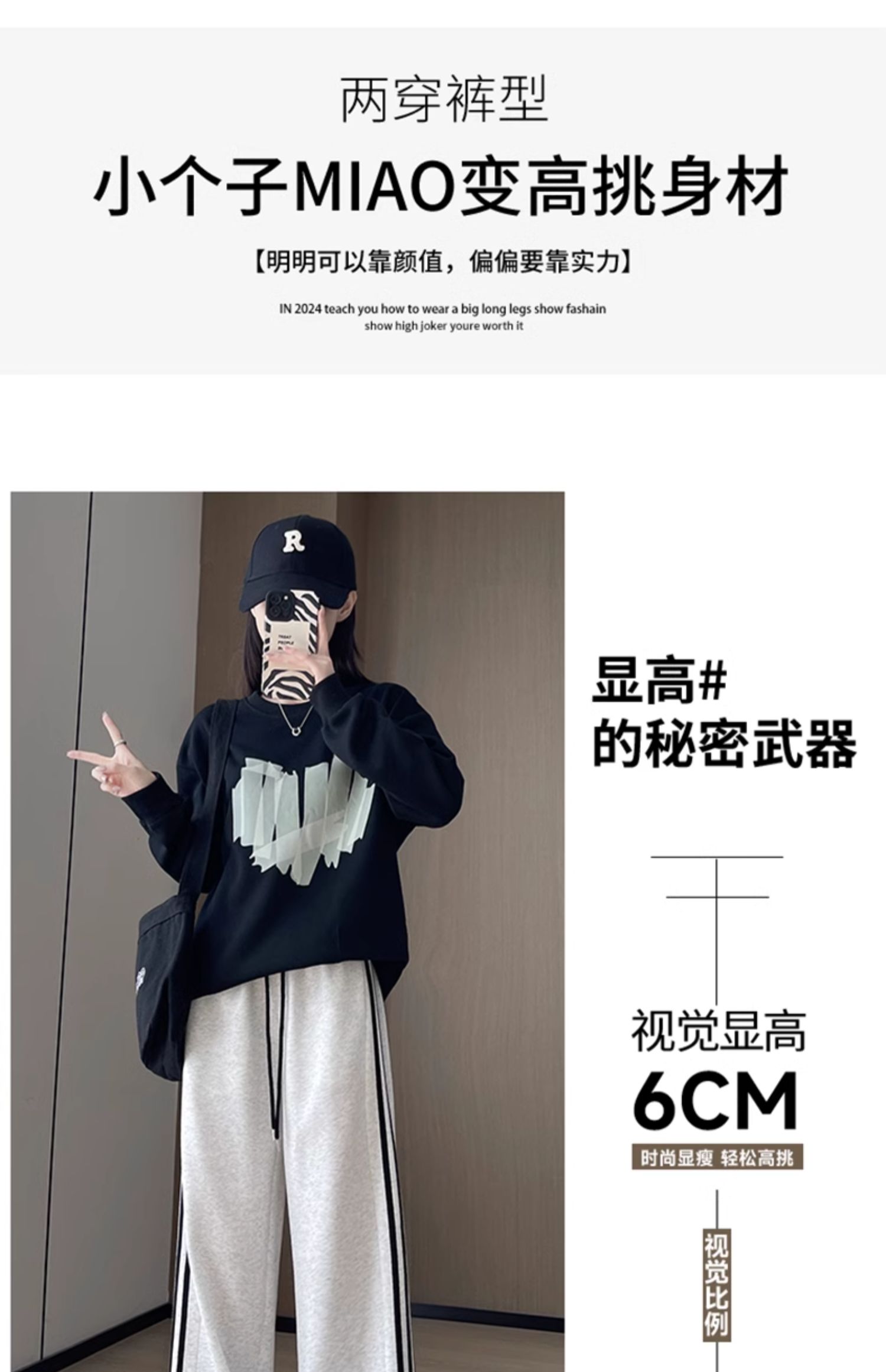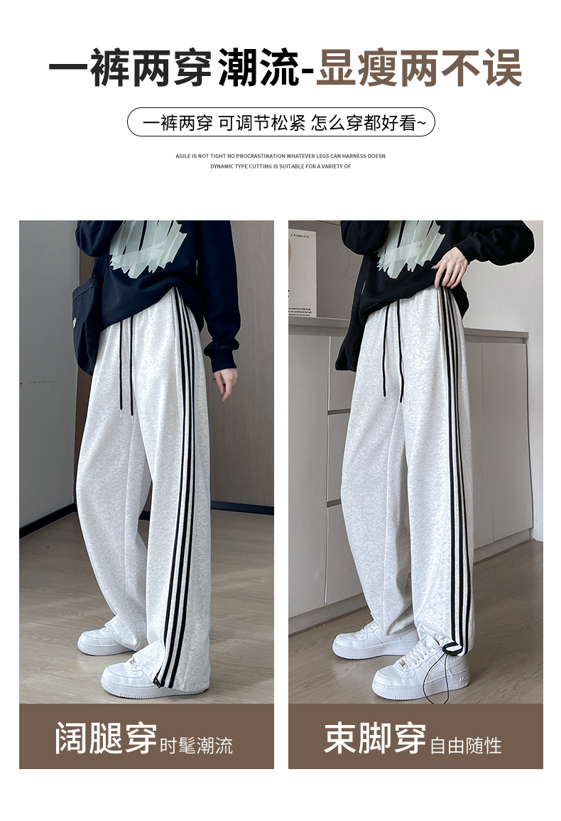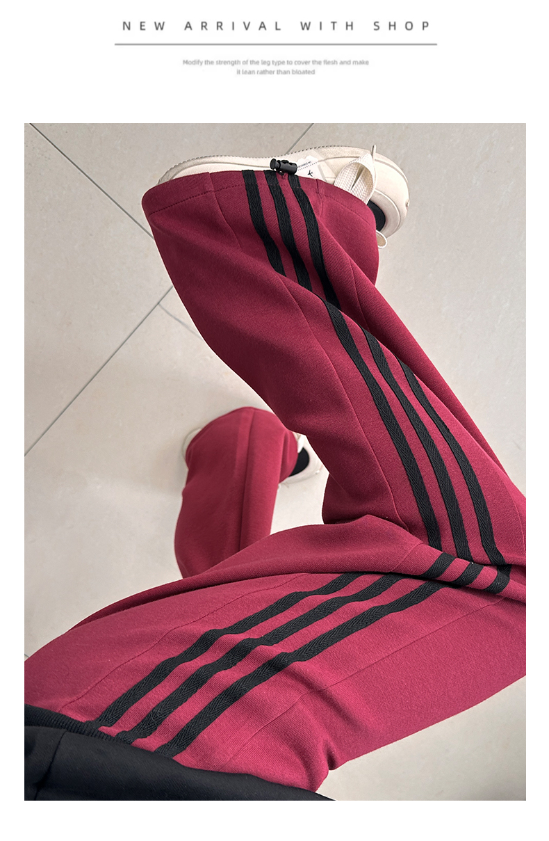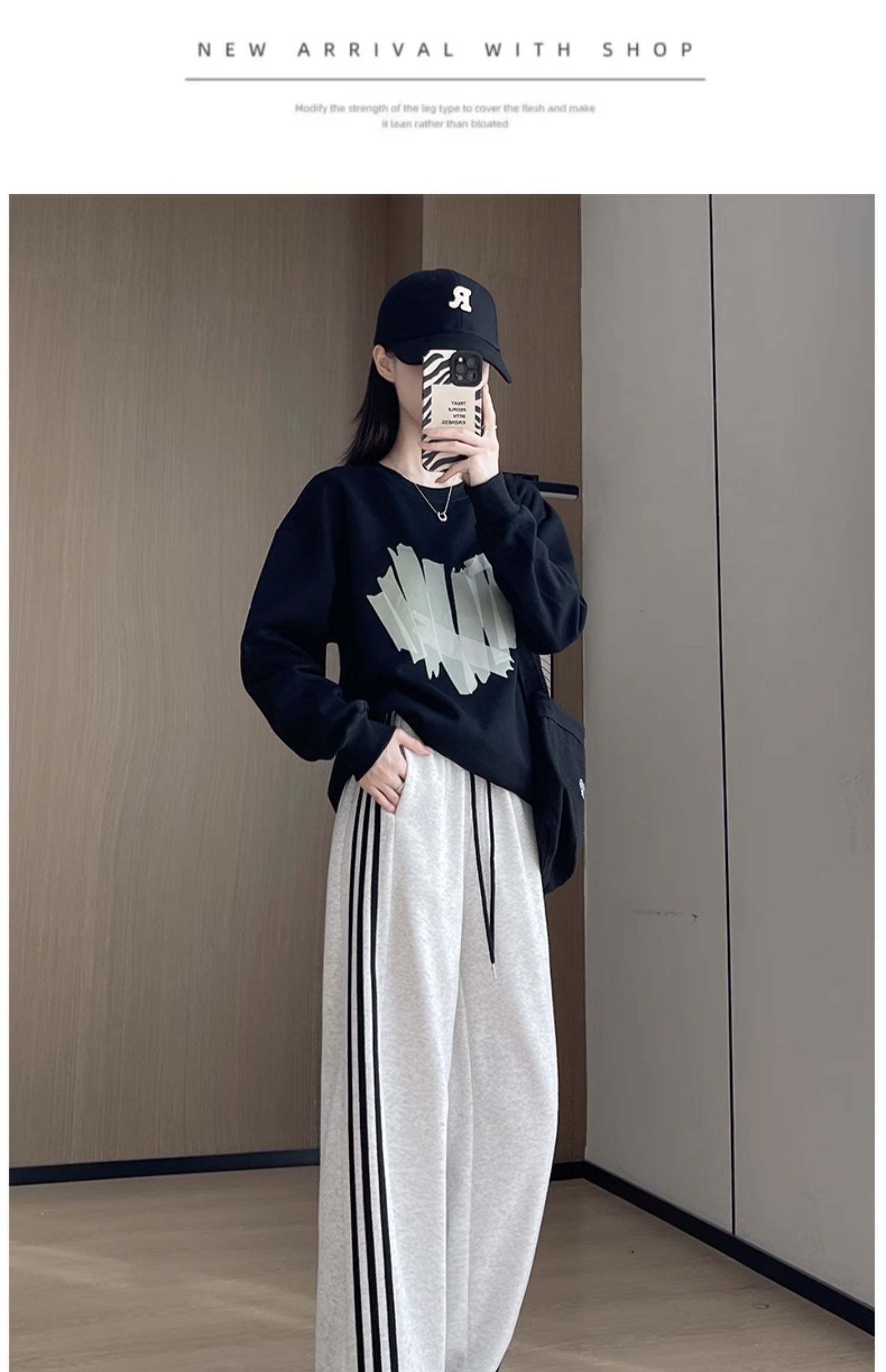 스트라이프 스포츠 바지 여자 가을과 겨울 기모 2025 새로운 넓은 다리 스트레이트 캐주얼 작은 느슨한 게으른 바지스토어 가기