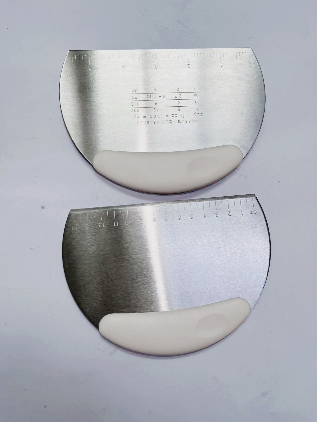 공장 직접 스테인레스 스틸 국수 커터 스케일 스크레이퍼 베이킹 도구 쌀 롤 케이크 스크레이퍼 반원형 스크레이퍼