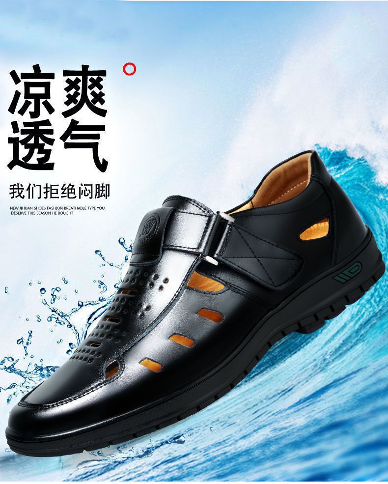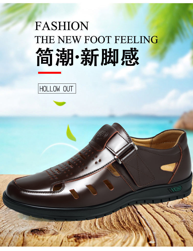 여름 중년 및 노인 착용 방지 아빠 신발을위한 여름 중공 가죽 샌들 남성 매일 캐주얼 통기성 비즈니스 소프트 페이스 홀 신발스토어 가기