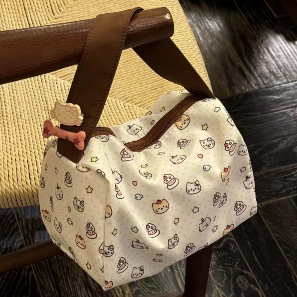 귀여운 만화 키티 고양이 휴대용 화장품 가방 대용량 저장 가방 화장실 가방 스테레오 핸드백 여성용 핸드 홀더 DY스토어 가기