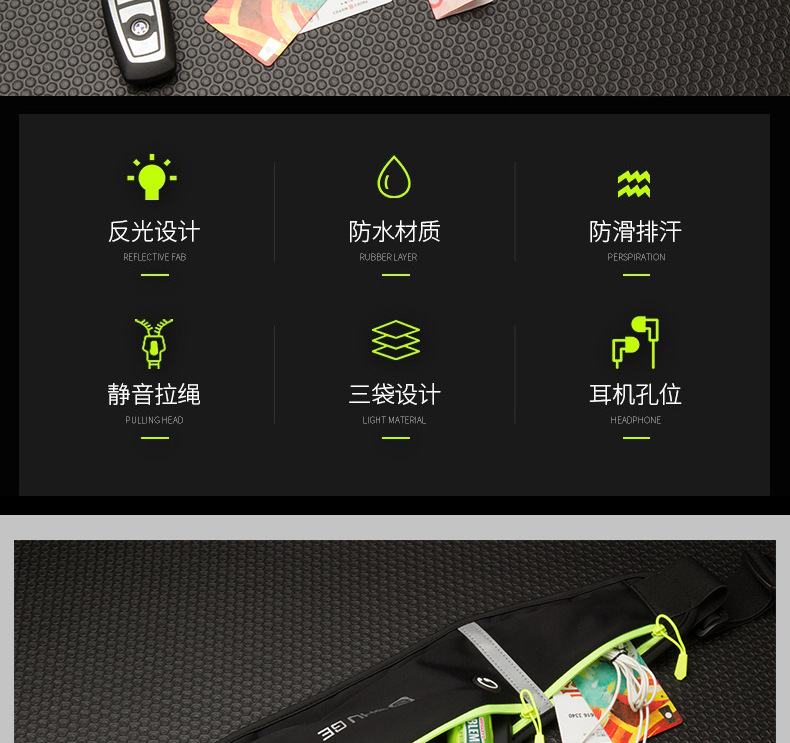 • 형광녹색【7.2inch 런닝 웨이스트 백】프리 사이즈