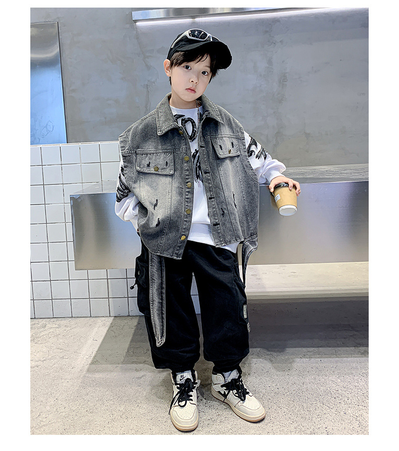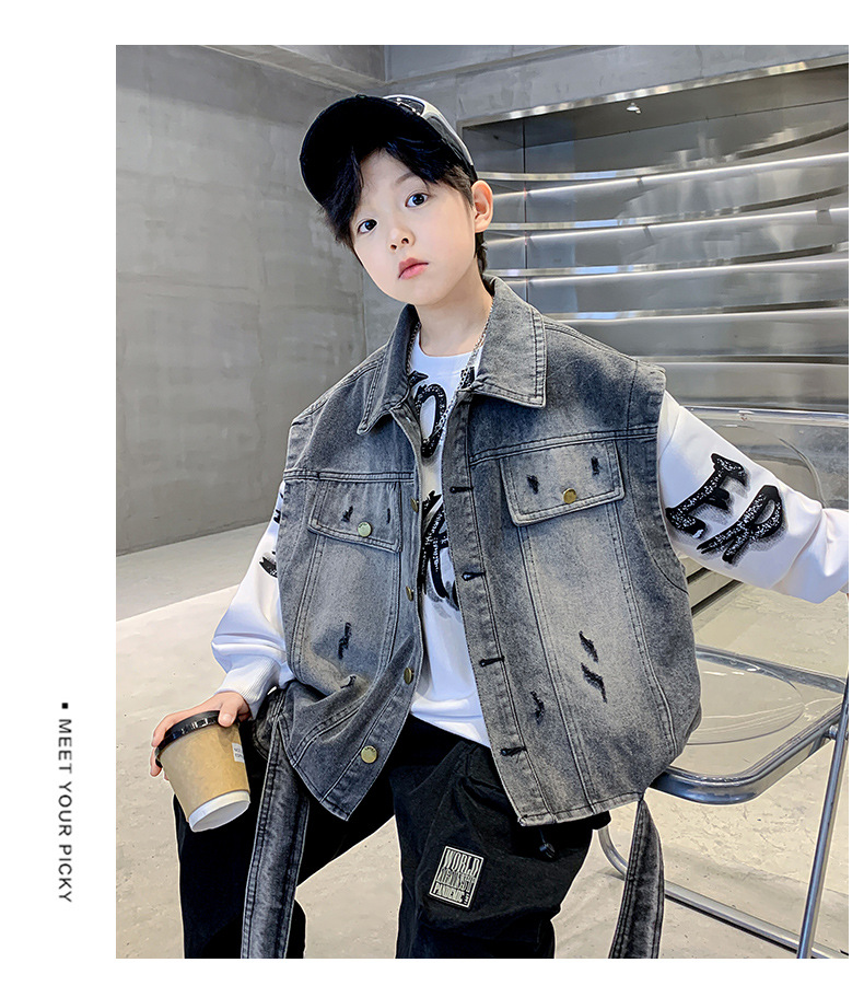 소년의 봄과 가을 데님 조끼 2025 새로운 중형 및 대형 아동복 서양식 올 매치 웨이스트 코트 트렌디스토어 가기