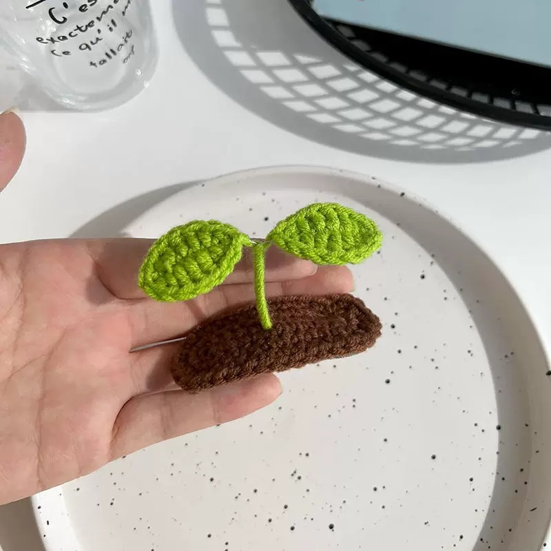 귀여운 3 차원 묘목 머리핀 니트 BB 클립 머리핀 어린이 이마 앞머리 클립 상단 클립 재미 재미있는 헤어 액세서리