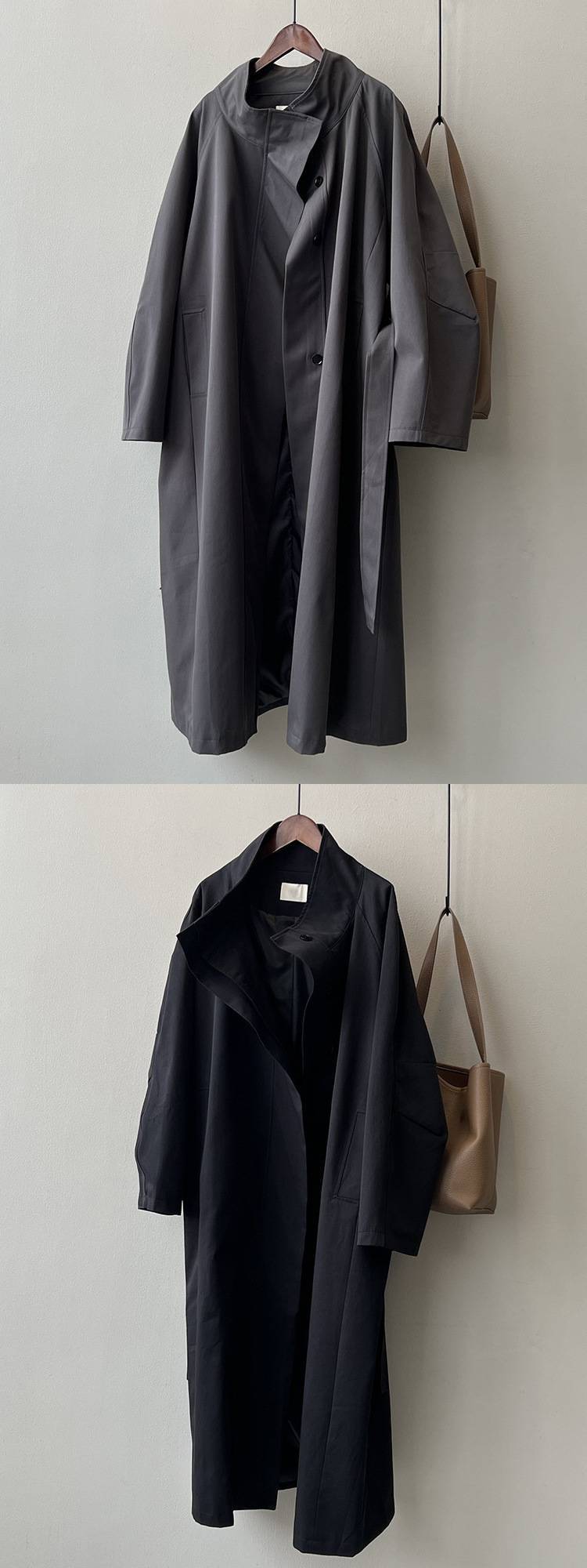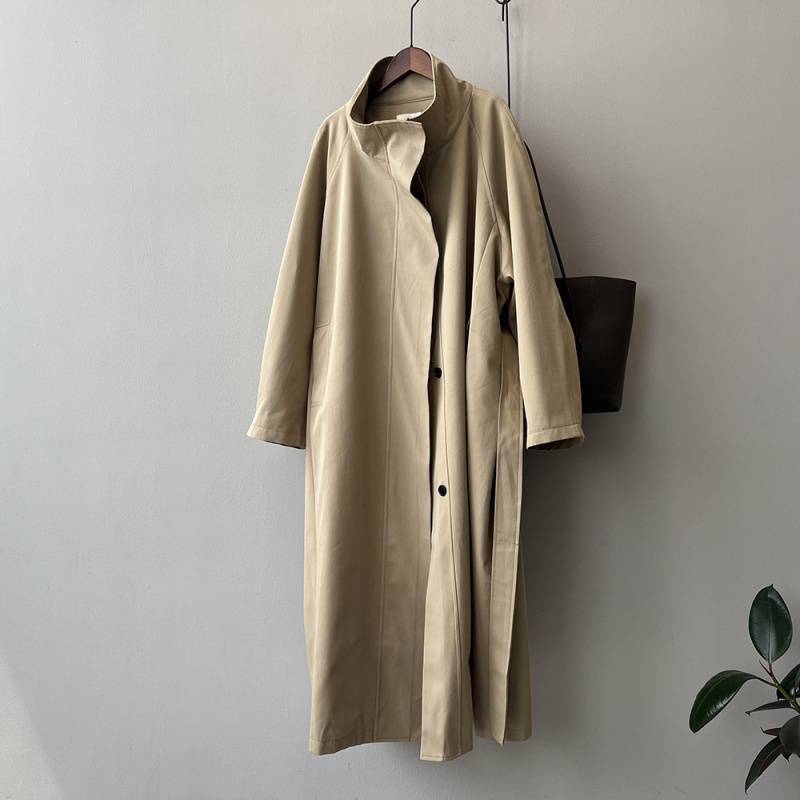 중간 길이의 코트 코트 여자 봄 새 도착 2025 칼라 한국식 고급 느슨한 우아한 영국 코트스토어 가기