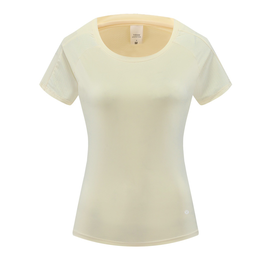 룰루 2025 여름 새로운 빠른 건조 스포츠 티셔츠 여성용 반팔 라운드 넥 요가 의류 슬림 핏 러닝 피트니스 의류