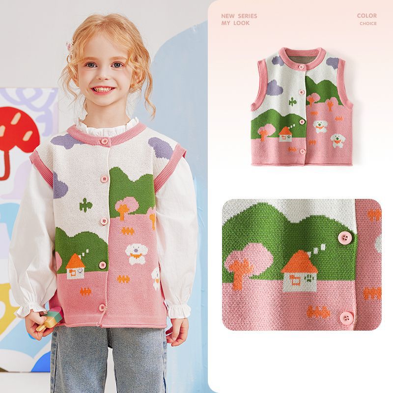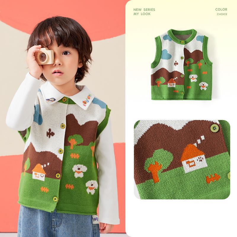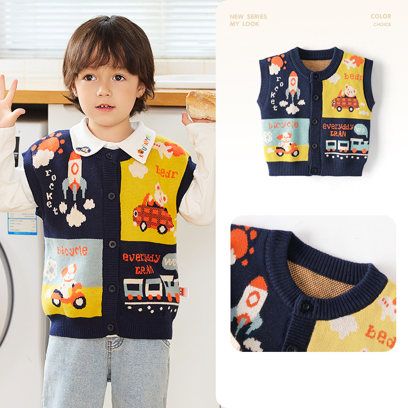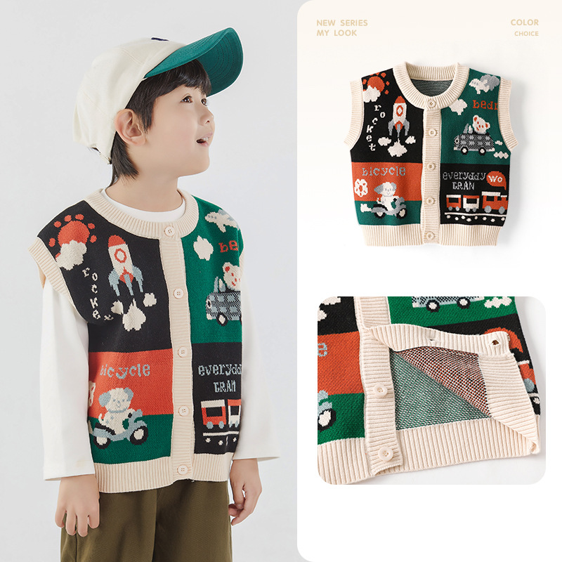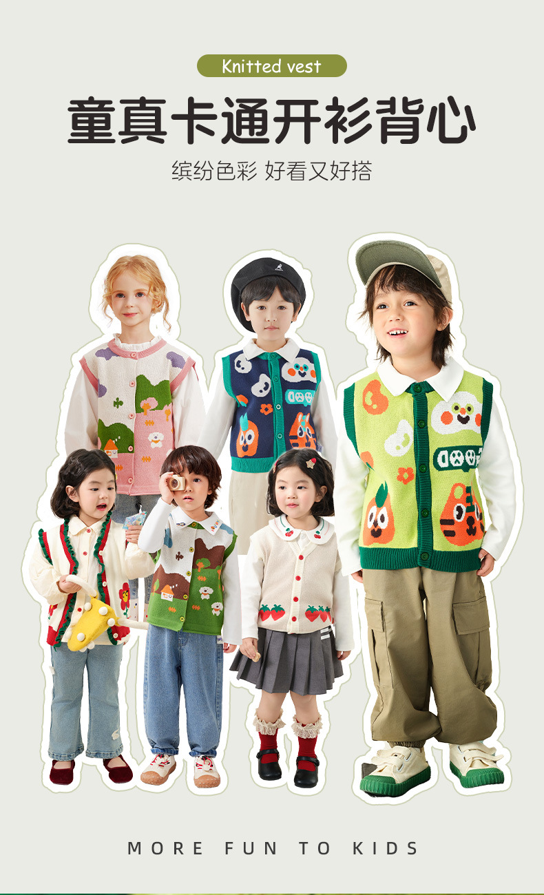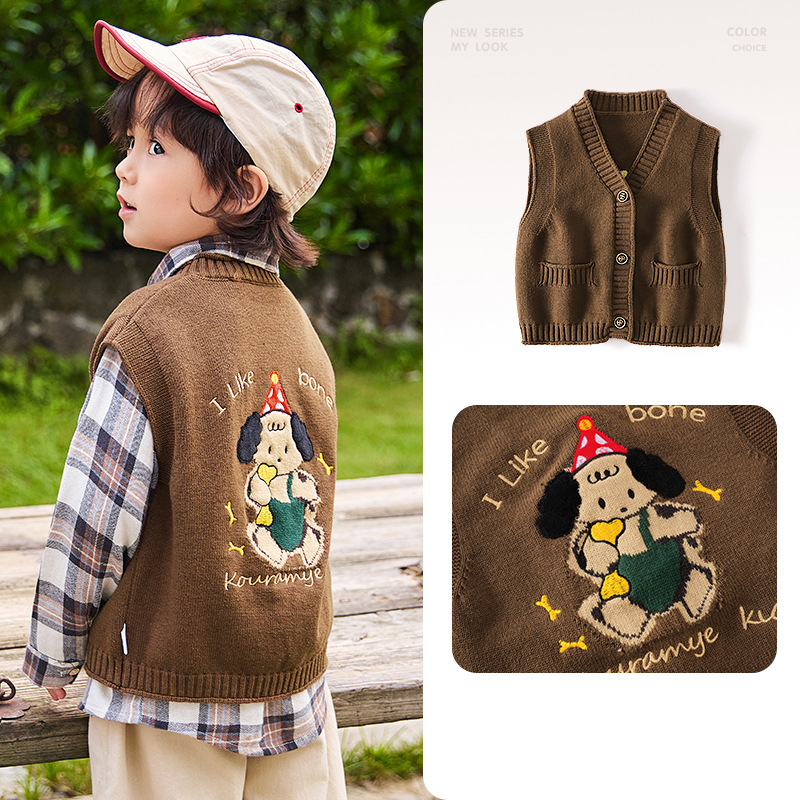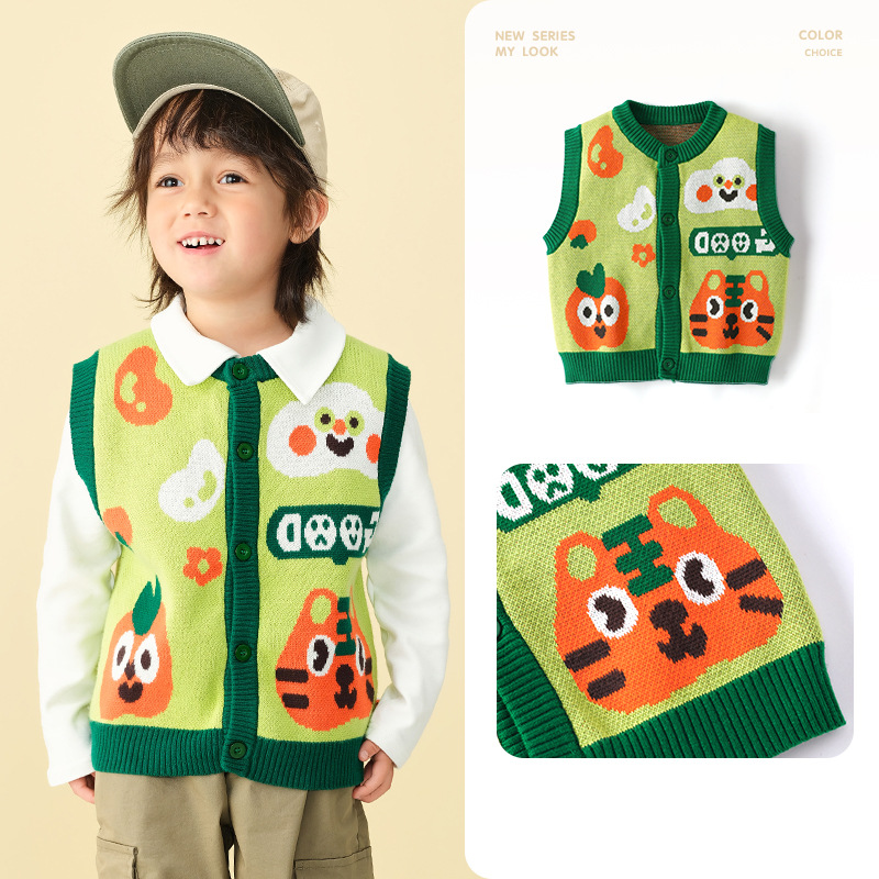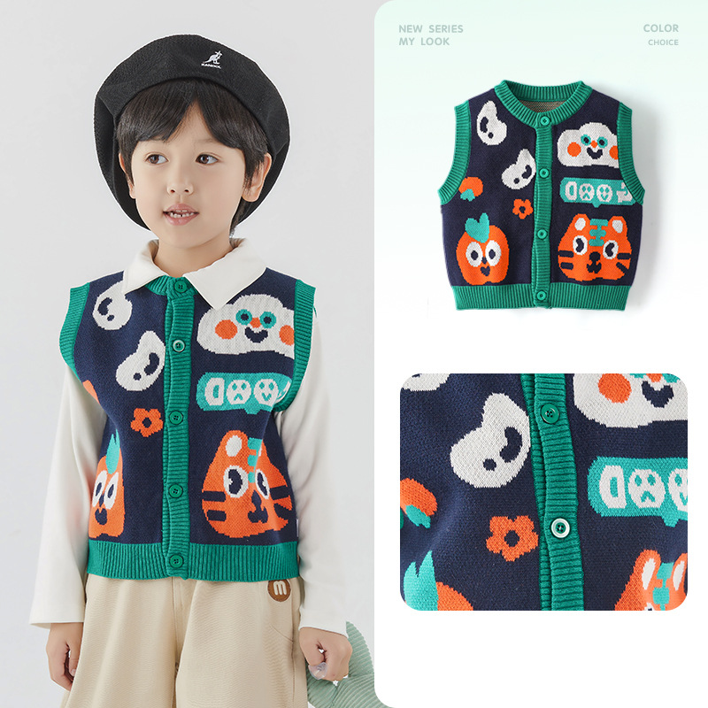 Coolwami 소년 조끼 니트 카디건 한국어 버전 만화 카테고리 a 스웨터 봄 소녀 민소매 라운드 넥 조끼스토어 가기