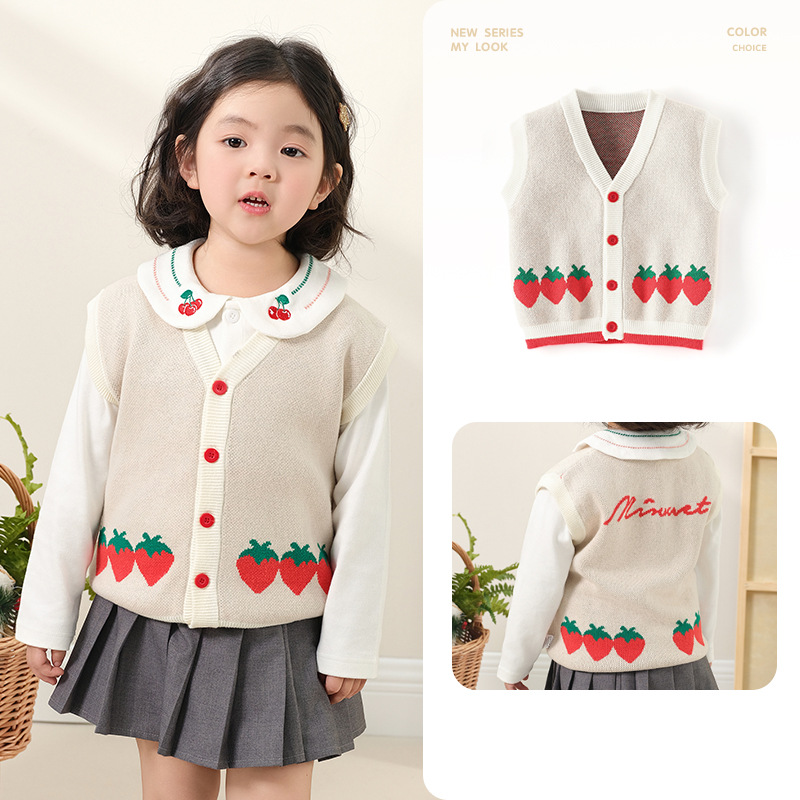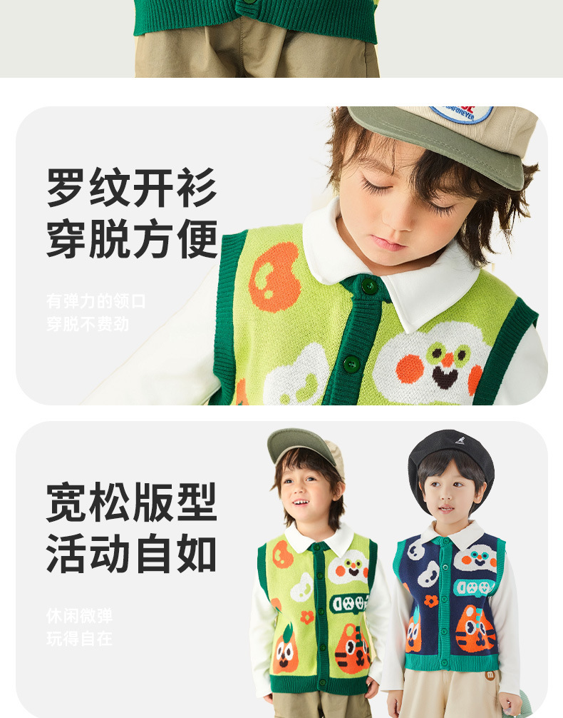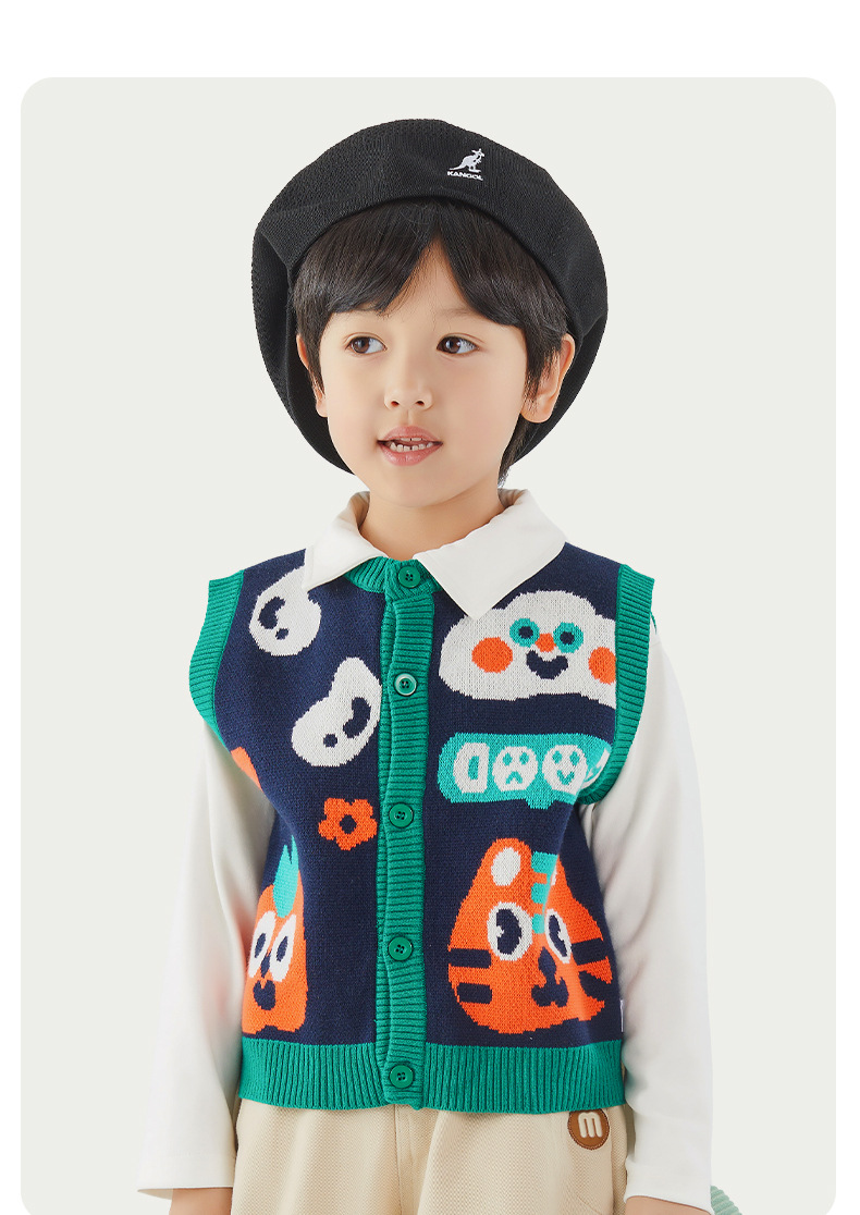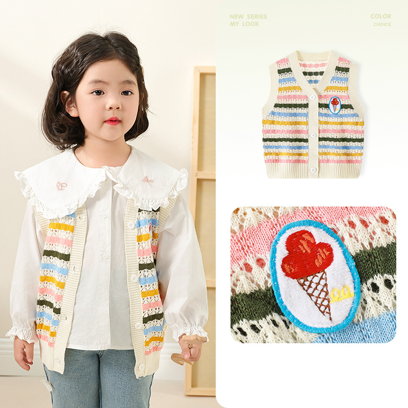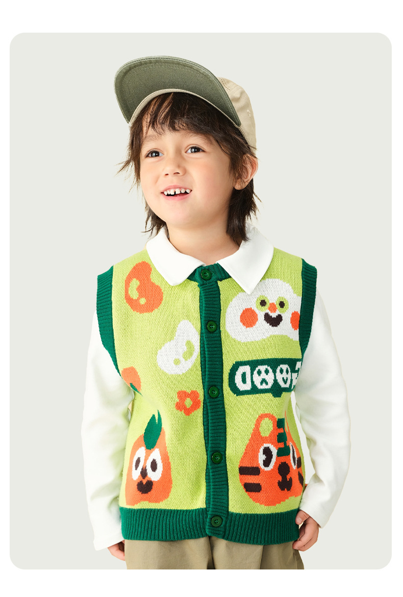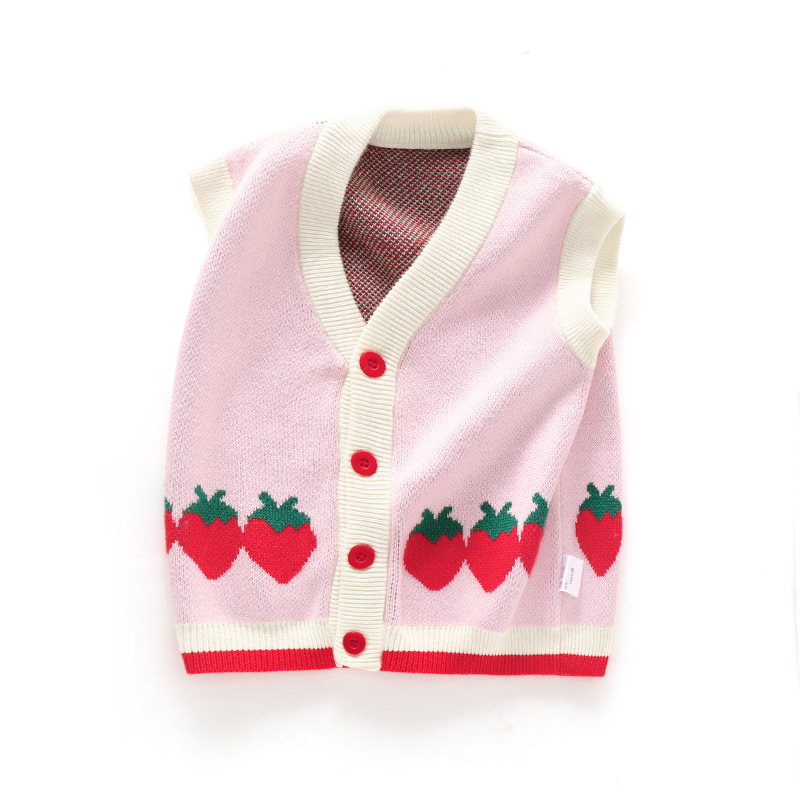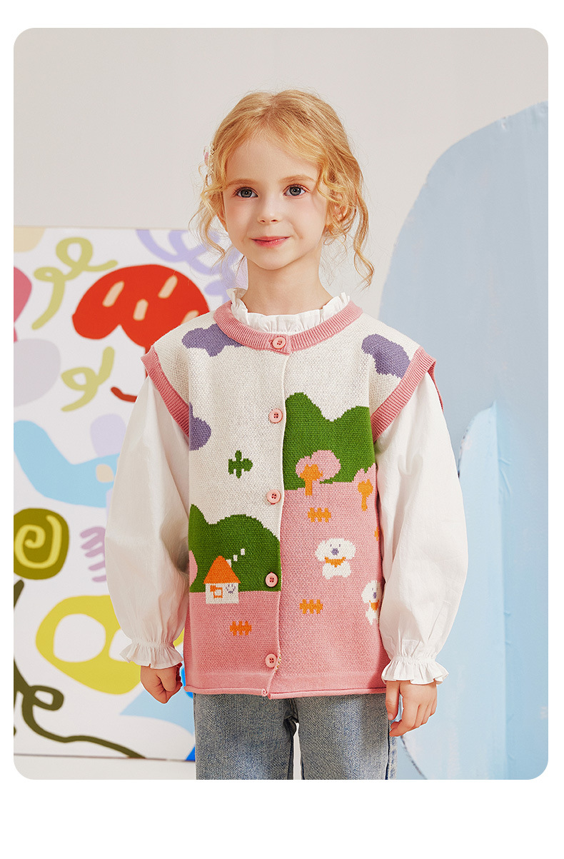 Coolwami 소년 조끼 니트 카디건 한국어 버전 만화 카테고리 a 스웨터 봄 소녀 민소매 라운드 넥 조끼스토어 가기
