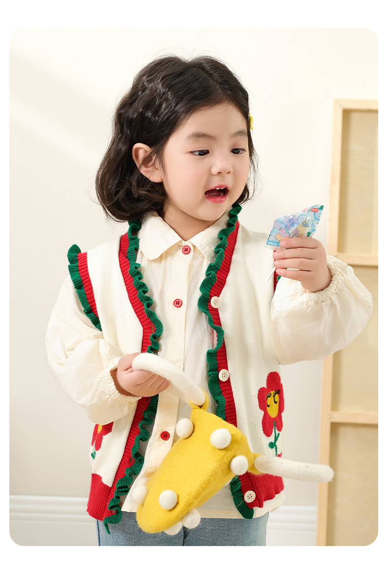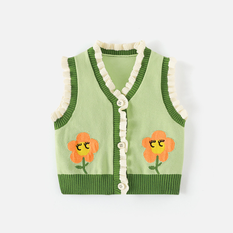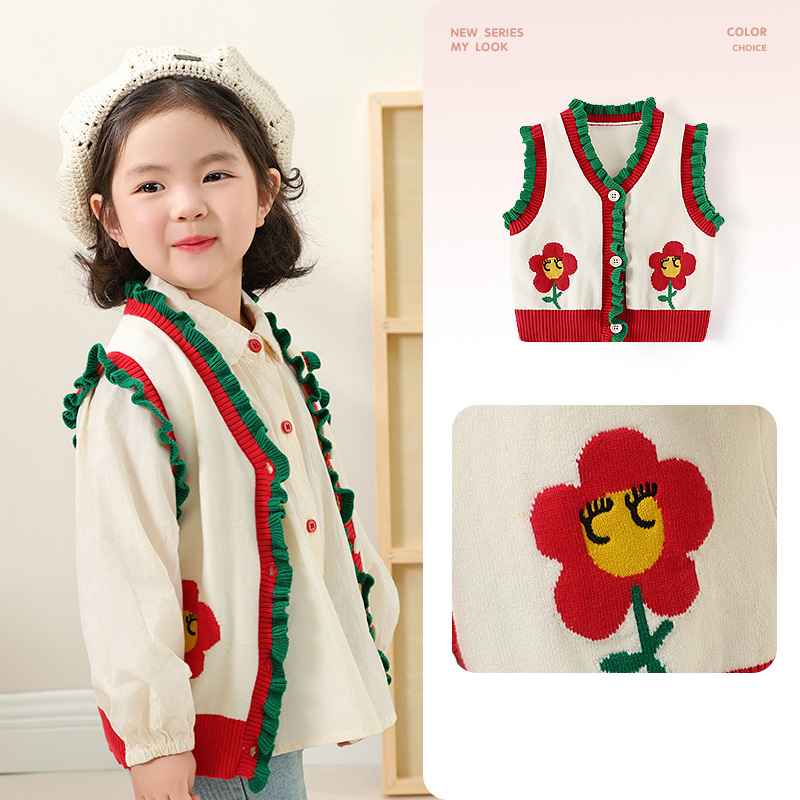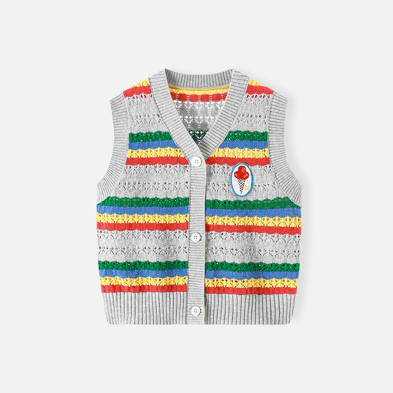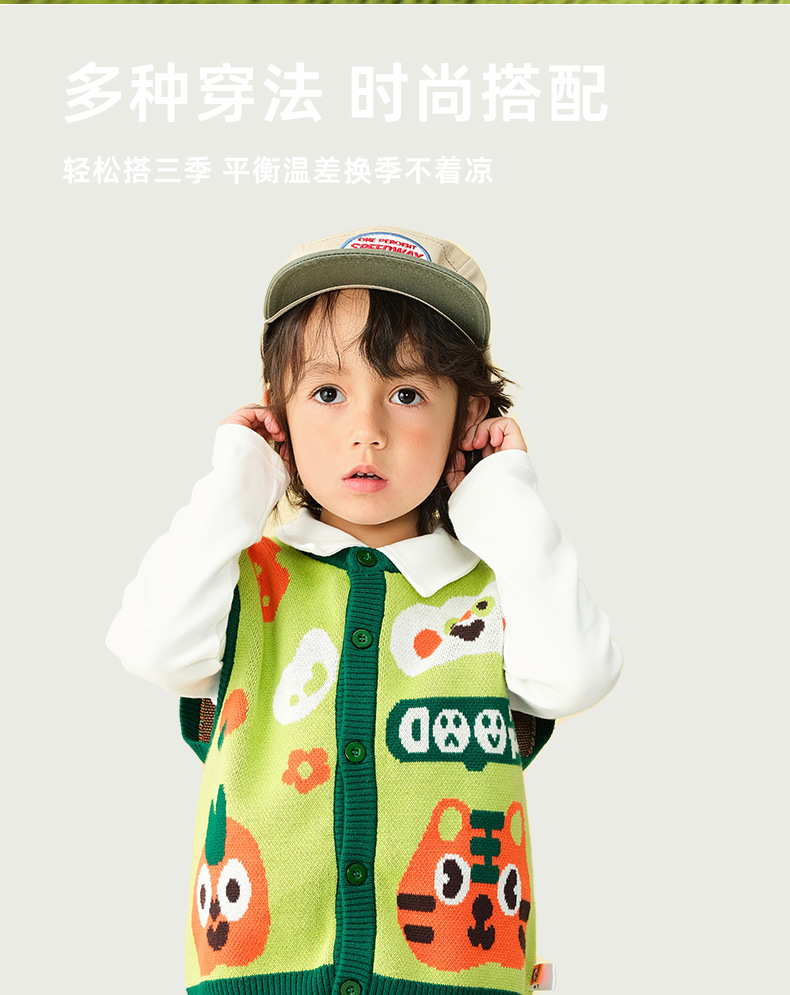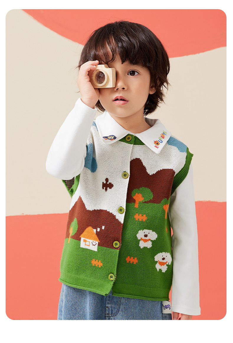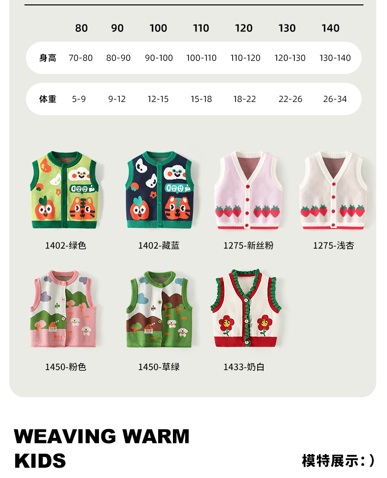 Coolwami 소년 조끼 니트 카디건 한국어 버전 만화 카테고리 a 스웨터 봄 소녀 민소매 라운드 넥 조끼스토어 가기