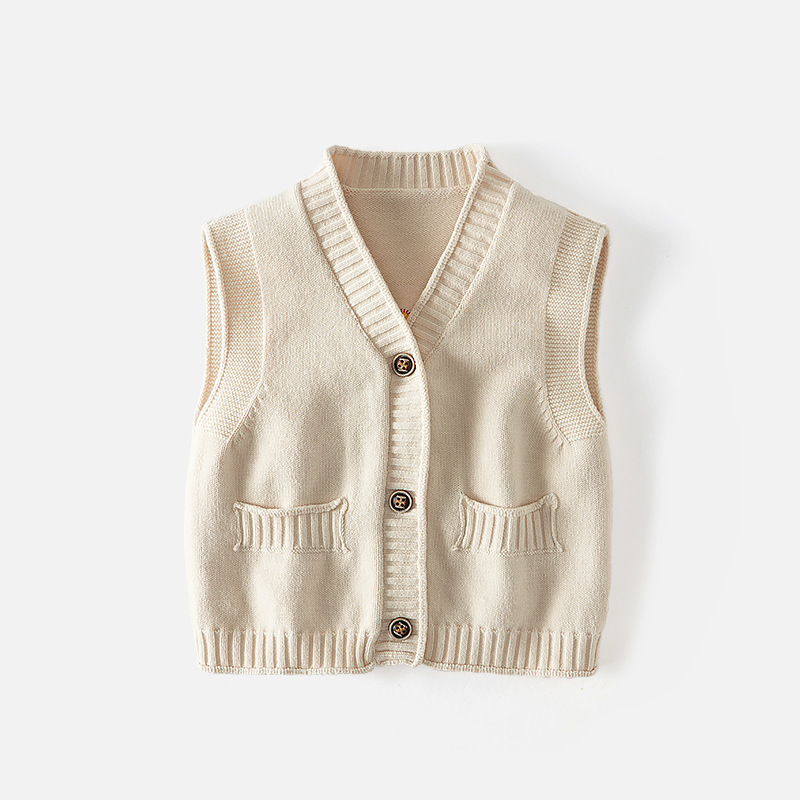 Coolwami 소년 조끼 니트 카디건 한국어 버전 만화 카테고리 a 스웨터 봄 소녀 민소매 라운드 넥 조끼