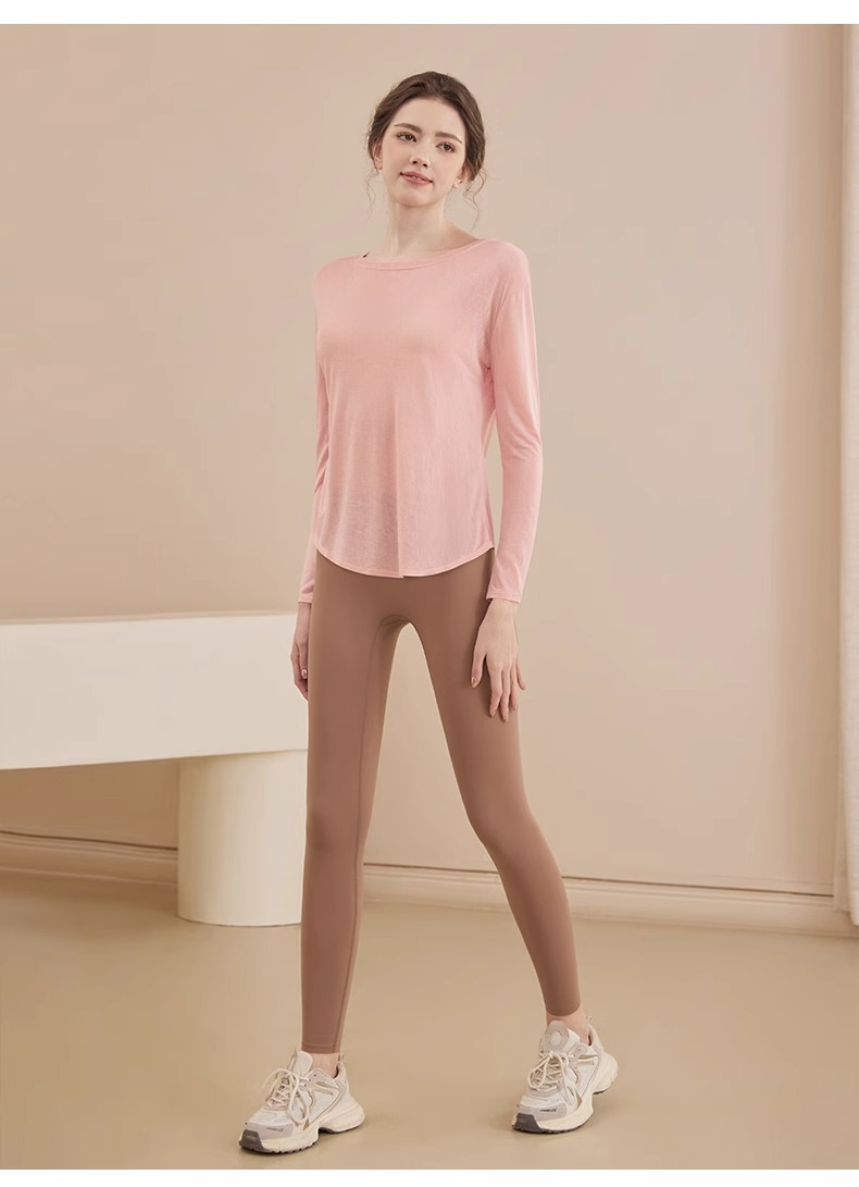 봄과 여름 어깨 요가 의류 여성 긴팔 2025 새로운 사이클링 필라테스 느슨한 피트니스 스포츠 블라우스 티셔츠스토어 가기