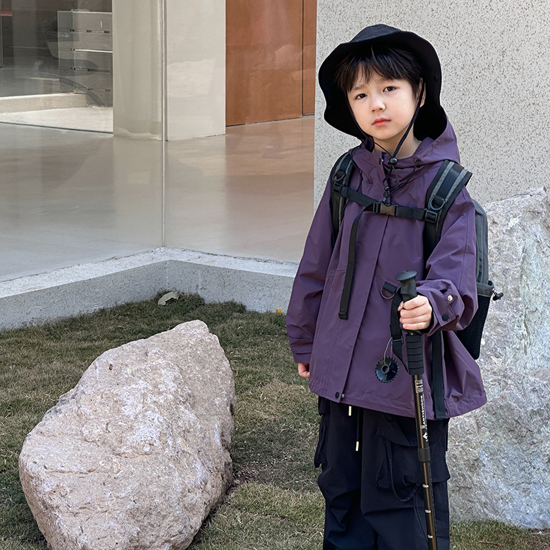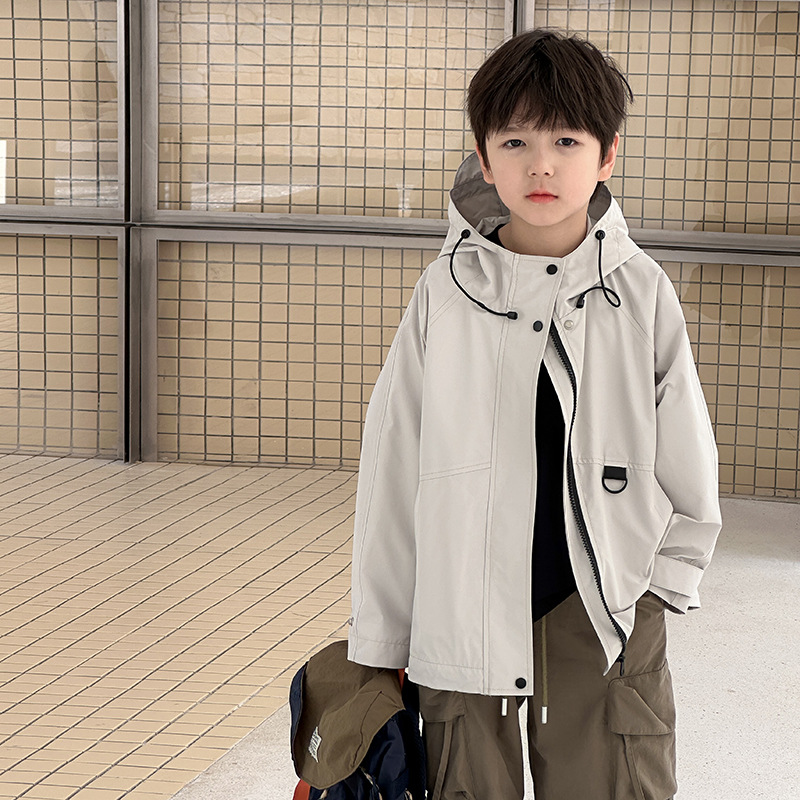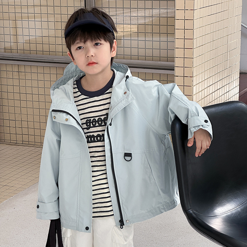 Elmo Beibei 2025 봄 어린이 야외 방수 후드 재킷 남성과 여성, 중대형 어린이를 위한 멋진 재킷