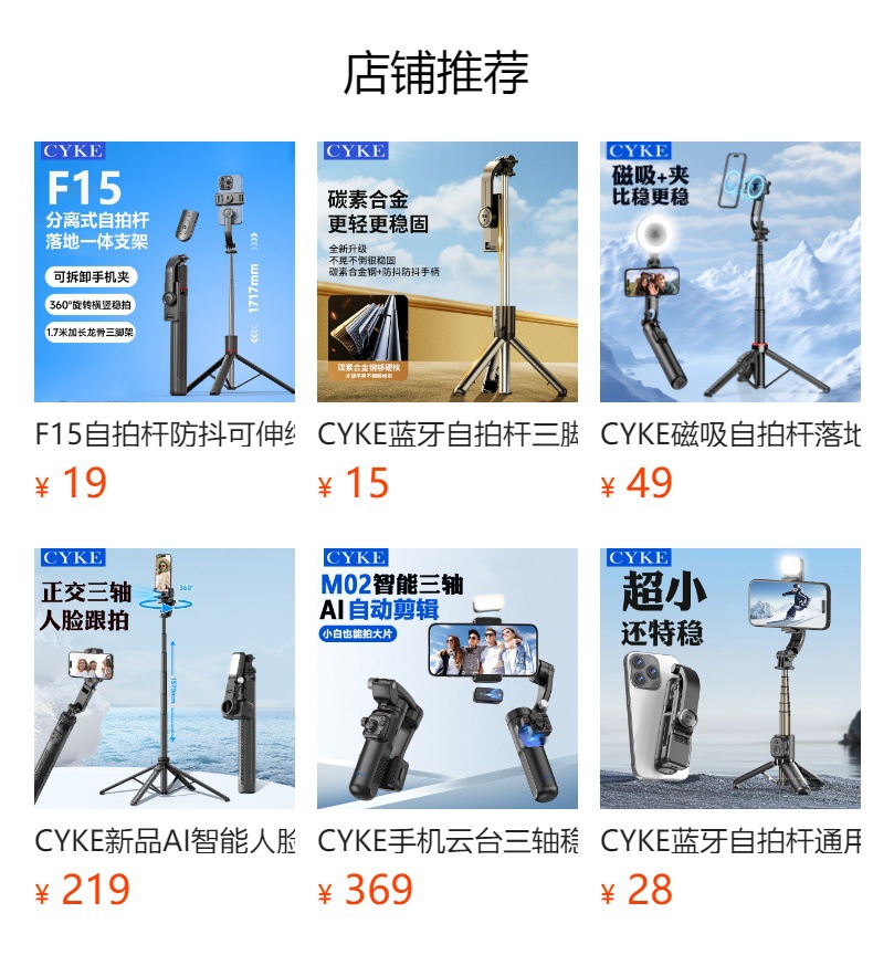 CYKE 라이브 스트리밍 휴대폰 거치대, 삼각대, 밸런스 핸드헬드 스태빌라이저, 흔들림 방지 셀카봉, 동남아시아 맞춤형스토어 가기