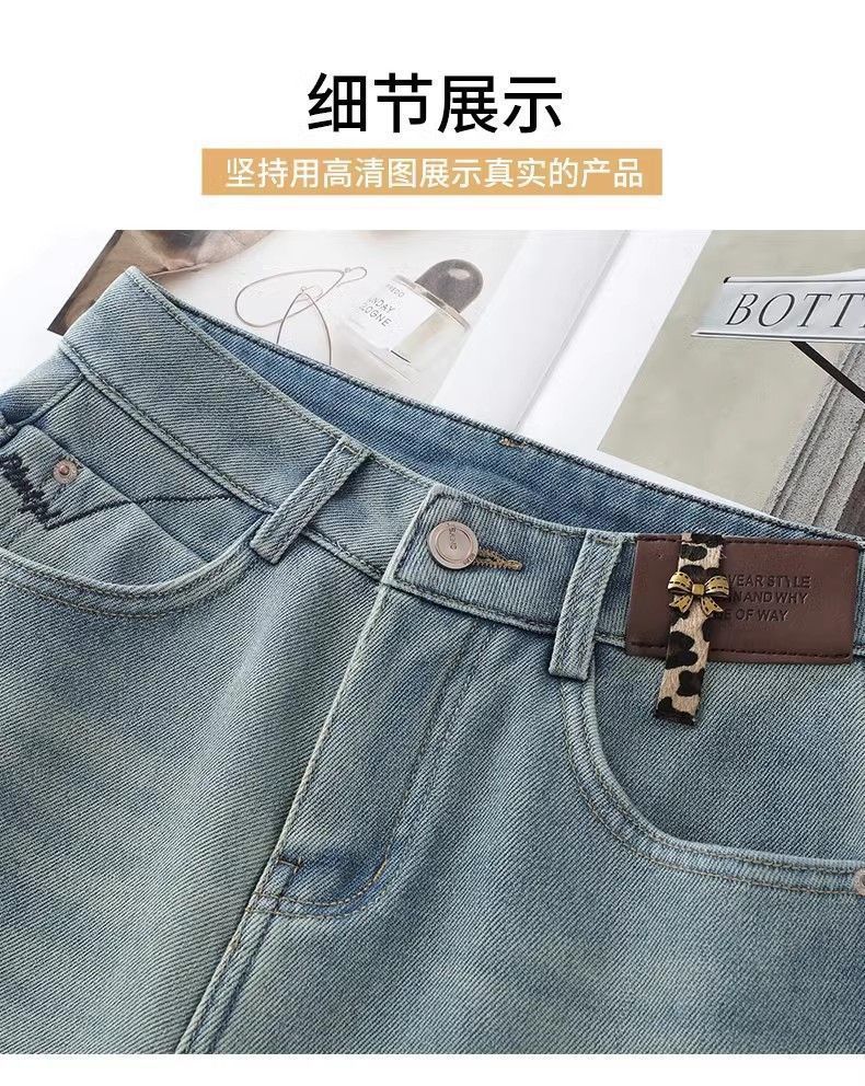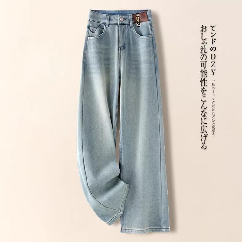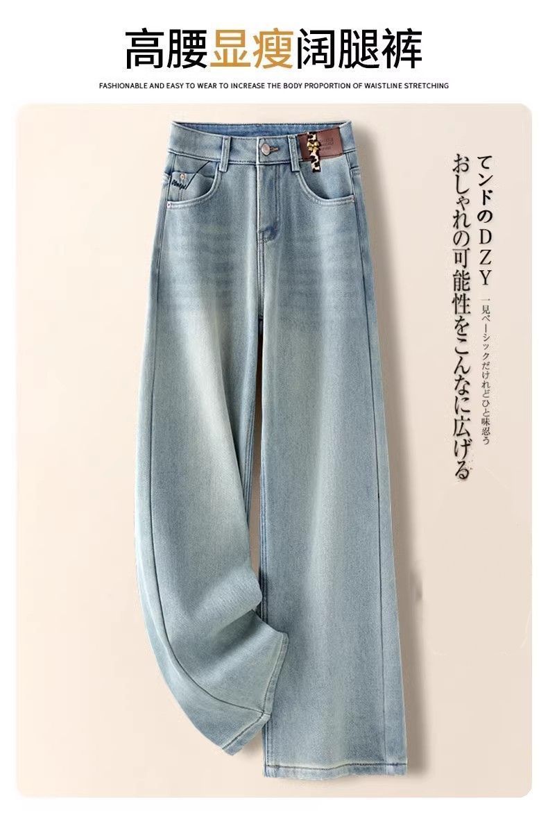 A6C 올해 인기있는 라이트 블루 넓은 다리 청바지 여성 2025 봄 새로운 높은 허리 복고풍 슬림 느슨한 스트레이트스토어 가기