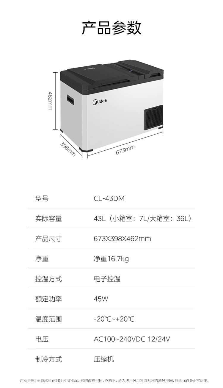 Midea 자동차 냉장고 새로운 자동차 홈 이중 사용 12V 24v 냉동 냉동고 대형 트럭 야외 소형 CL-43DM