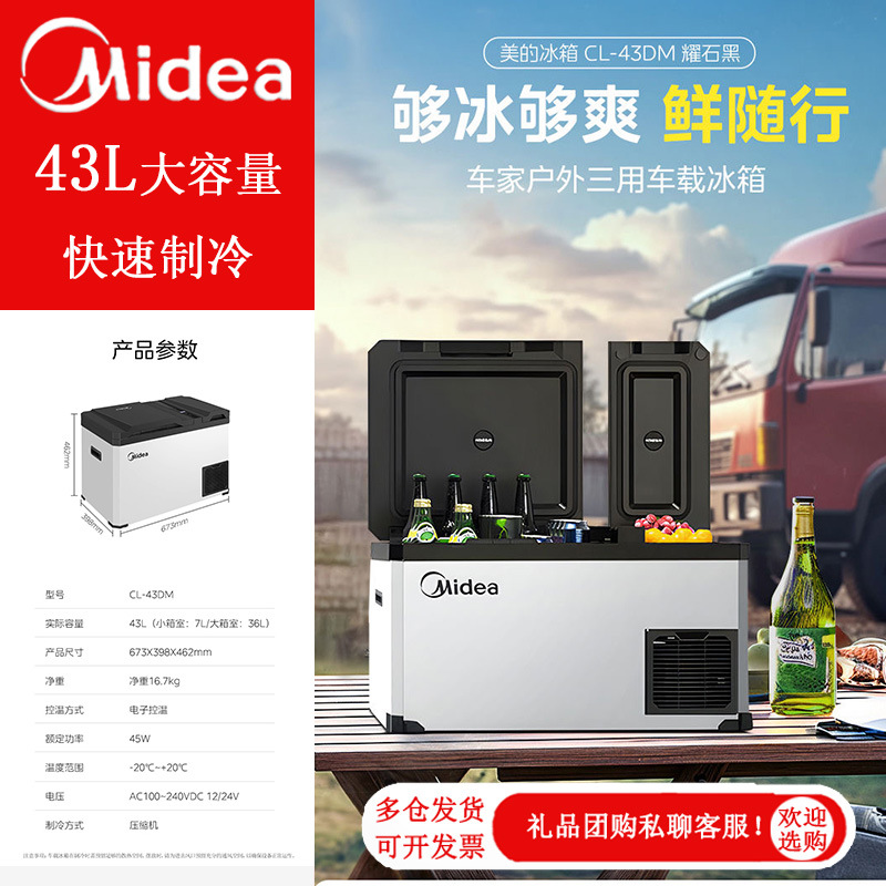 Midea 자동차 냉장고 새로운 자동차 홈 이중 사용 12V 24v 냉동 냉동고 대형 트럭 야외 소형 CL-43DM스토어 가기