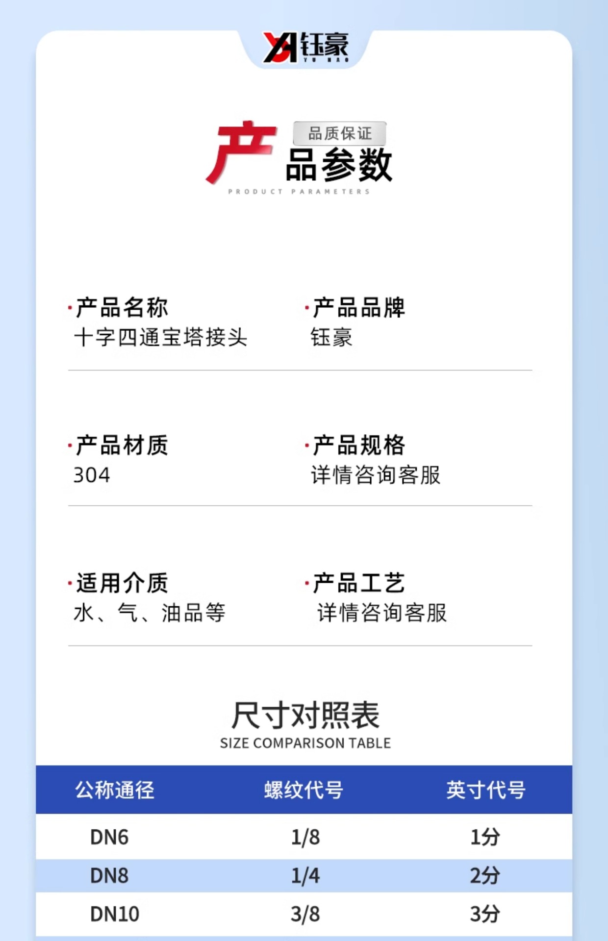 304 스테인레스 스틸 크로스 타입 4 방향 탑 커넥터 워터 파이프 가죽 파이프 호스 에어 파이프 파고다 헤드 4 포인트 6 포인트 1 인치스토어 가기