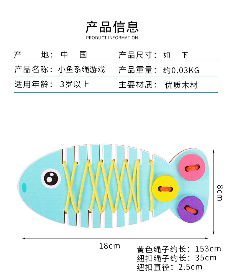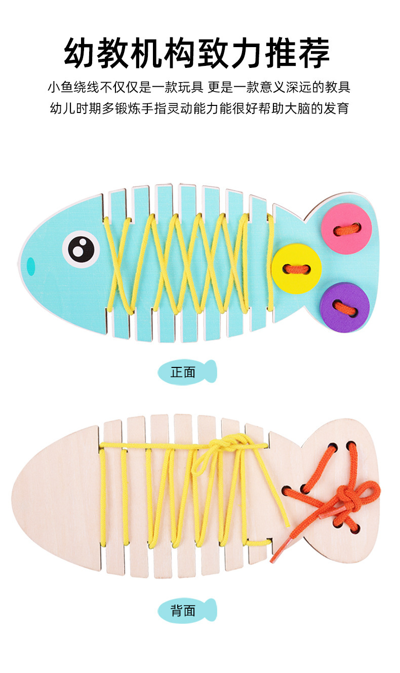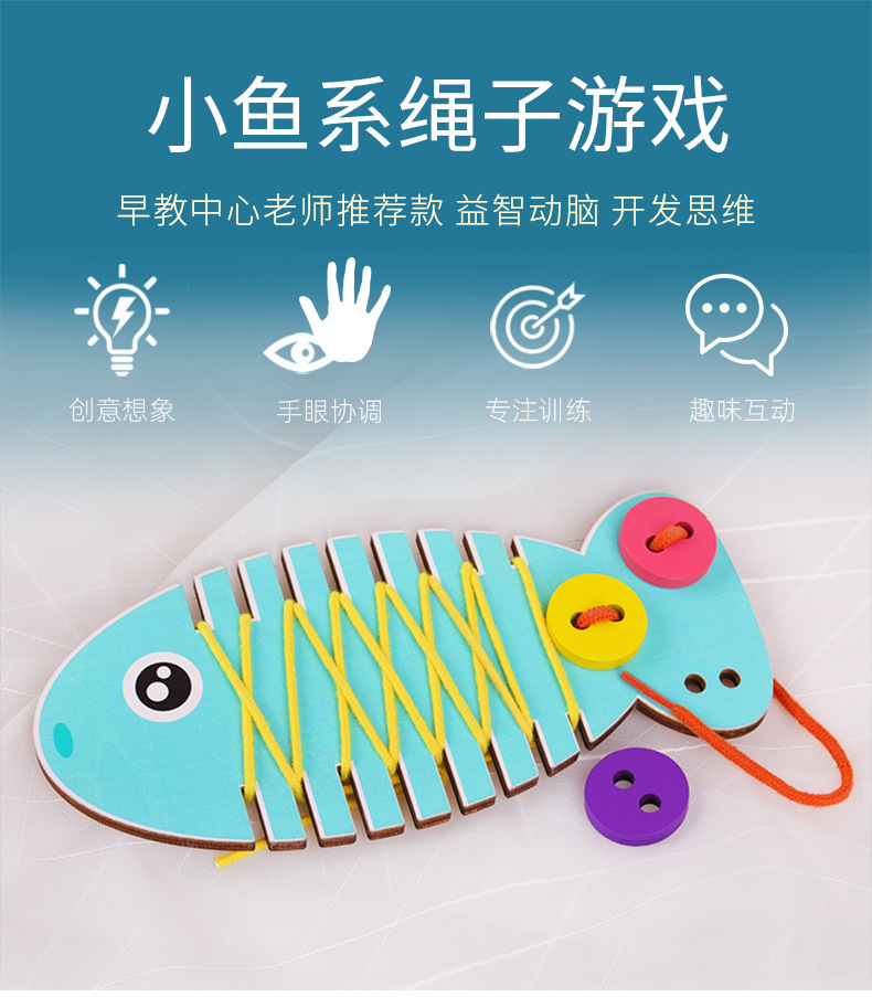 유치원 나무 머리띠 연습 손 눈 조정 및 느낌 교육 교육 보조 작은 물고기 밧줄을 착용 조기 교육 장난감스토어 가기