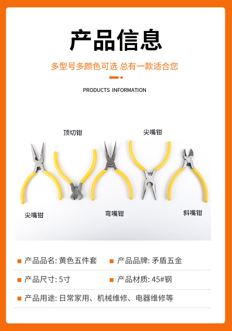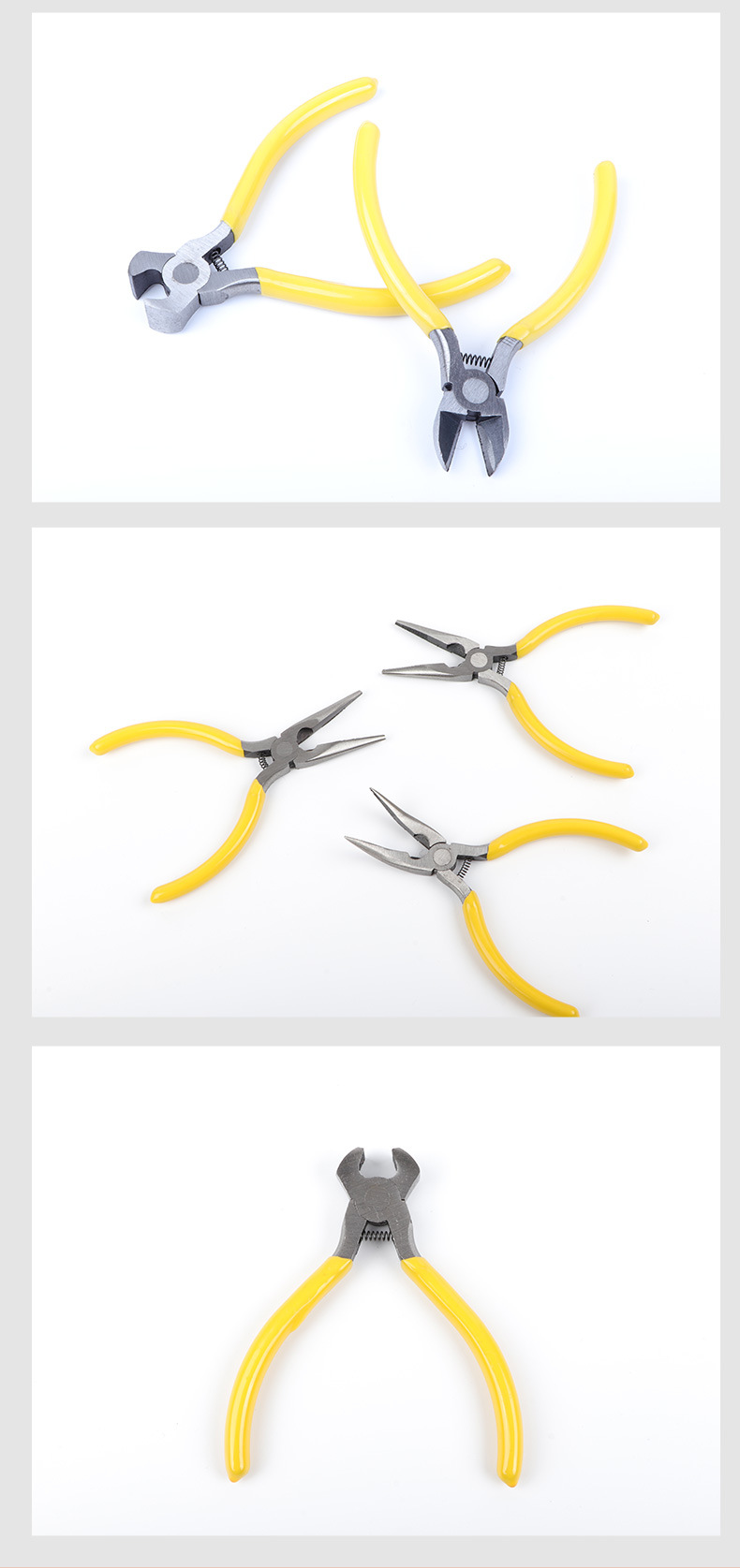 노란색 5 피스 수제 DIY 쥬얼리 뾰족한 코 펜치 탑 커팅 펜치 구부러진 코 펜치 대각선 펜치 노란색 미니 펜치