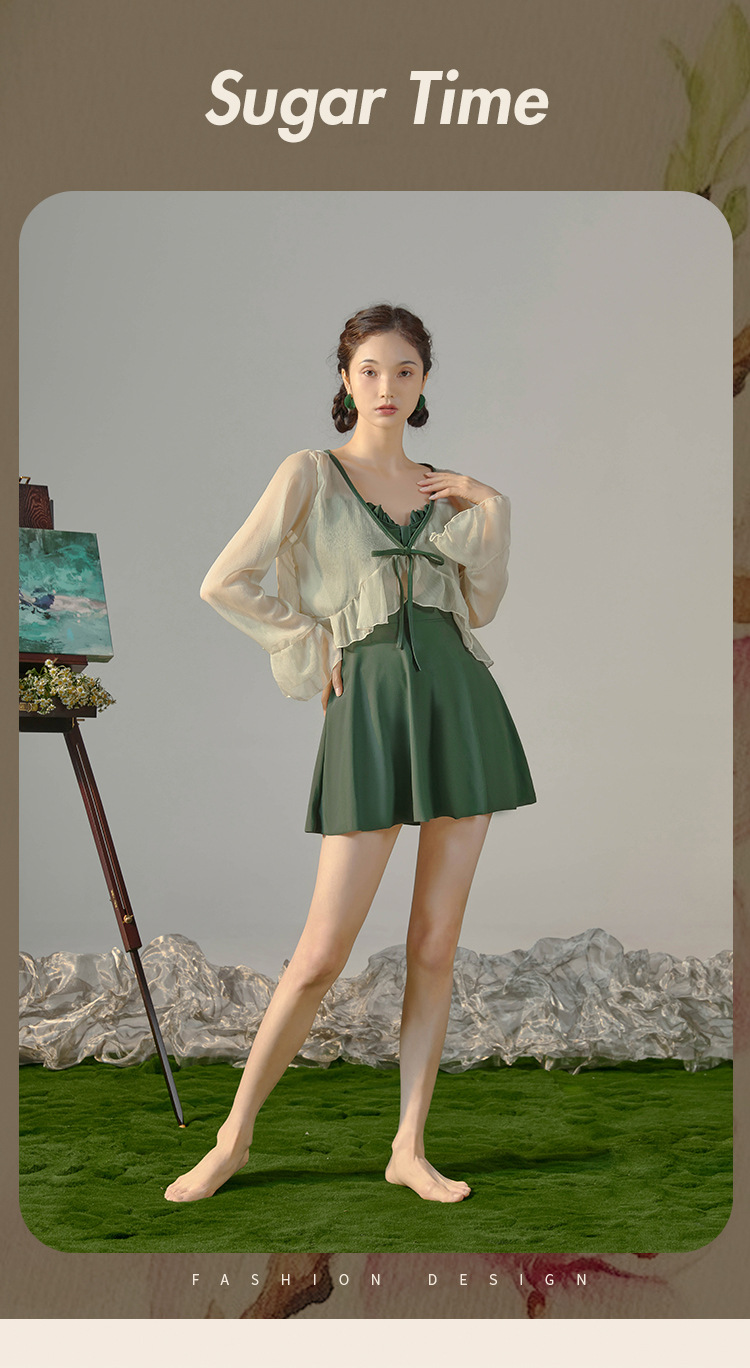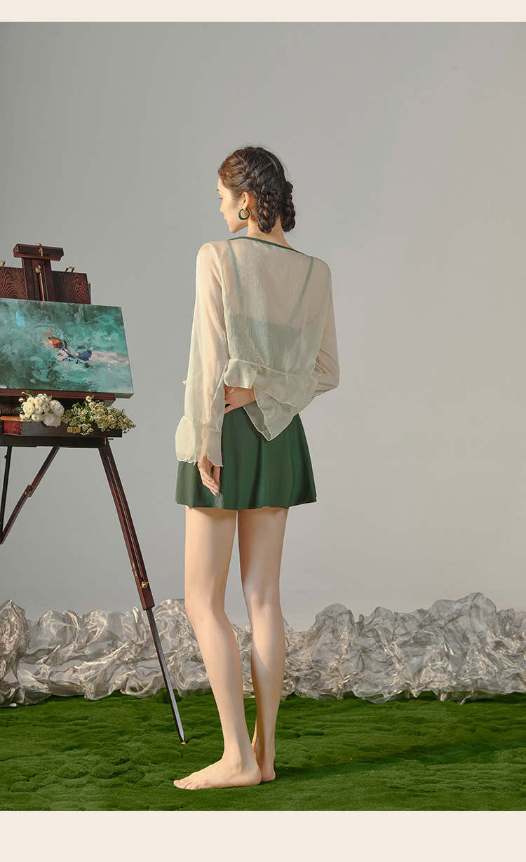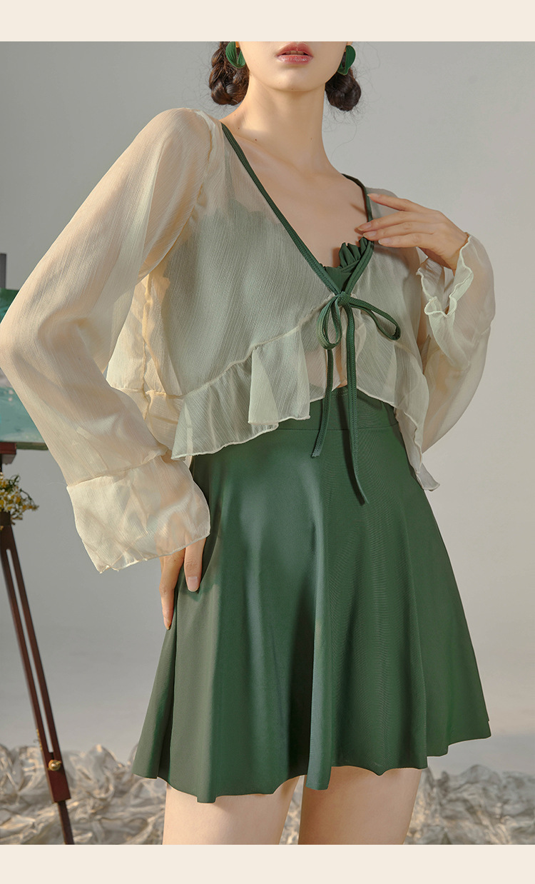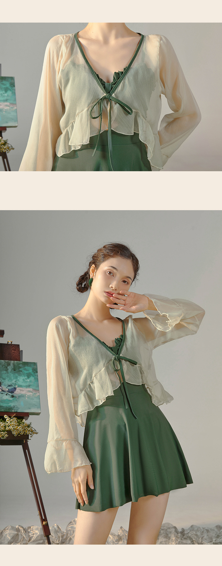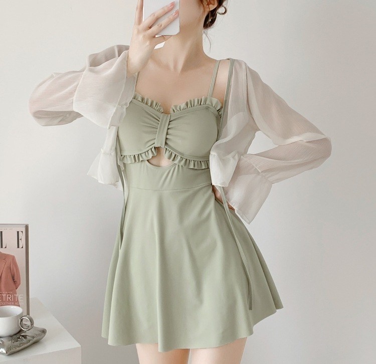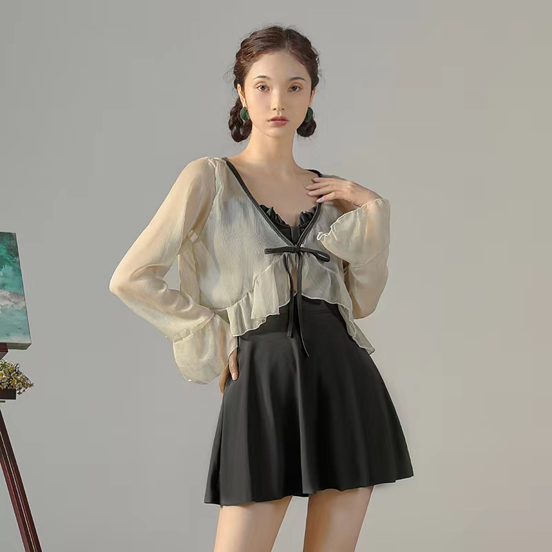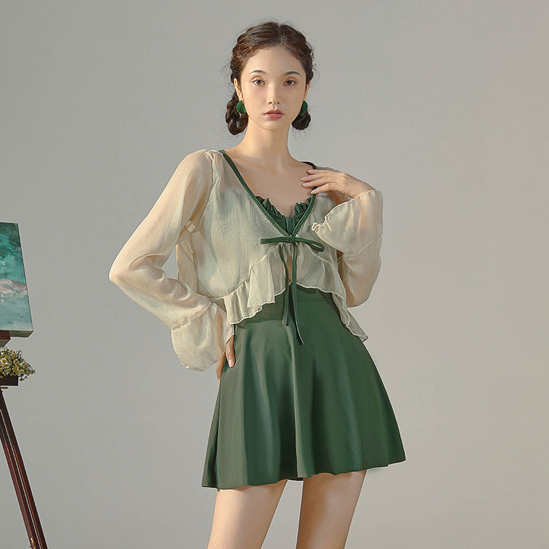 수영복 여성 2025 년 신형 긴팔 블라우스, 보수적 슬림 배꼽 플러스 사이즈 인터넷 인기 고급 온천스토어 가기