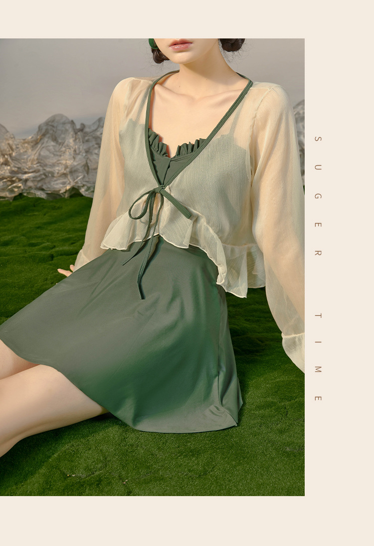 수영복 여성 2025 년 신형 긴팔 블라우스, 보수적 슬림 배꼽 플러스 사이즈 인터넷 인기 고급 온천