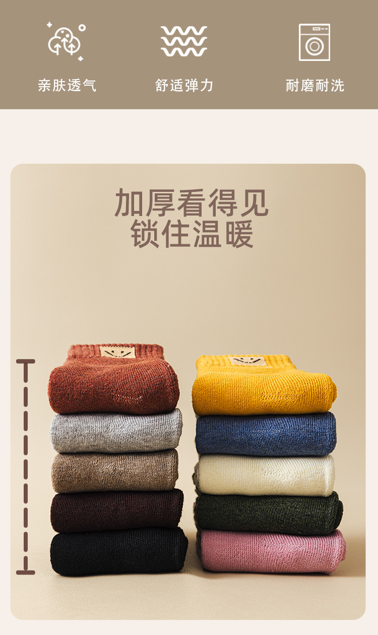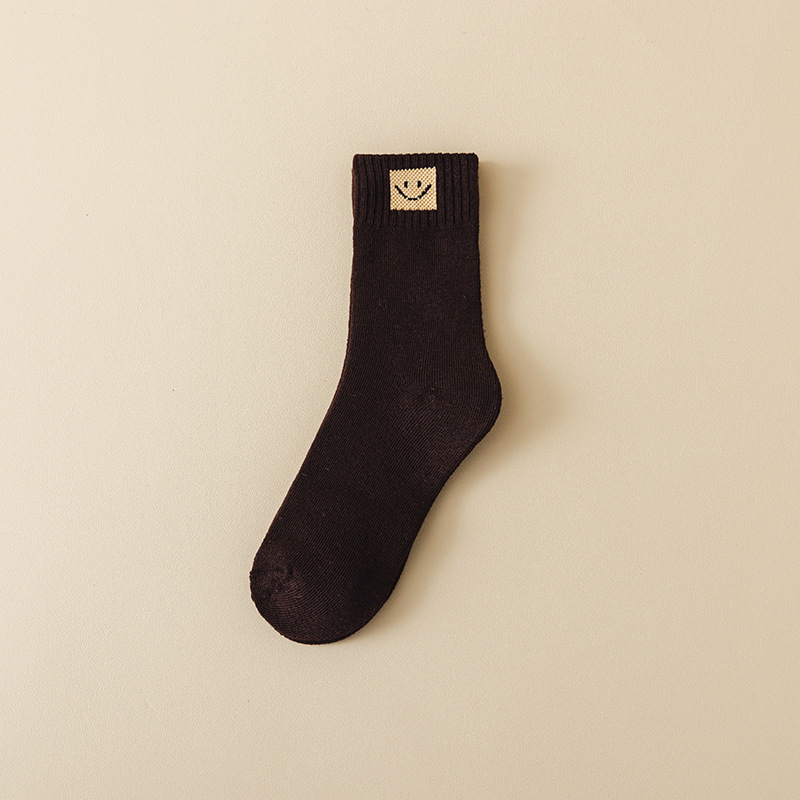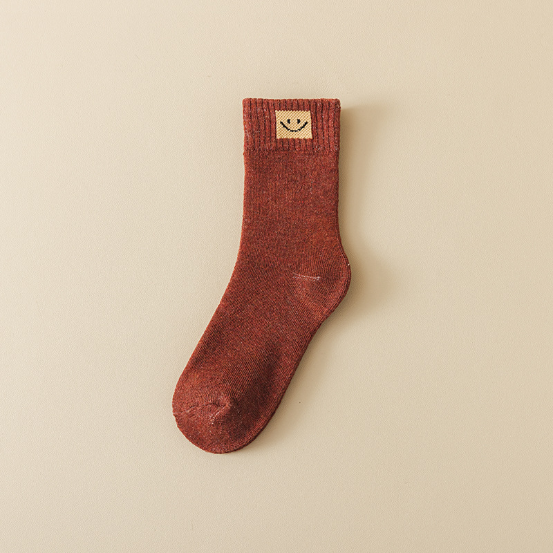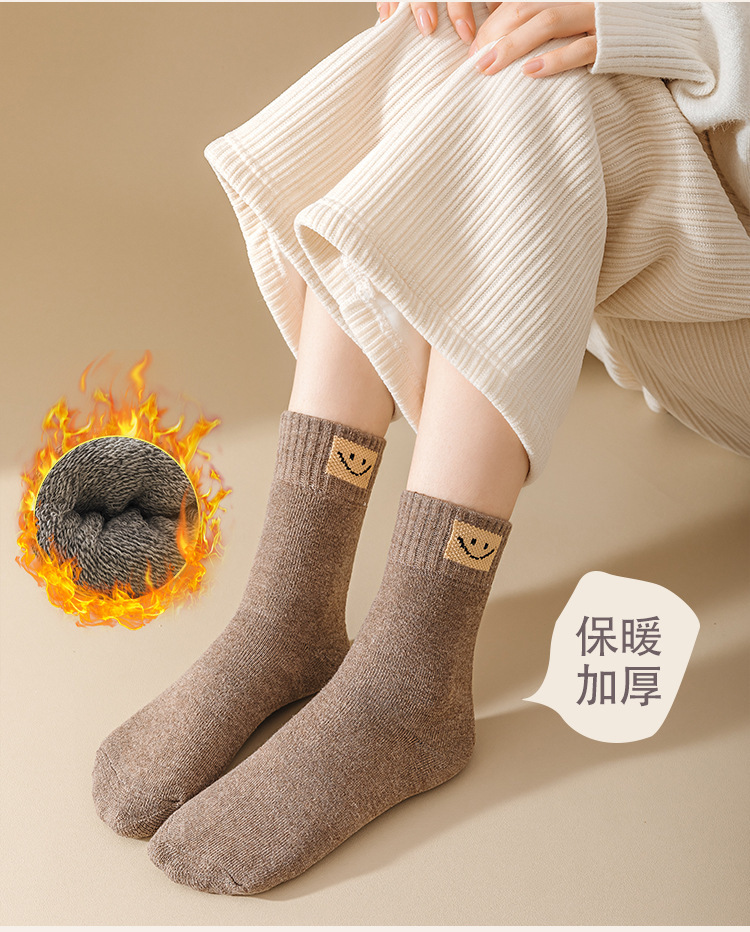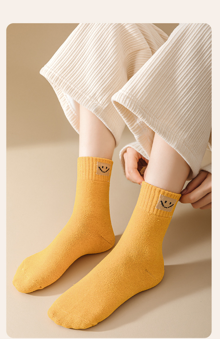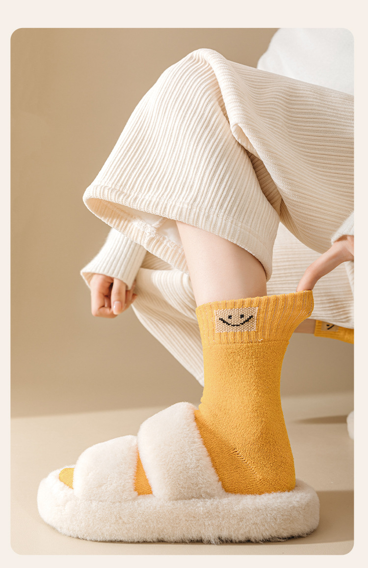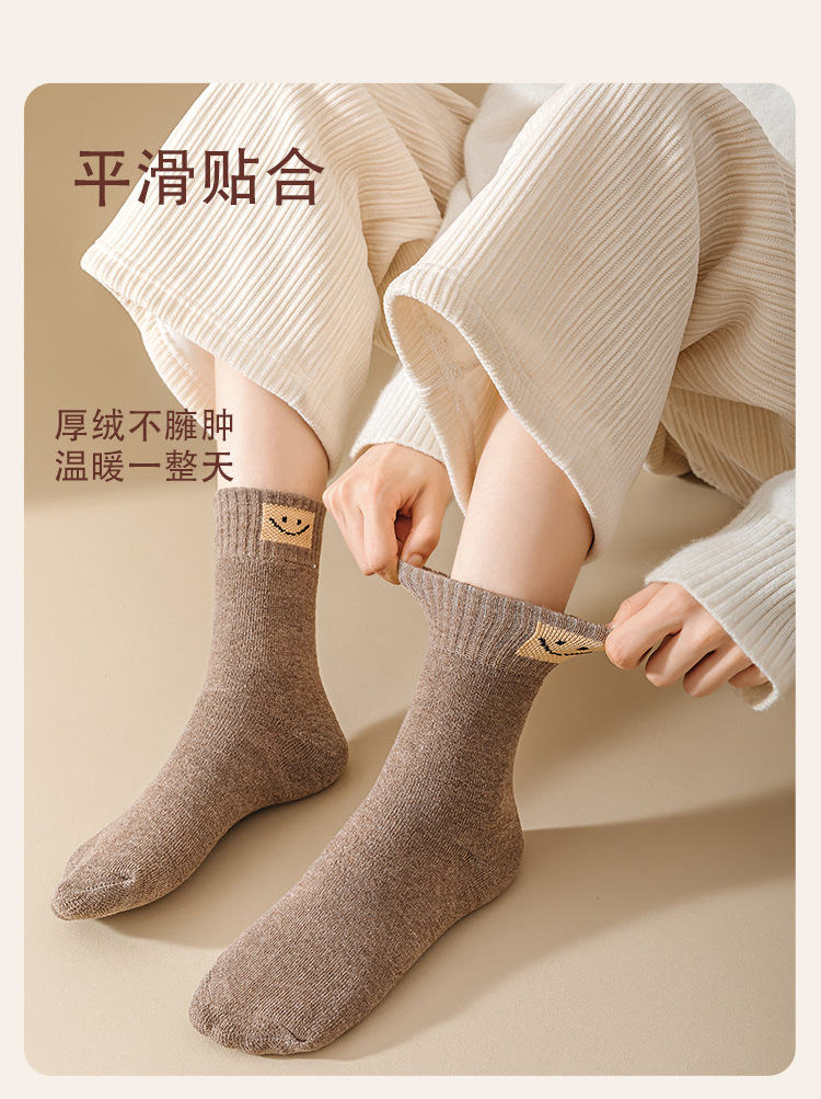 웃는 얼굴 세대 헤어 테리 양말 따뜻한 가을과 겨울 두꺼운 기모 간단한 튜브 단색 캐주얼 바닥스토어 가기