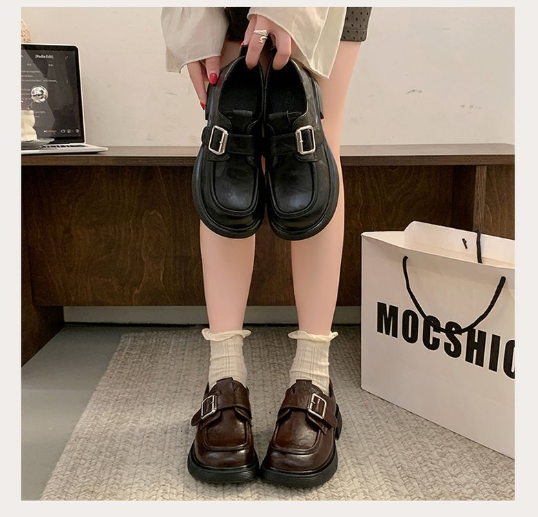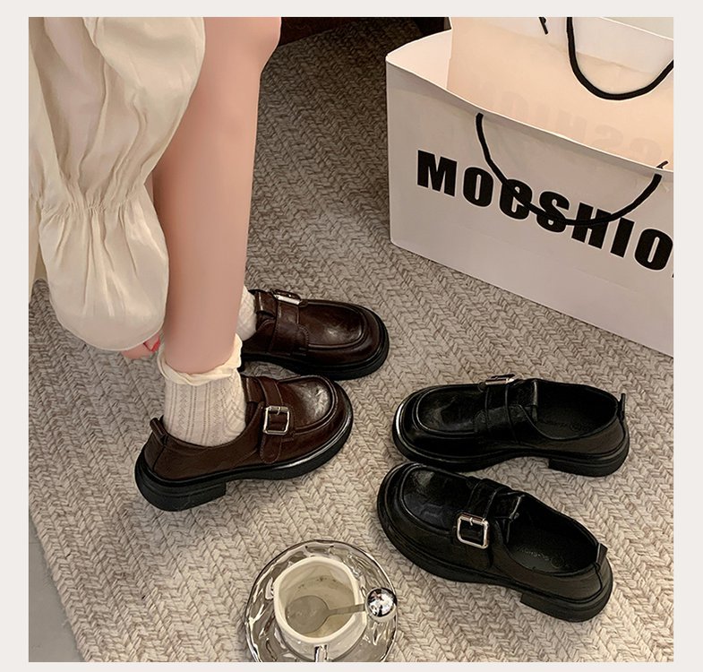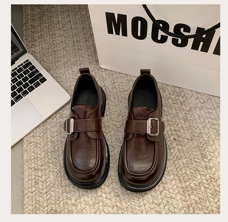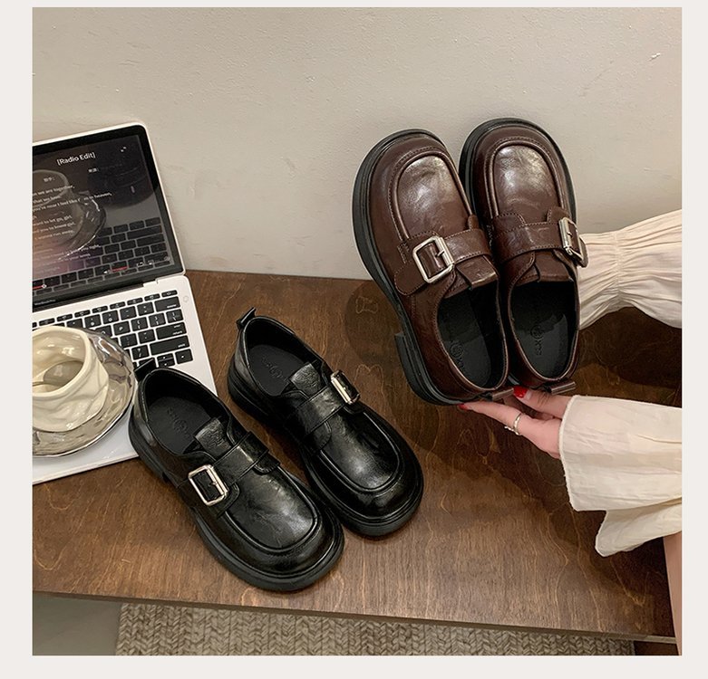 정품 가죽 일본 작은 가죽 신발 여성의 2025 봄 새로운 영국 스타일 통글 플랫 슈즈 두꺼운 힐 소프트 하단 로퍼스토어 가기