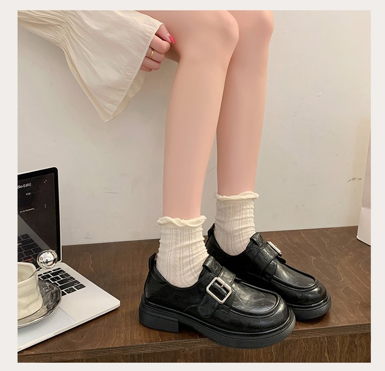 정품 가죽 일본 작은 가죽 신발 여성의 2025 봄 새로운 영국 스타일 통글 플랫 슈즈 두꺼운 힐 소프트 하단 로퍼