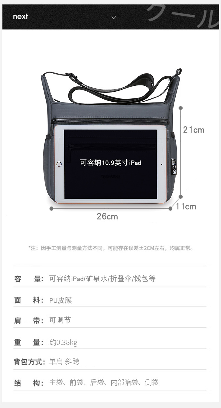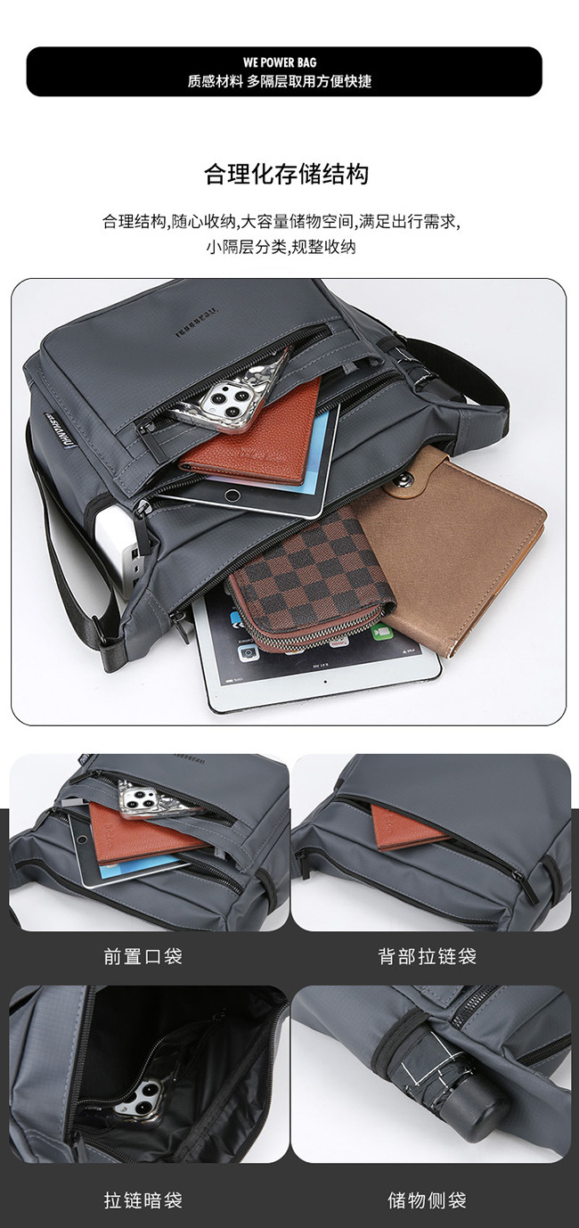 새로운 남성 어깨 가방 솔리드 컬러 캐주얼 내마모성 통기성 크로스 바디 백 간단한 다기능 통근 야외 배낭
