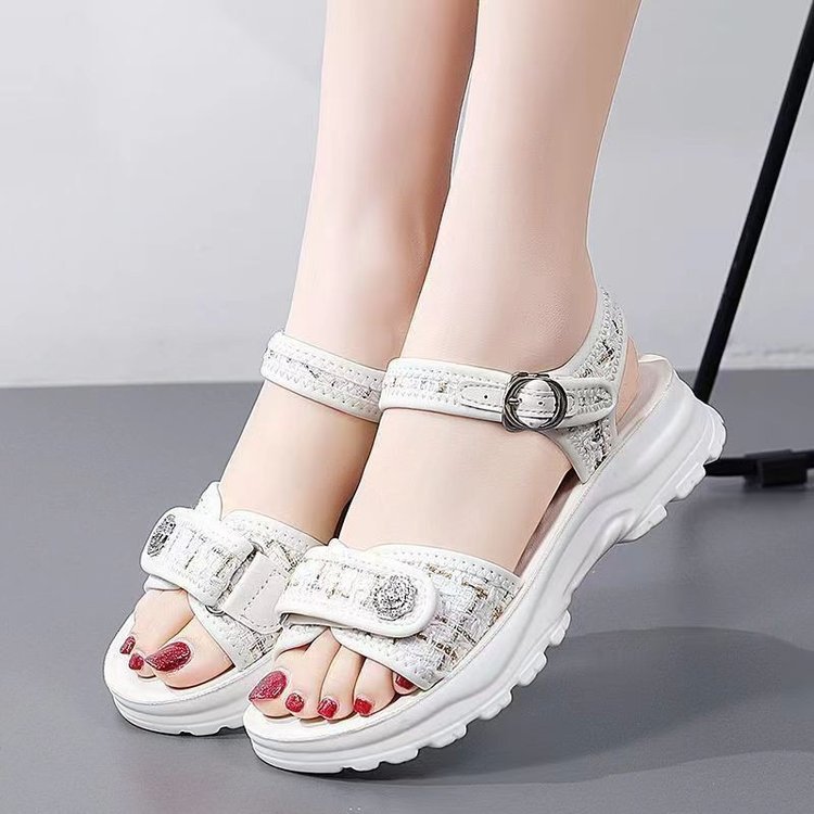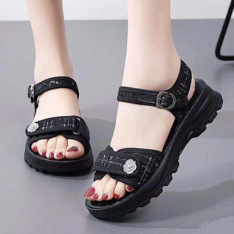 샤넬 스타일 스포츠 샌들 2025 여름 유행 아웃웨어 증가 비치 슈즈 플랫폼 오픈 발가락 플랫폼 샌들스토어 가기