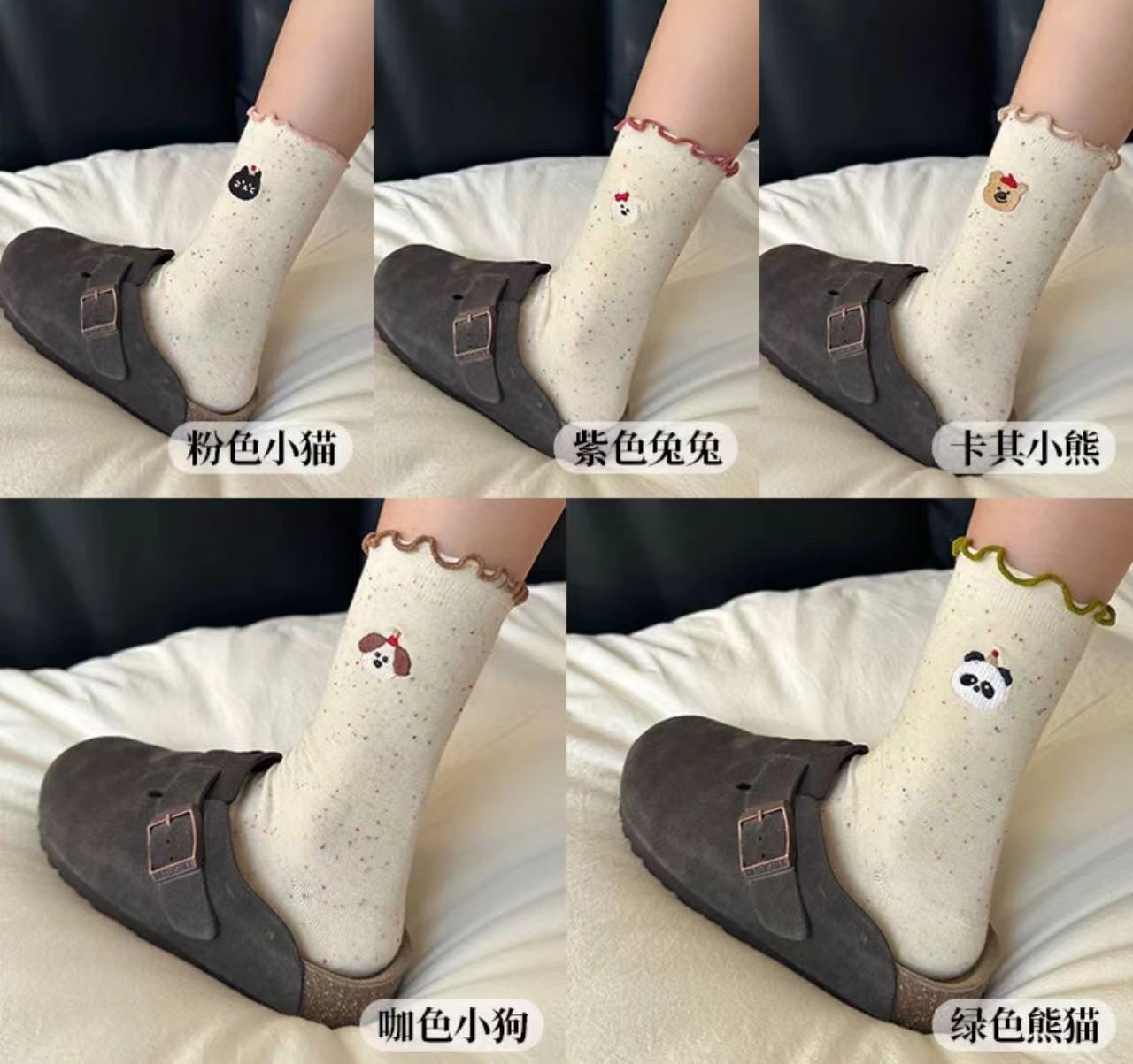 양말 여자의 중간 길이 양말 봄과 여름 얇은 곰팡이 레이스 긴 튜브 스택 양말 만화 곰 강아지 귀여운 학생 양말스토어 가기