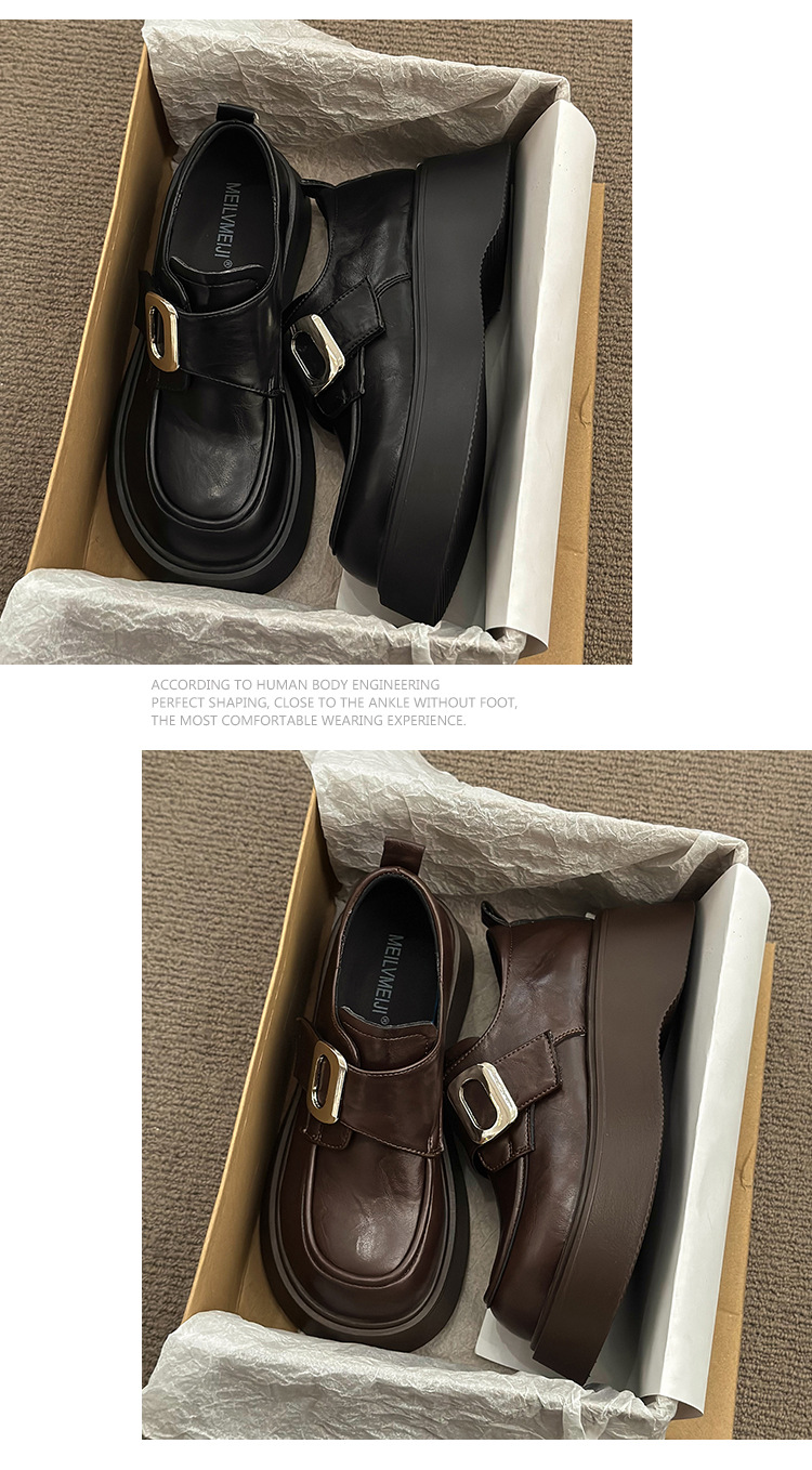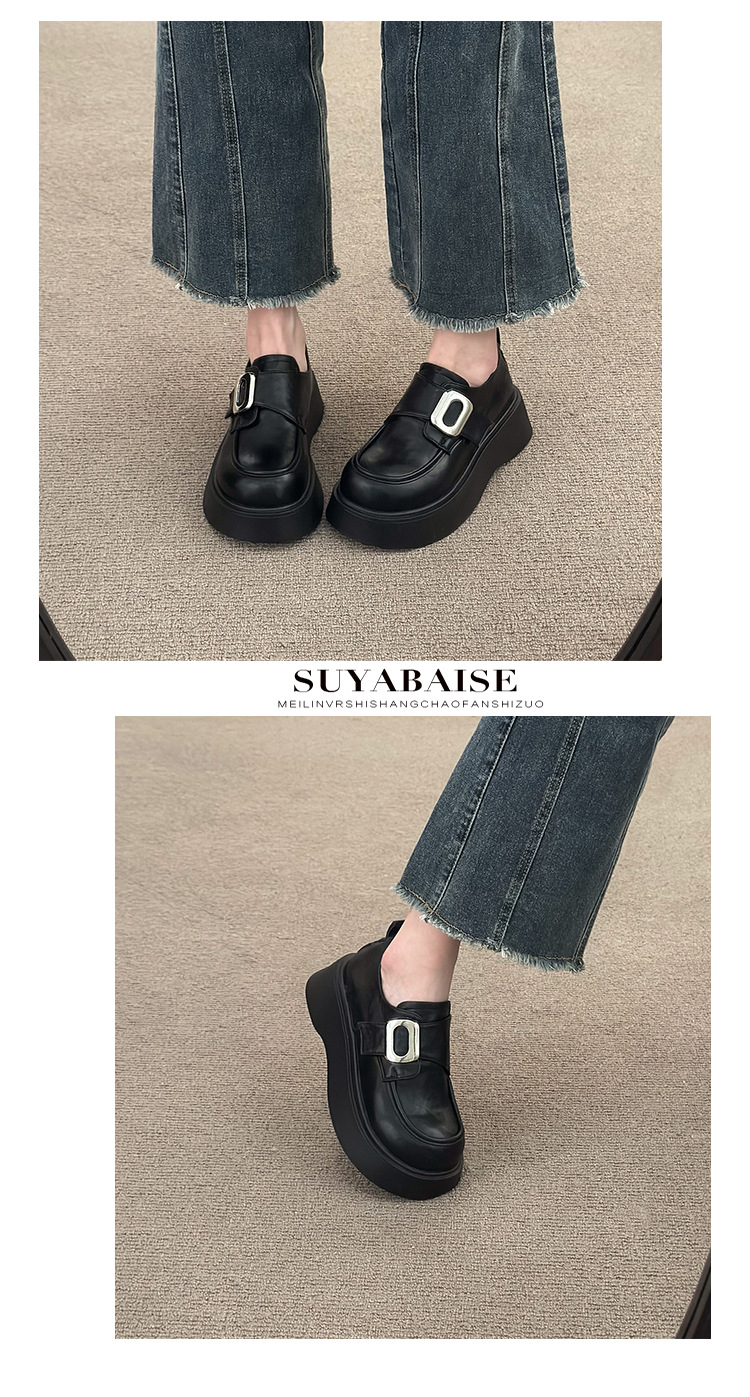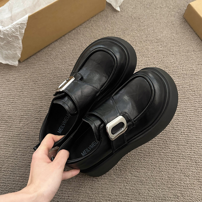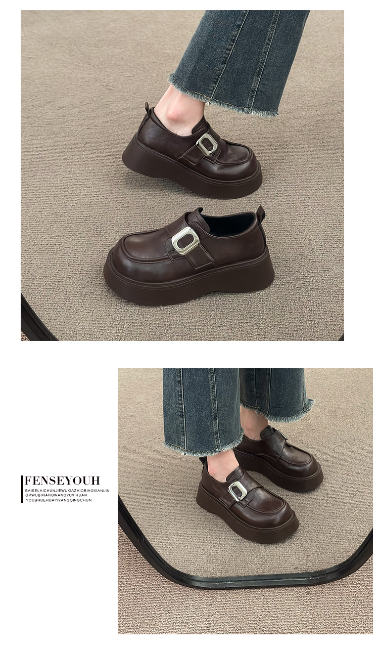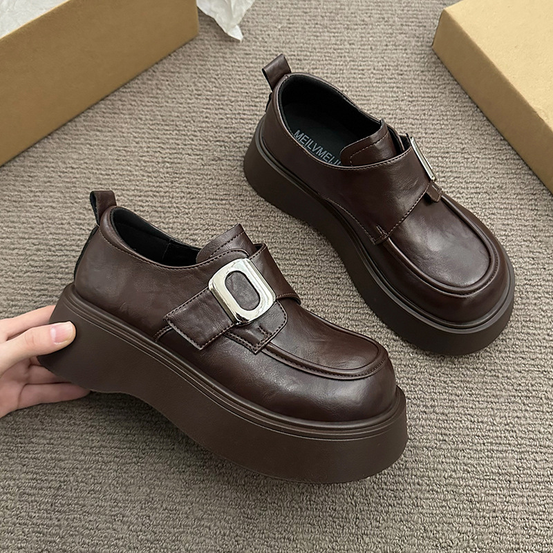 로퍼 여성 2025 봄 새로운 레트로 다크 브라운 벨크로 싱글 레이어 신발 두꺼운 단독 증가 영국 스타일 작은 가죽 신발