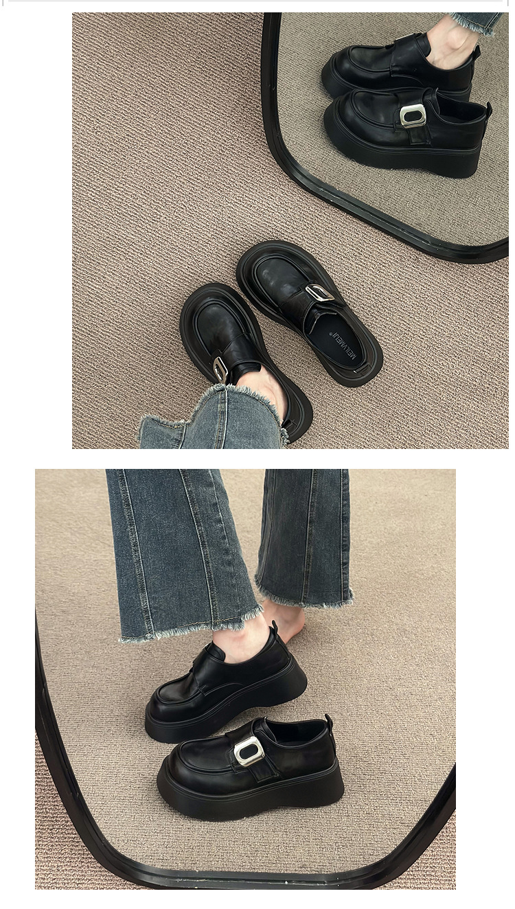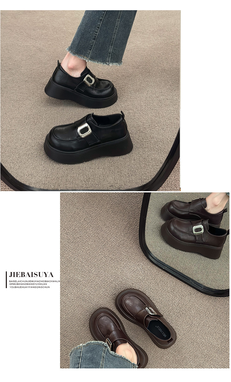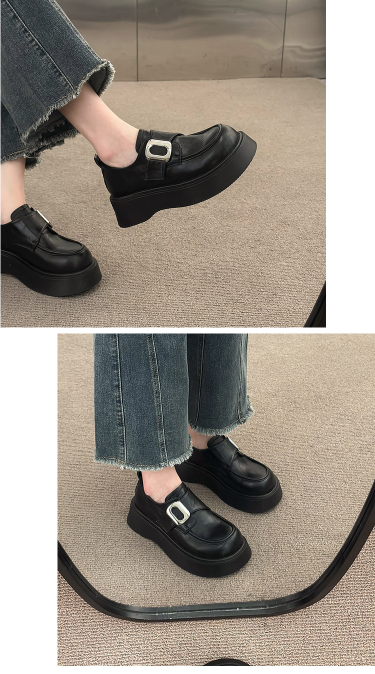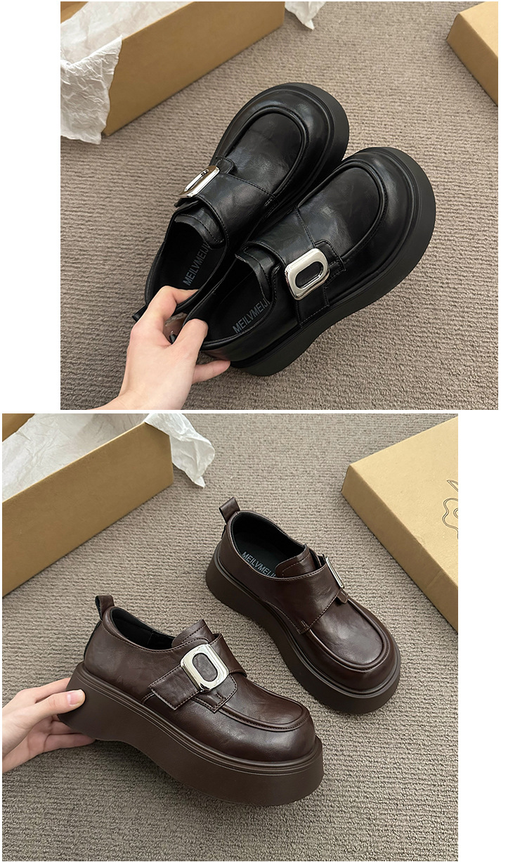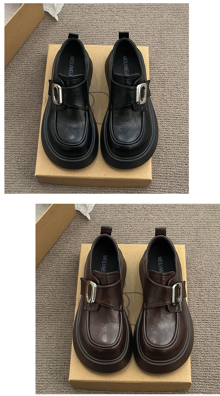 로퍼 여성 2025 봄 새로운 레트로 다크 브라운 벨크로 싱글 레이어 신발 두꺼운 단독 증가 영국 스타일 작은 가죽 신발