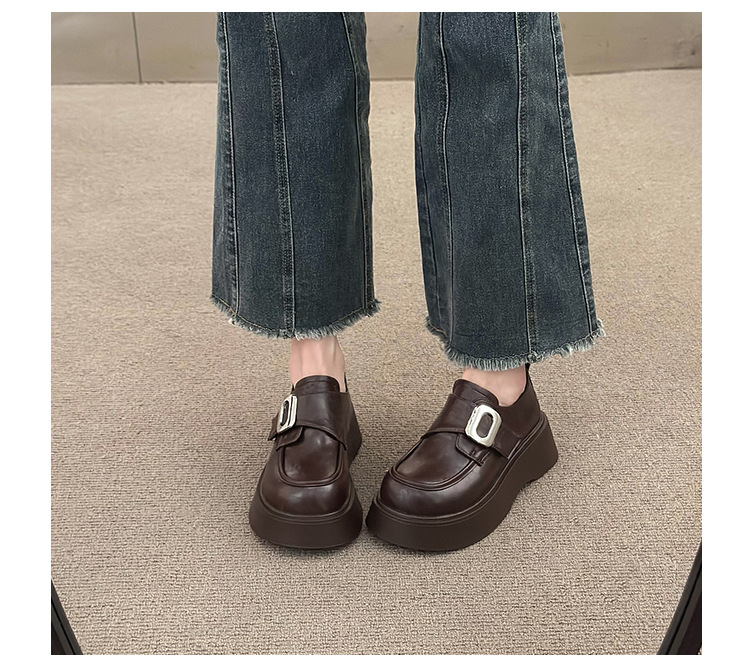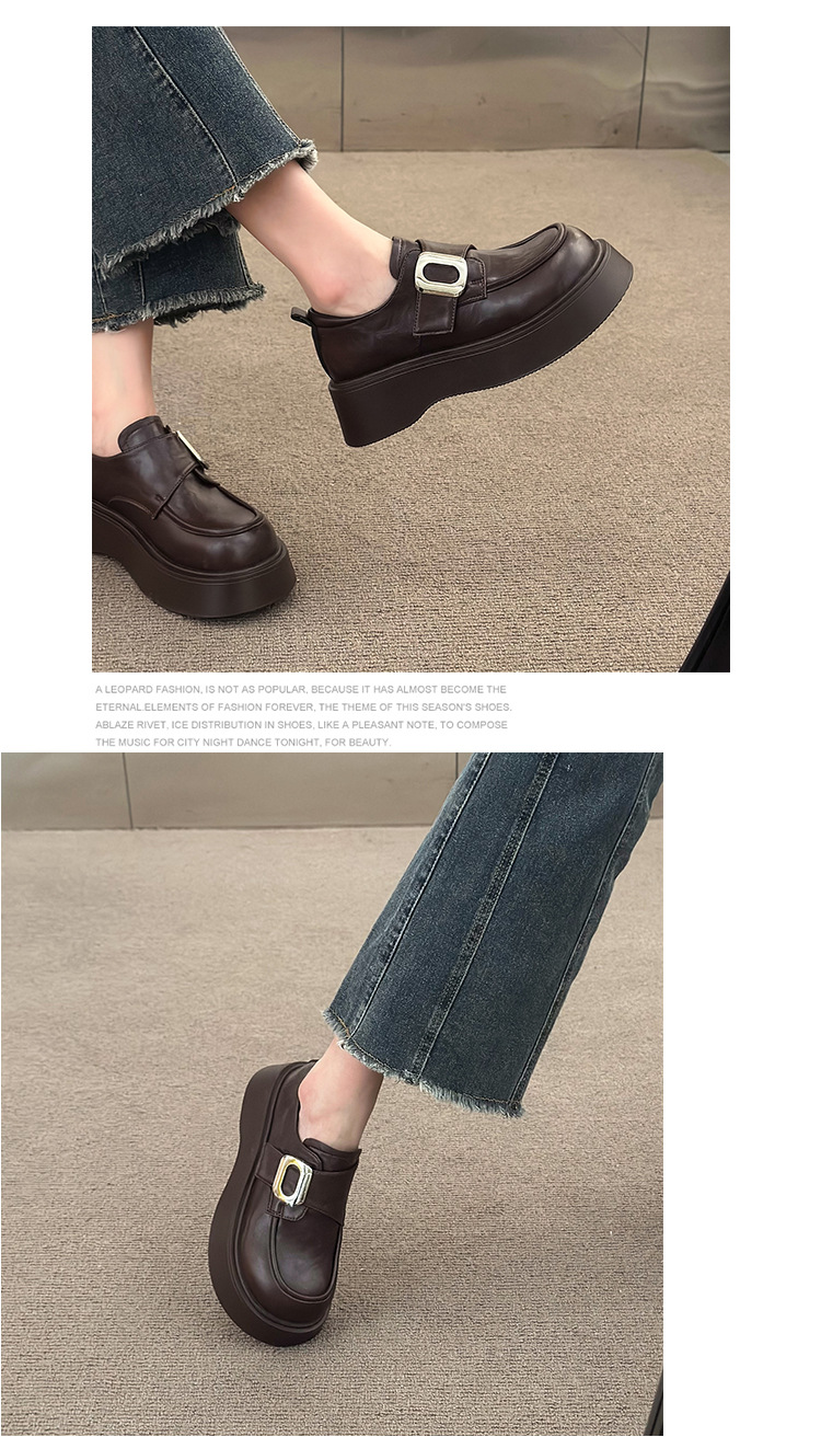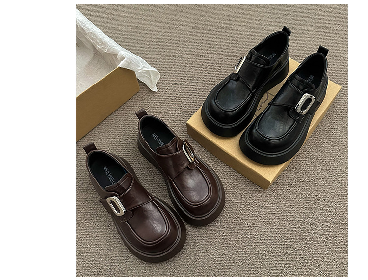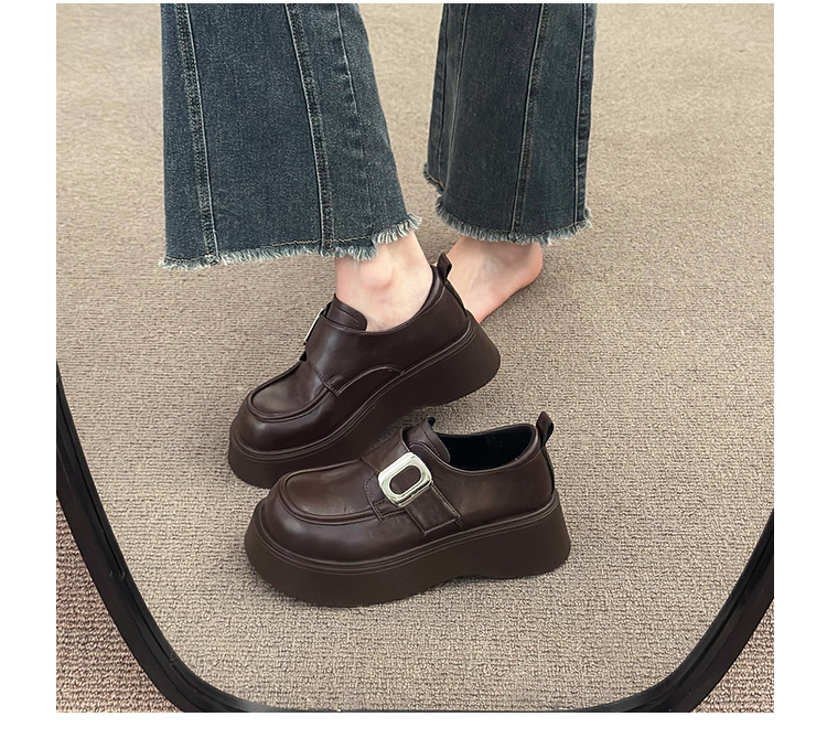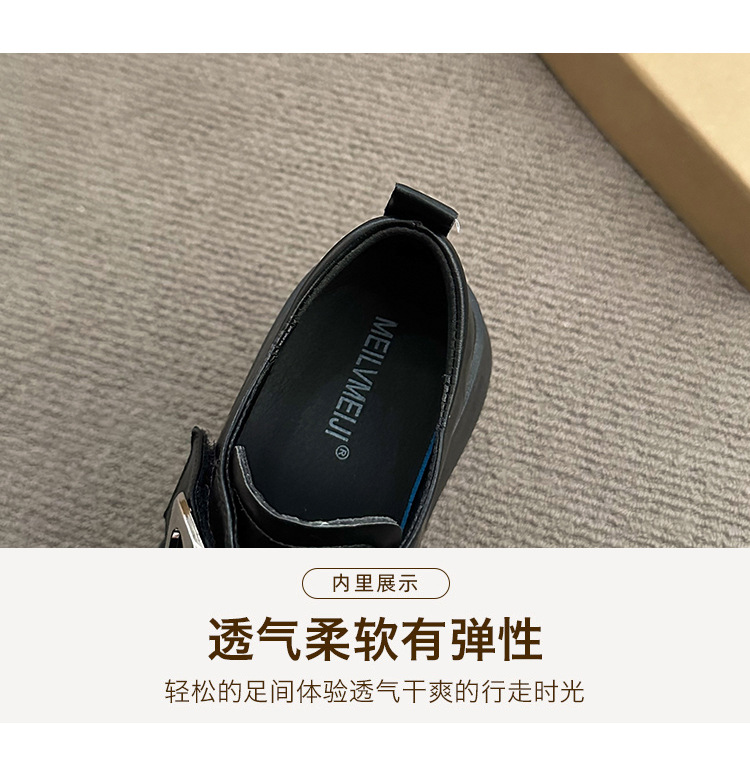 로퍼 여성 2025 봄 새로운 레트로 다크 브라운 벨크로 싱글 레이어 신발 두꺼운 단독 증가 영국 스타일 작은 가죽 신발스토어 가기