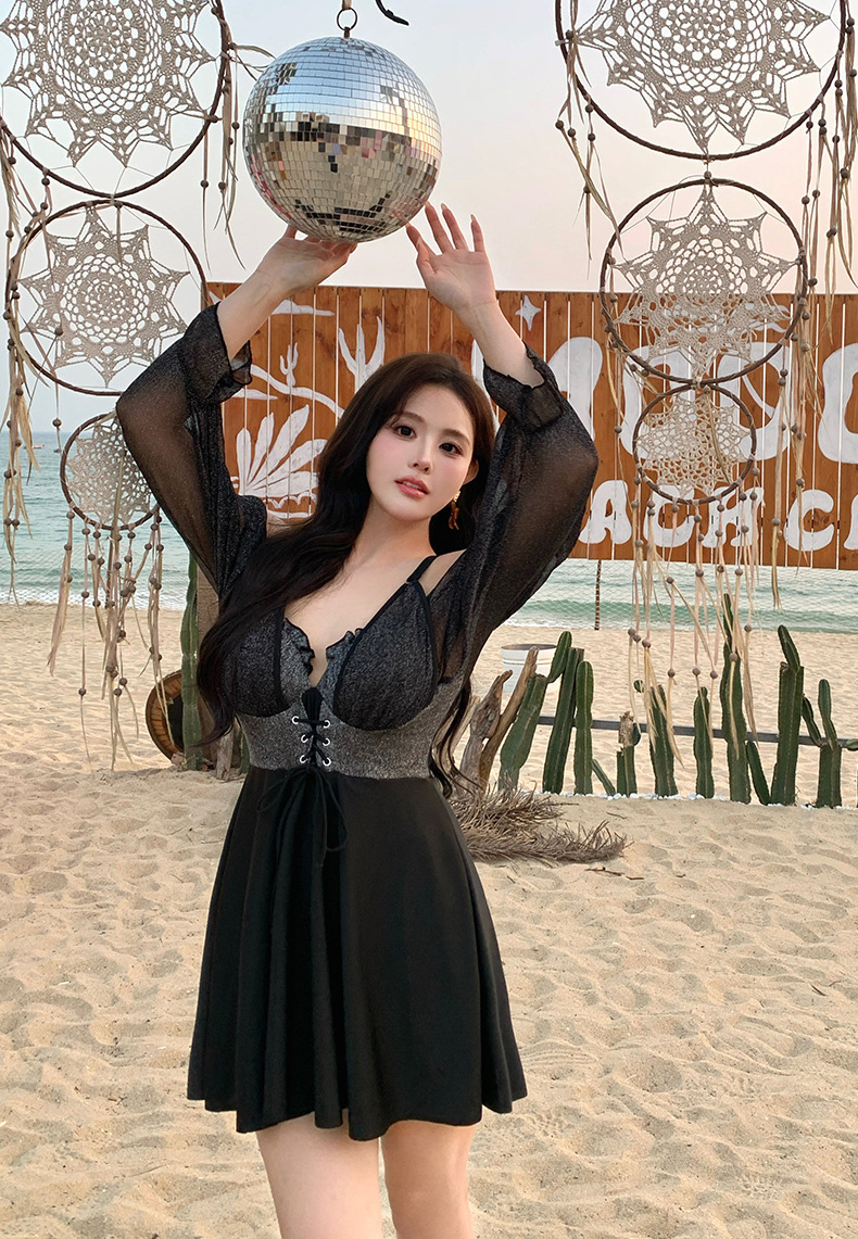 원피스 수영복 여자 온천 섹시한 큰 컵 2025 새로운 플러스 사이즈 통통녀 강철 반지 수집 순수한 바람 수영복스토어 가기