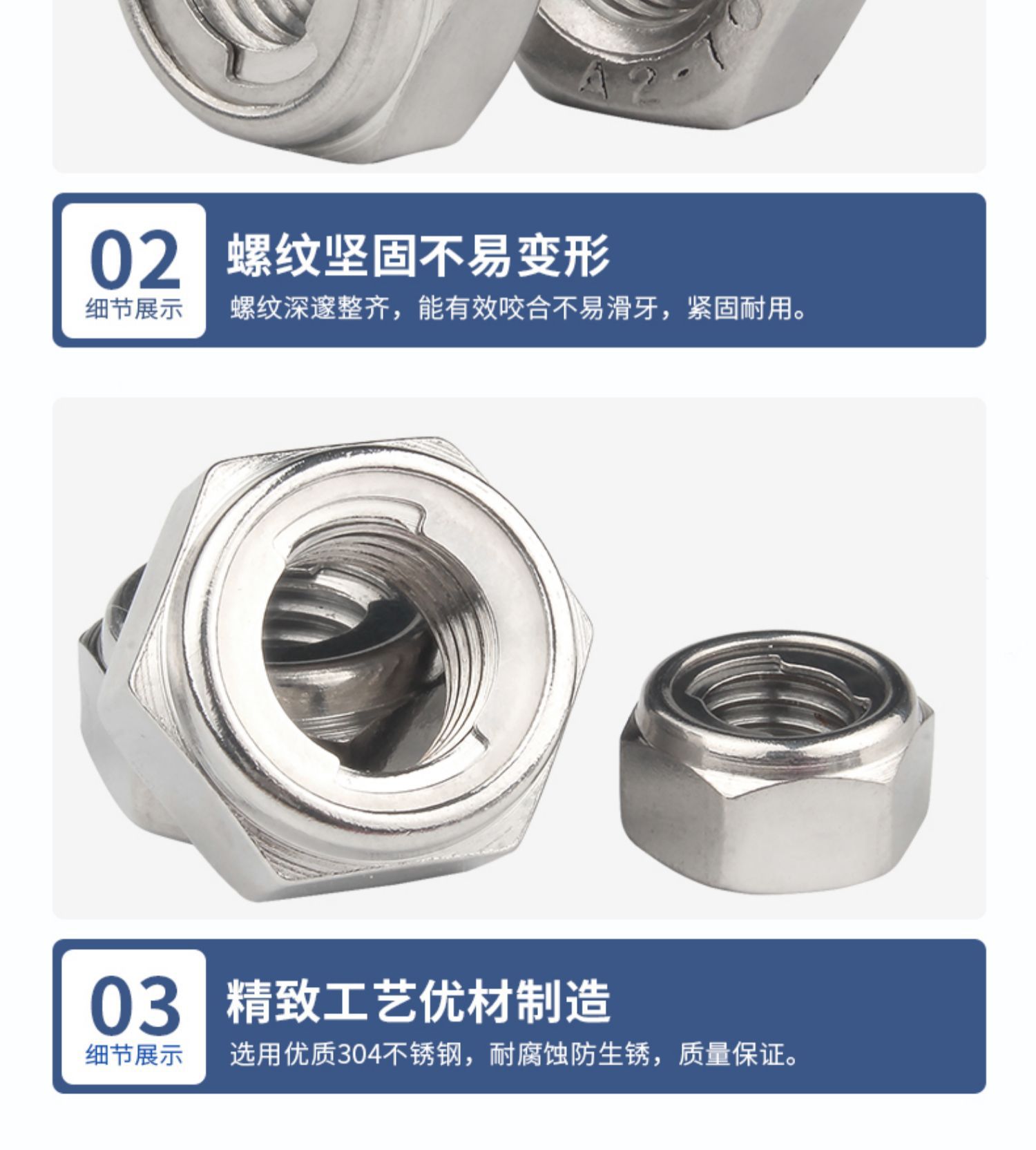 304 스테인레스 스틸 금속 locknut 잠금 미끄럼 자동 잠금 육각 나사 캡 M4M5M6M8M10M12