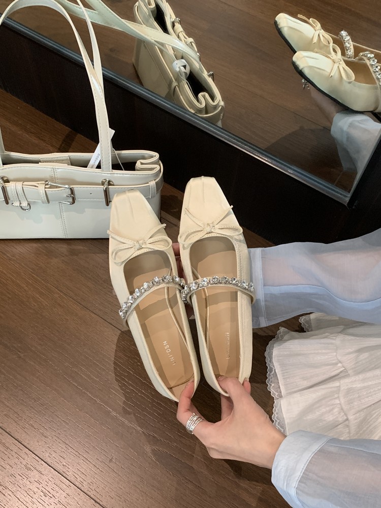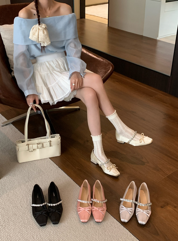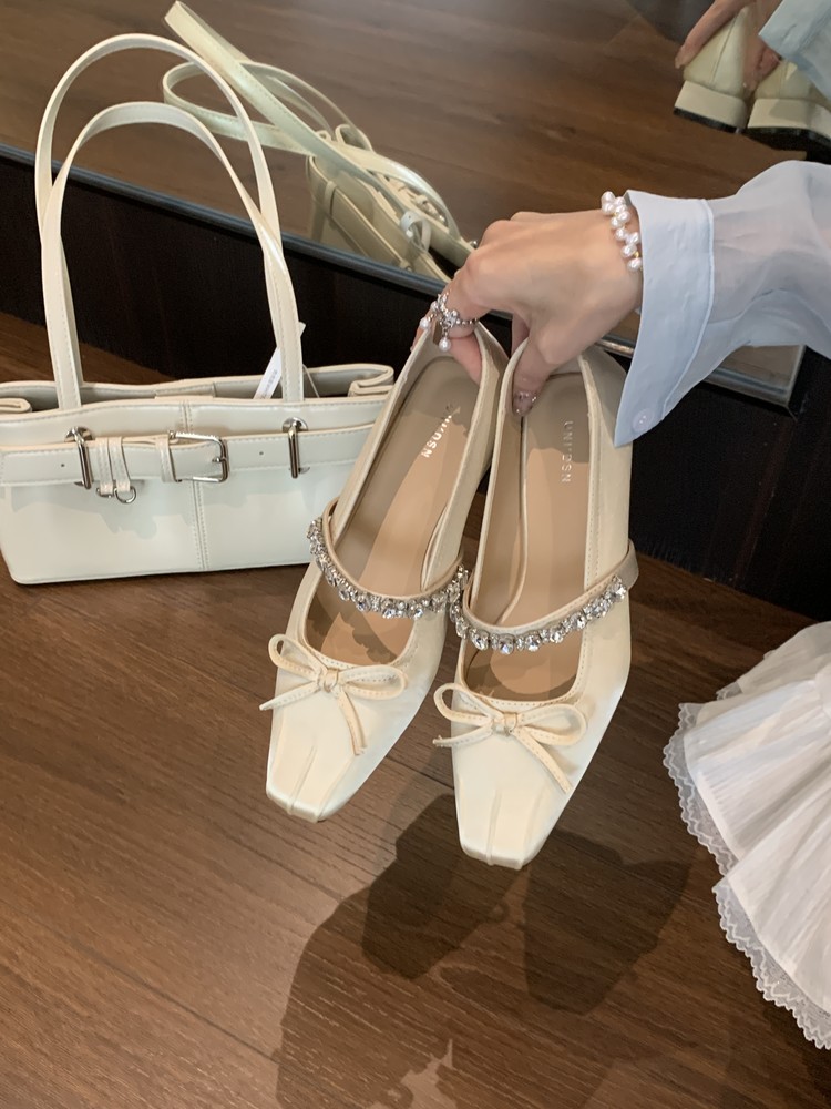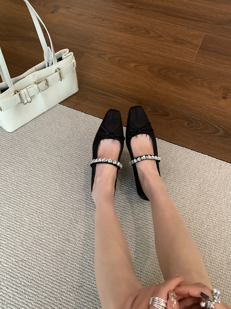 블랙 스퀘어 헤드 라인스톤 청키 힐링 신발 여성 신발 신발과 2025 새로운 봄과 가을 실크 새틴 신발스토어 가기